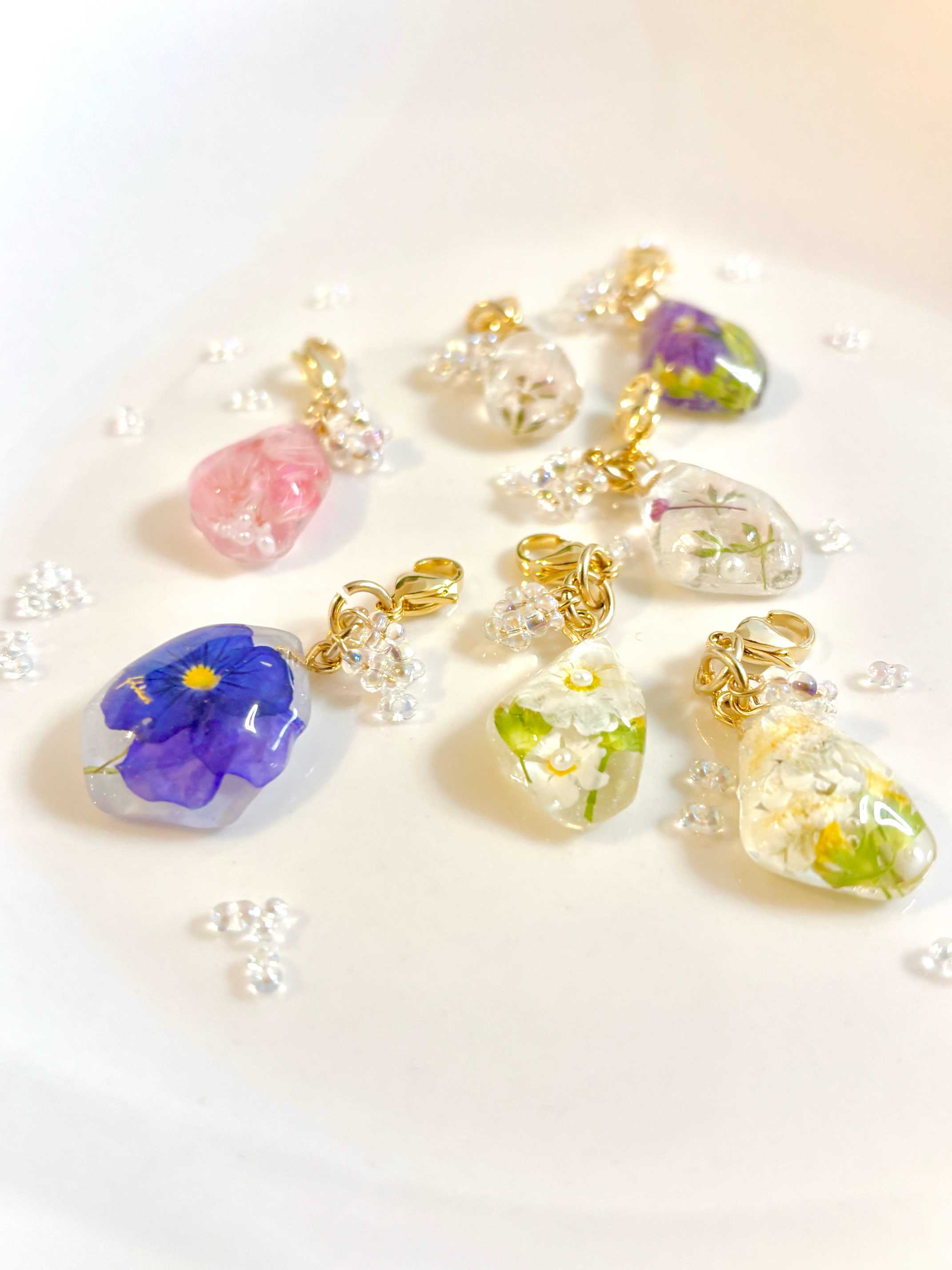 お花🌸はお庭☘ ̖́-の花をドライフラワーにしてから加工した物を閉じ込めました♥️