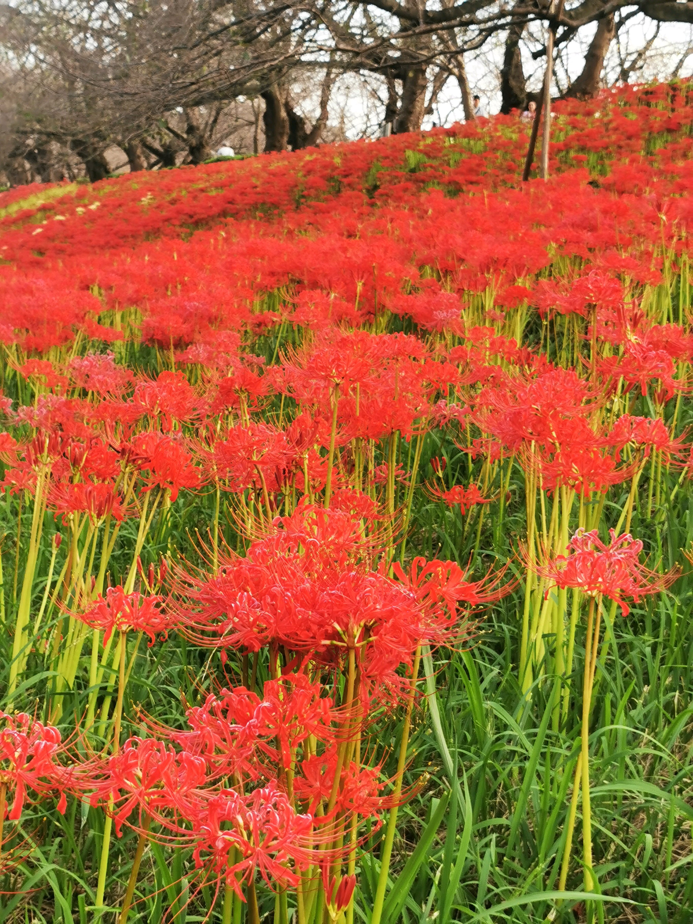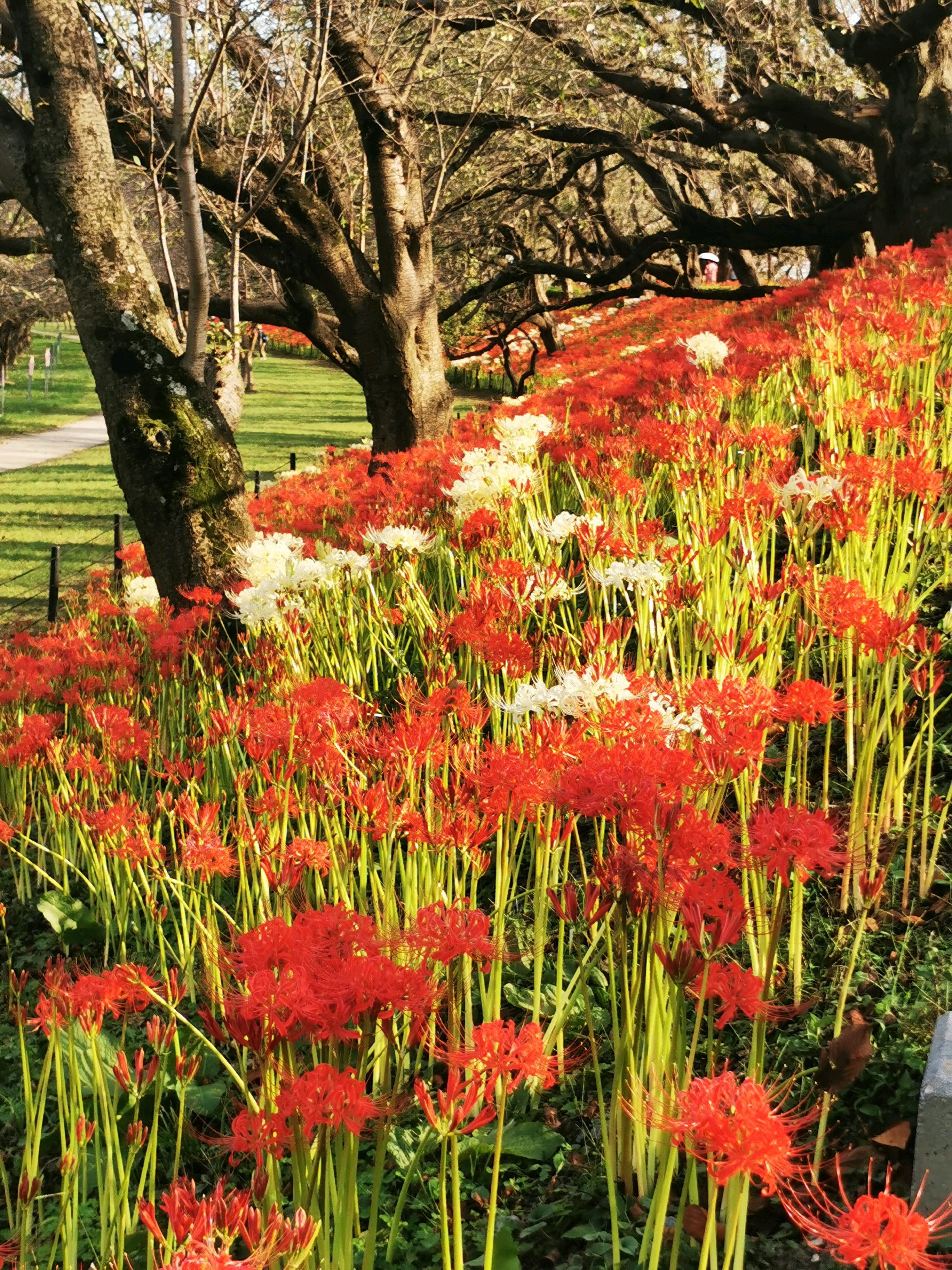 そろそろ、満開かと期待して、駅からタクシーを飛ばしました。満開には、すこし早かったけど、場所により、見事な曼珠沙華の競演に感動の午後でした。