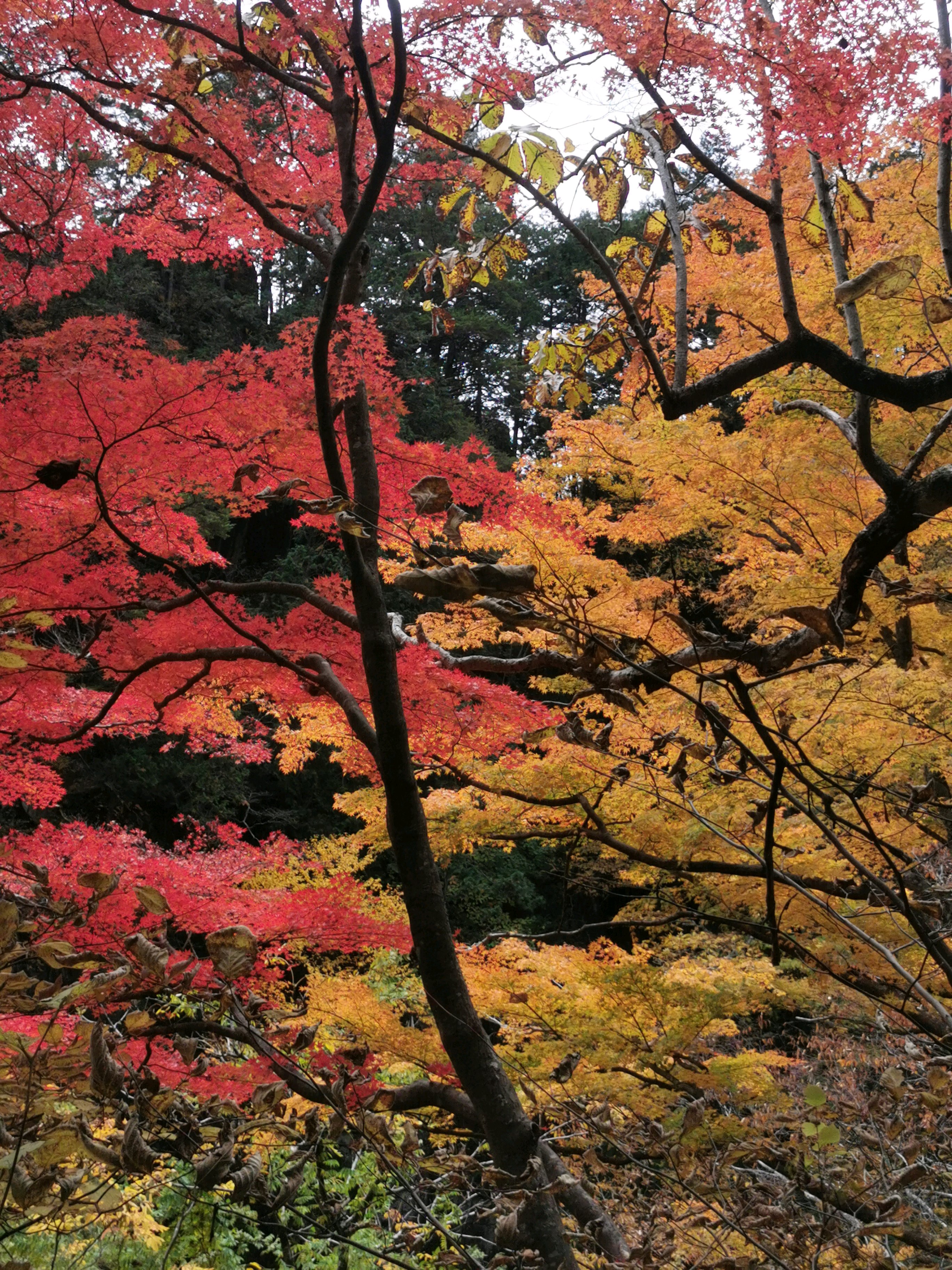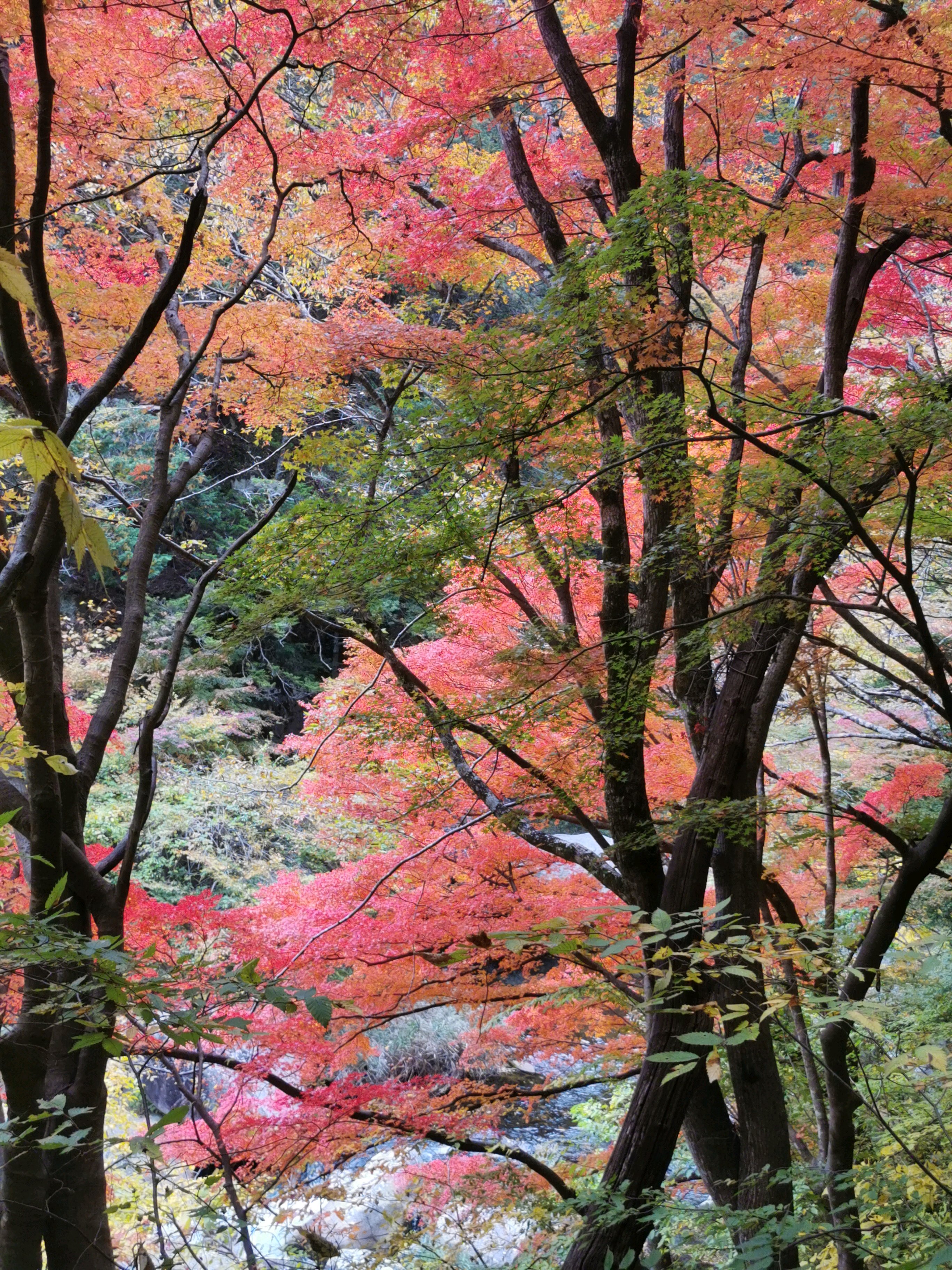 コーナーを曲がるたび、美しいモミジの出現に歓声をあげながら、進みます。