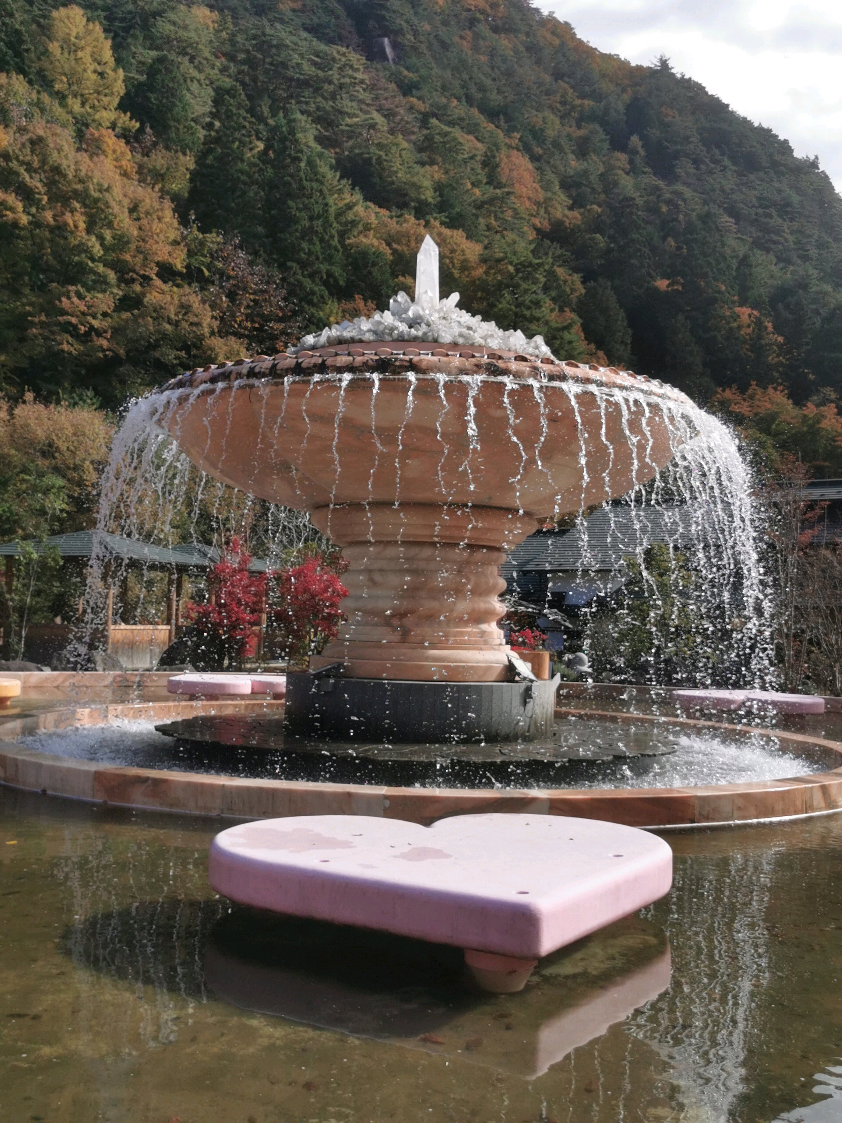 この噴水は、かつて、水晶と宝石の街、甲府のシンボルとして甲府駅前にあったものをモデルとして、よみがえらせたものだそうです。
