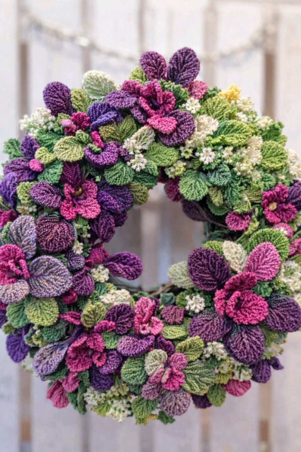 発色も綺麗✨️。って、チャッピー作の編み物風葉牡丹リース。