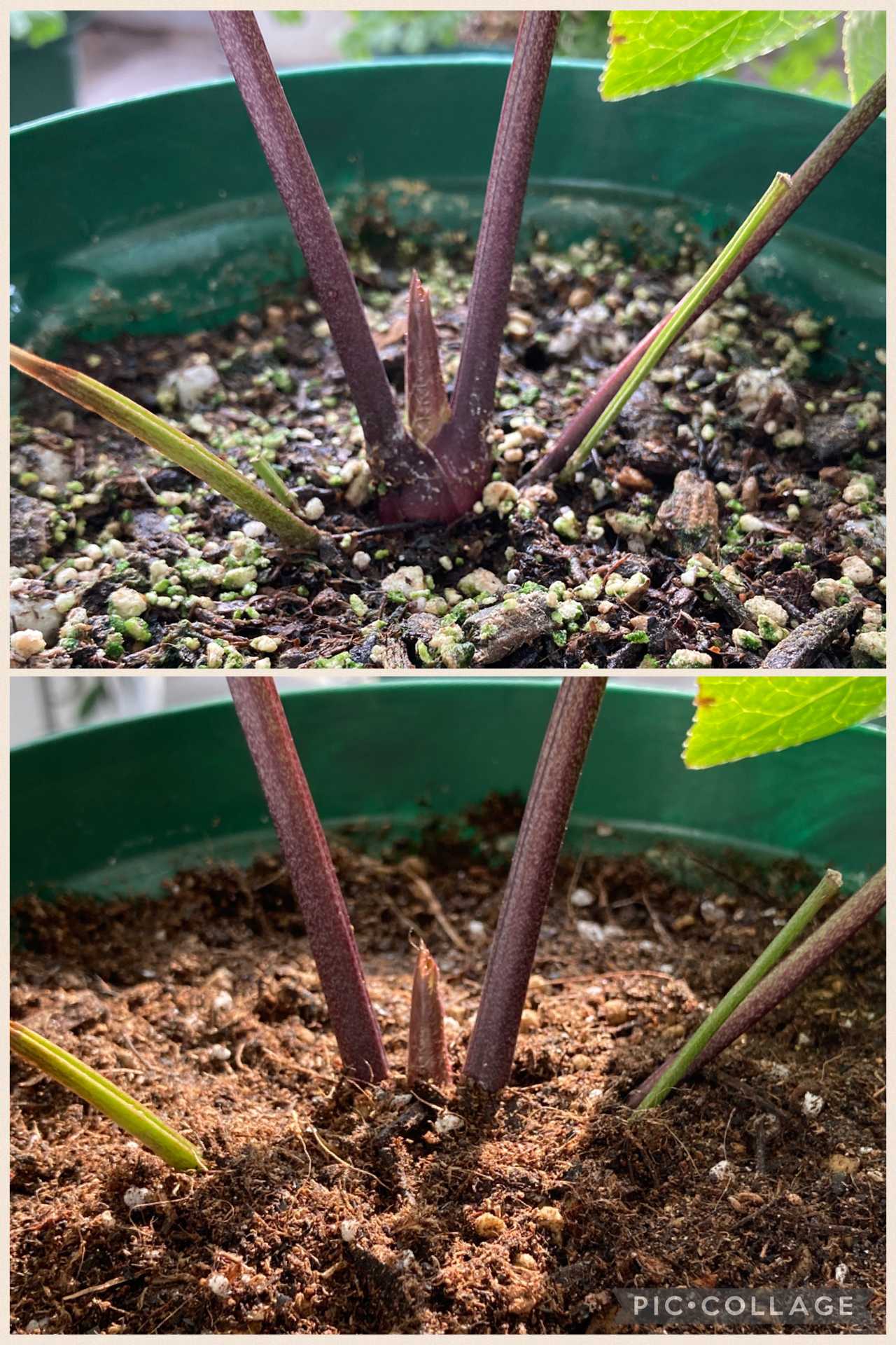 根元の土が少なくなってきたので“増し土”をしました。新芽🌱がかくれないように。