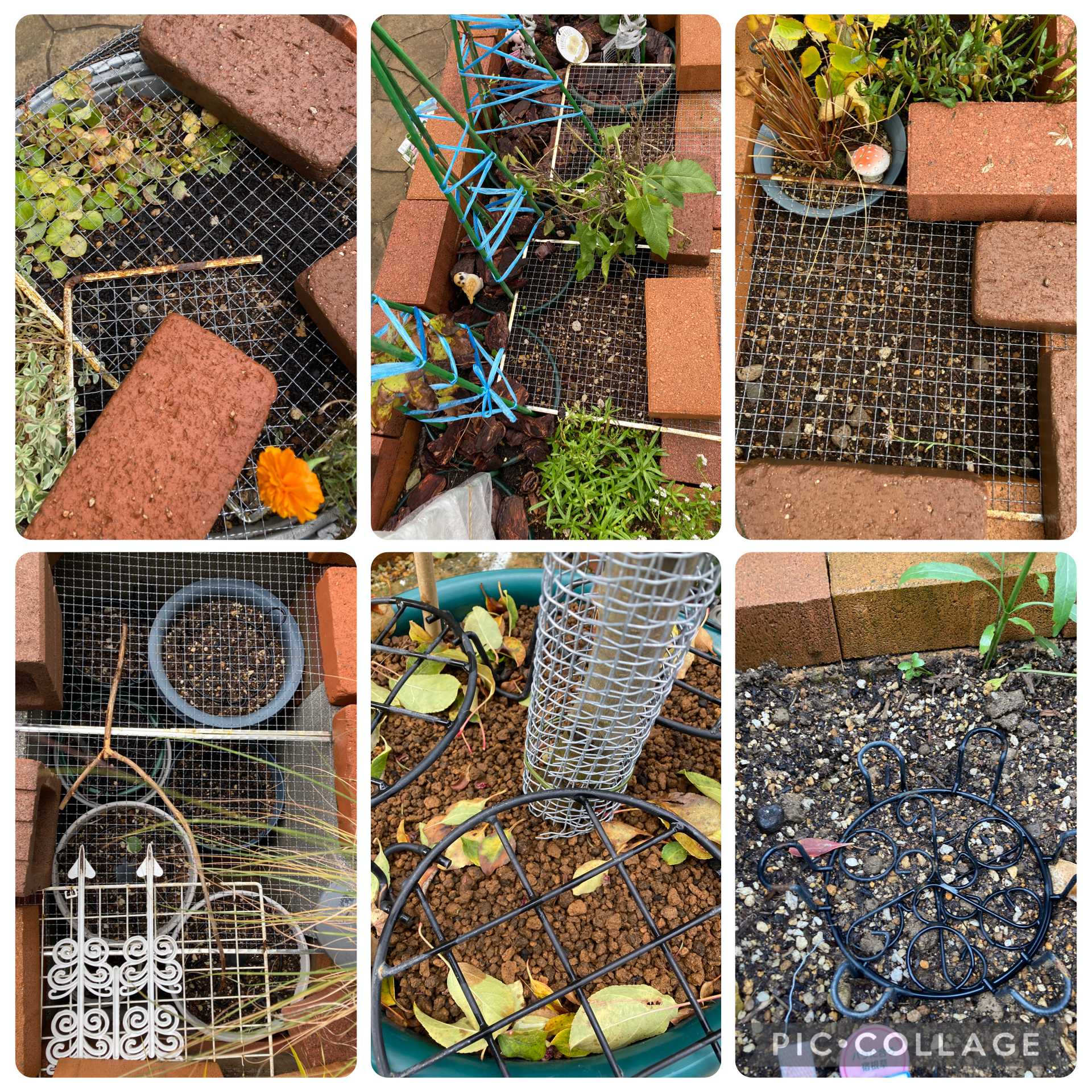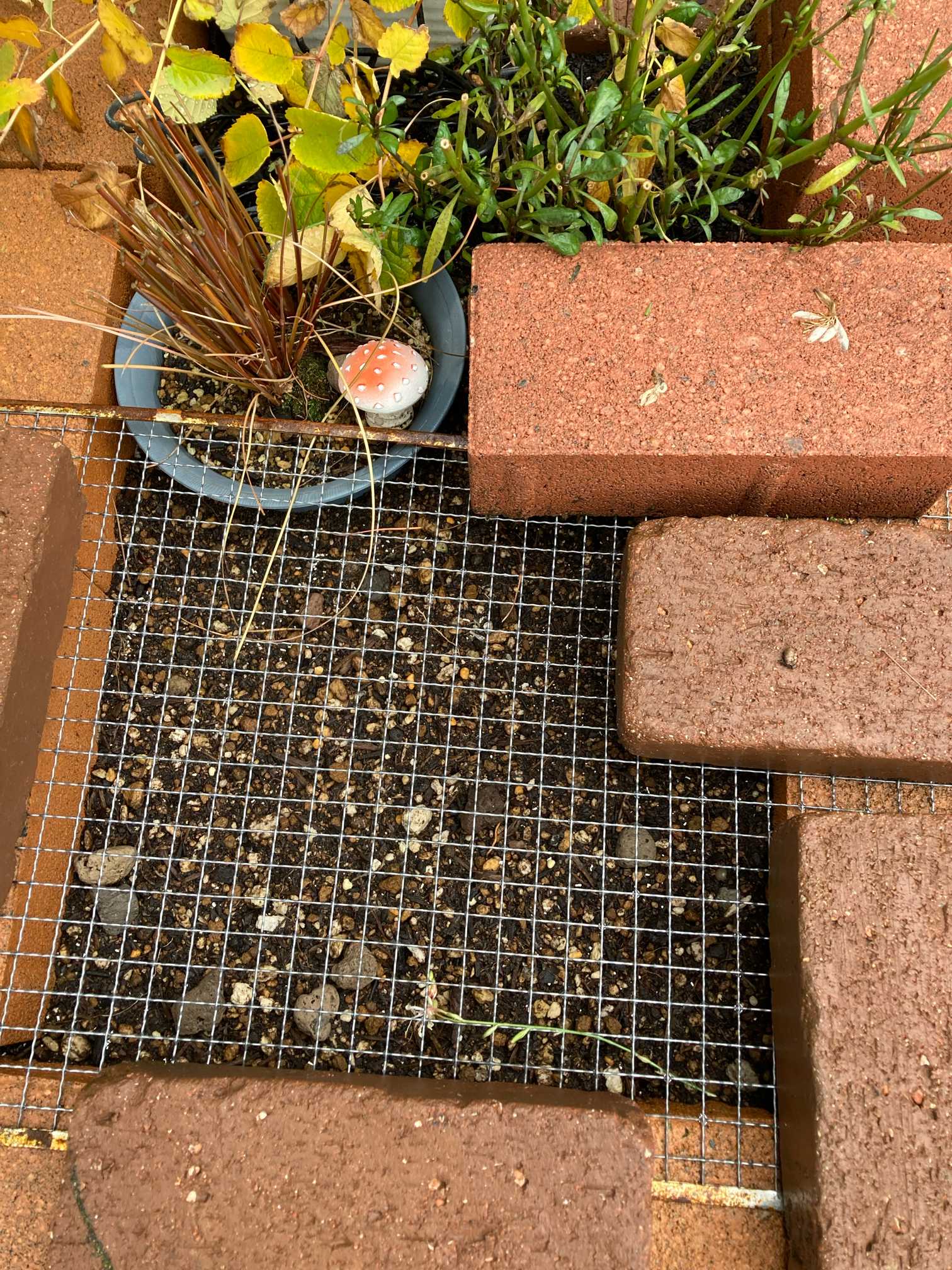100圴の焼き網と家にあったレンガで見栄えは悪いけど、こんな感じでイタズラされないようにガードしてきます❗️