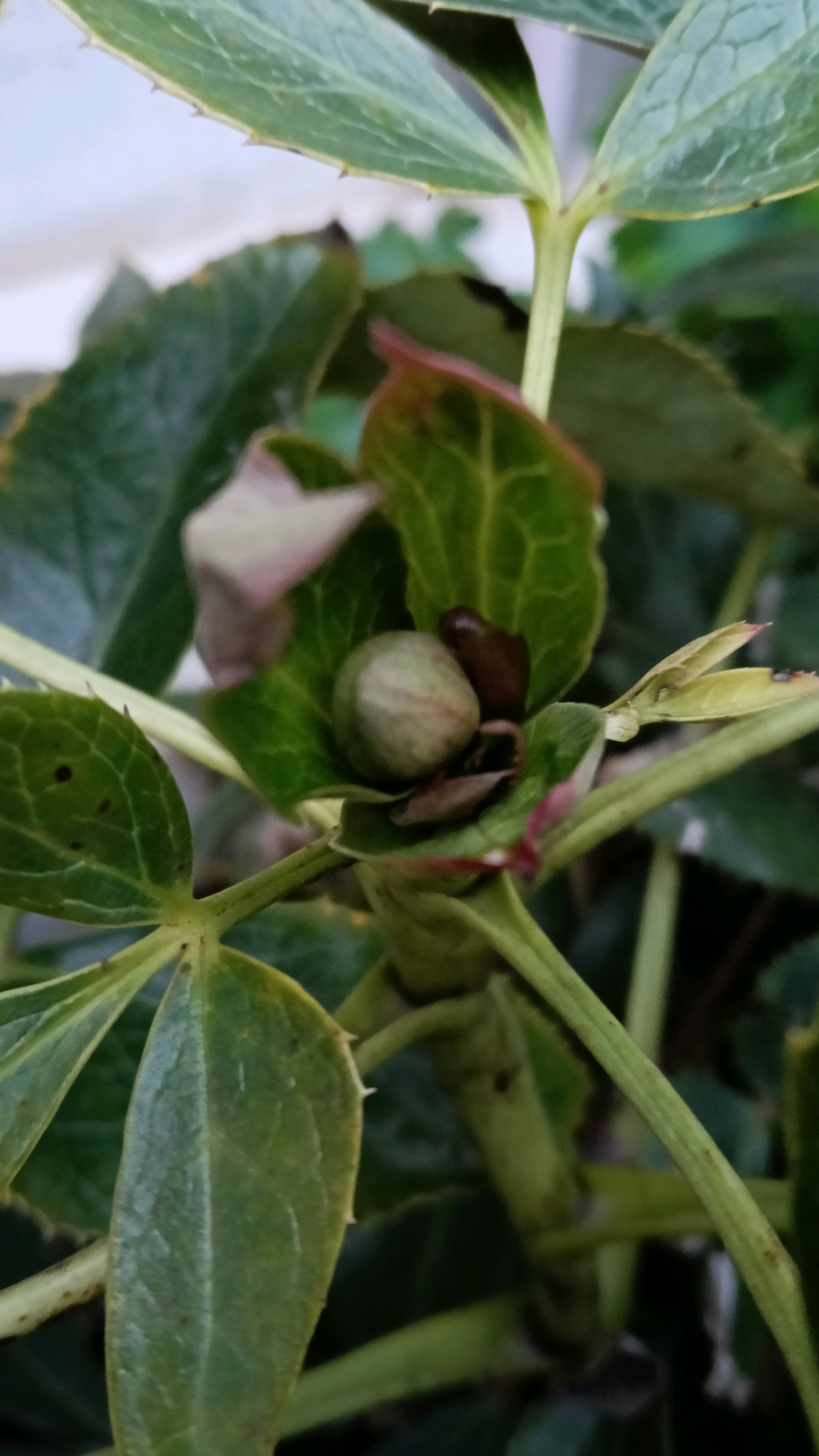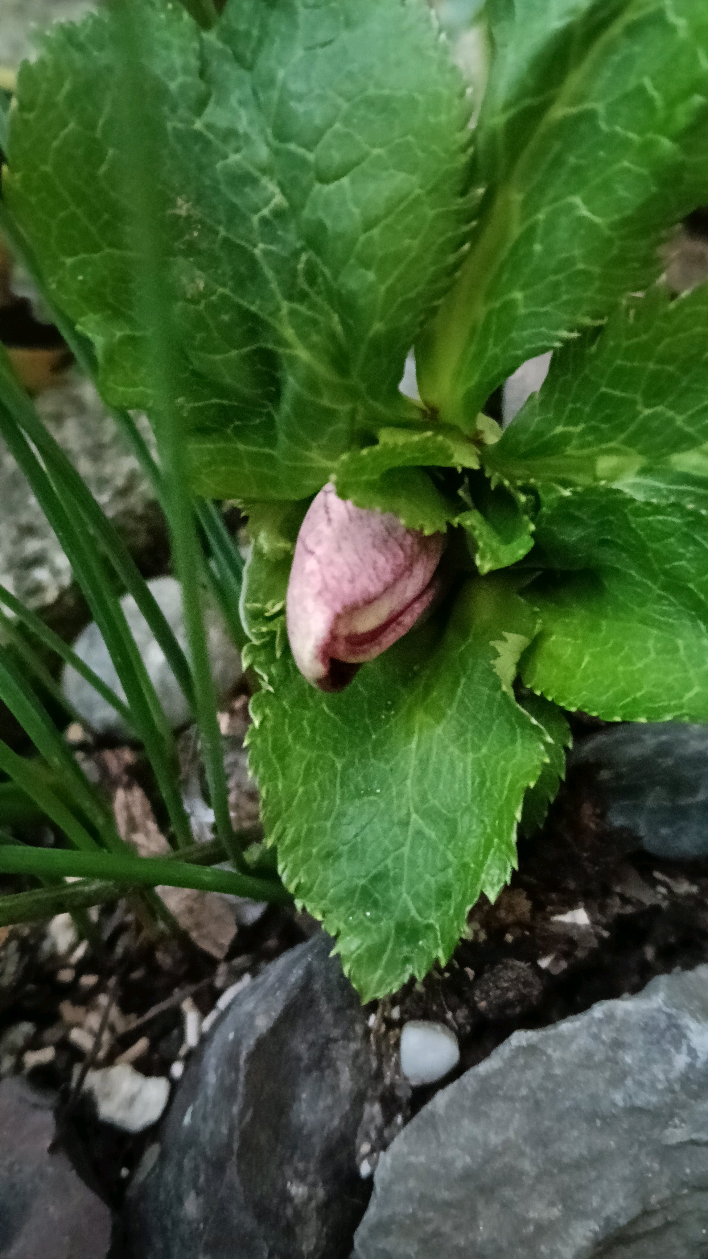 ツバキの下にこぼれ種から開花したクリスマスローズ🍀