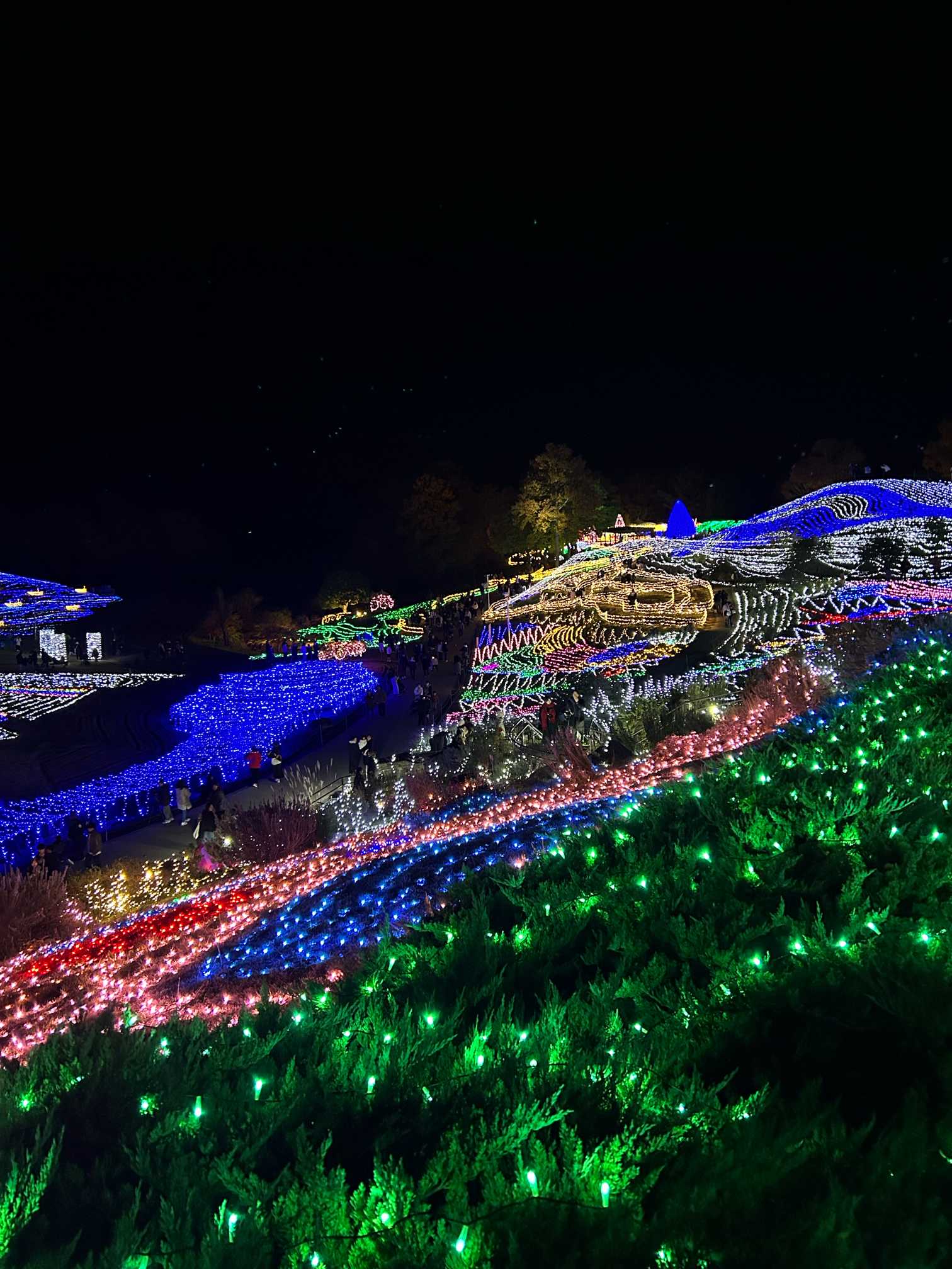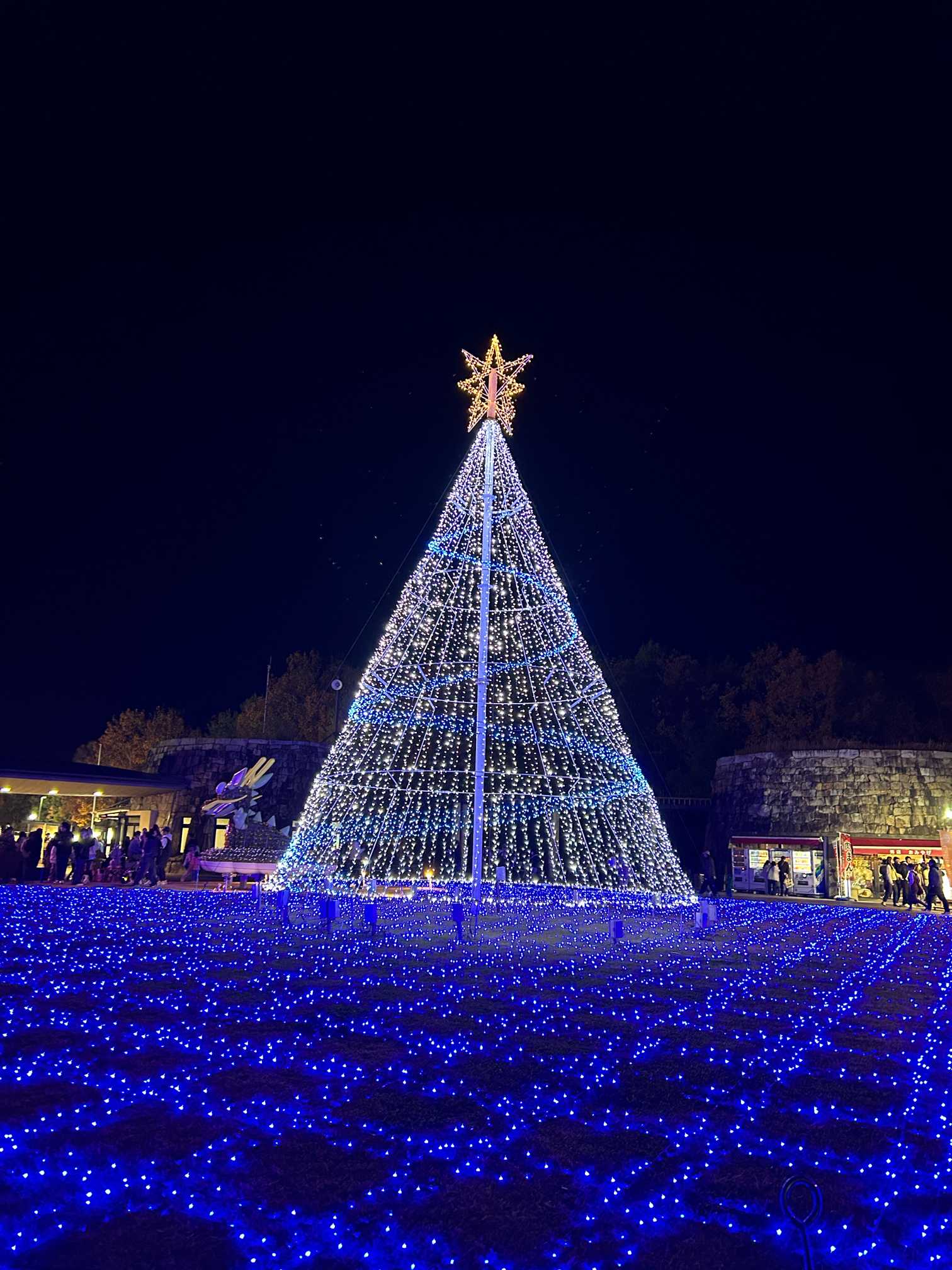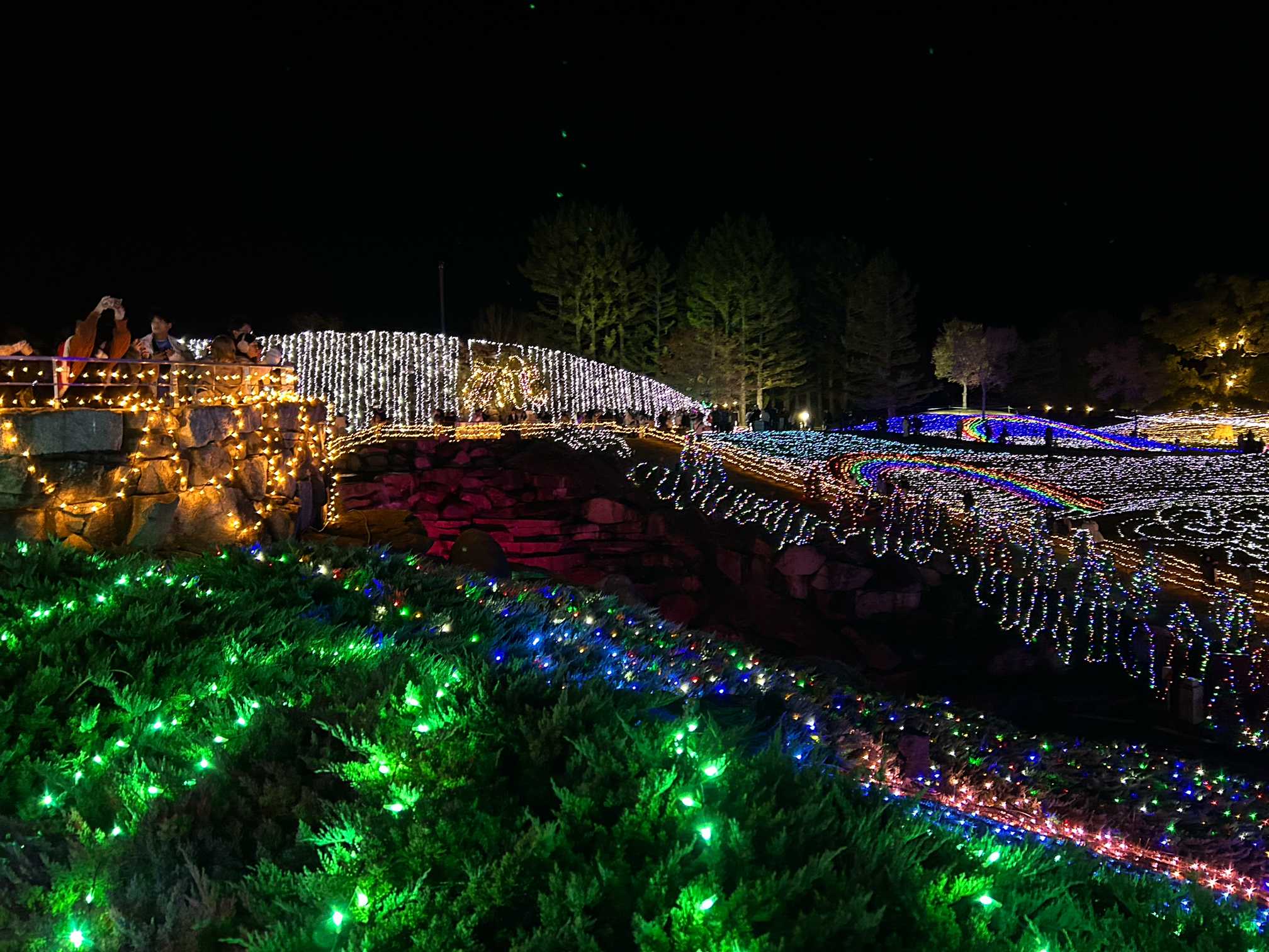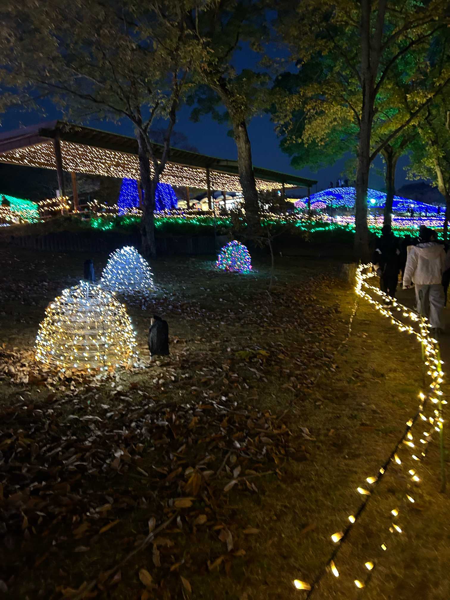 入り口で少し並び、駐車場までの道が遠回りで一通になっていて、園内に入ったのが16:50。初日だったので点灯式してました🌟