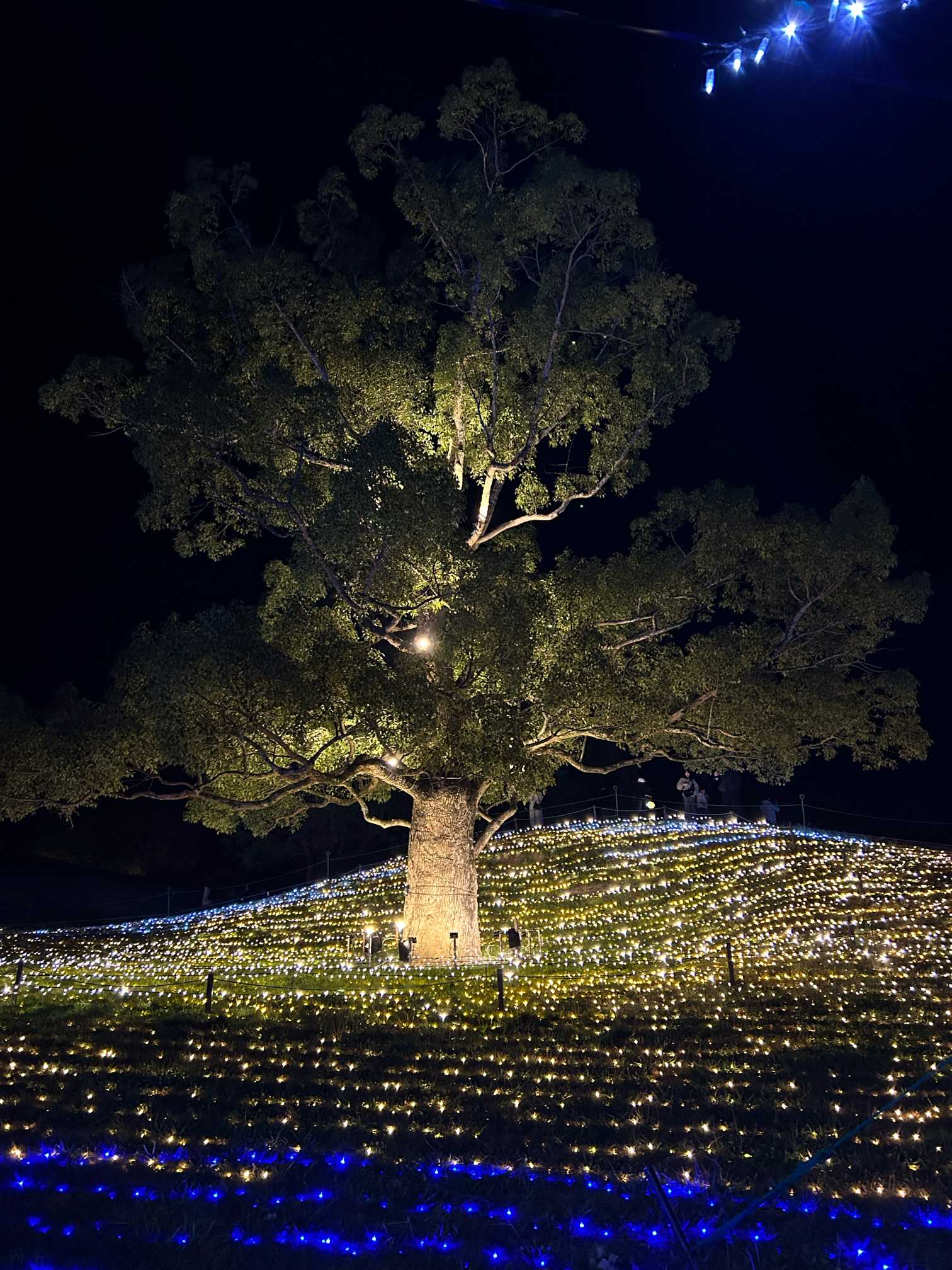 一際目を引く大楠🌳イメージは瀬戸内海に溶けていくような夕焼けだそうです☀️