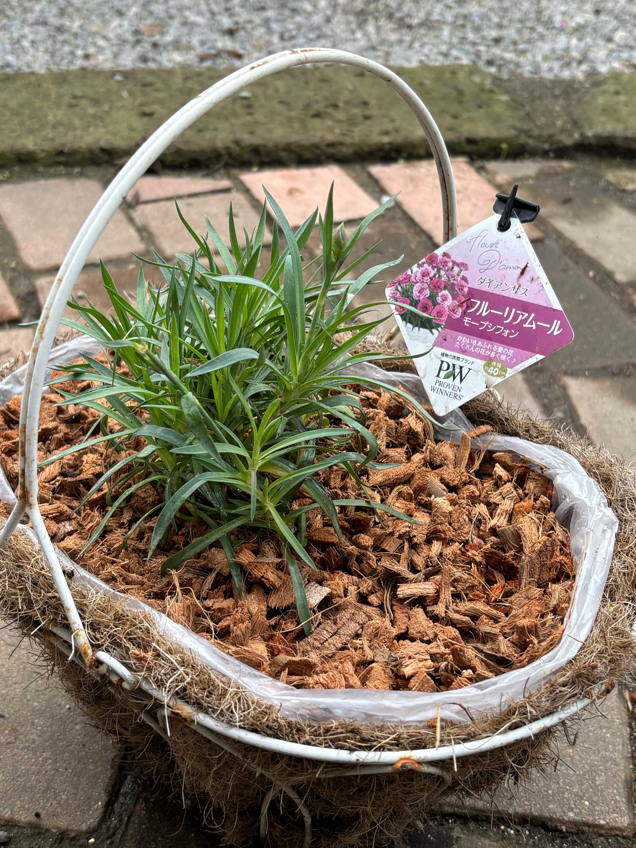 ダイアンサスフルーリアムールのモーブシフォン植え替え後の様子