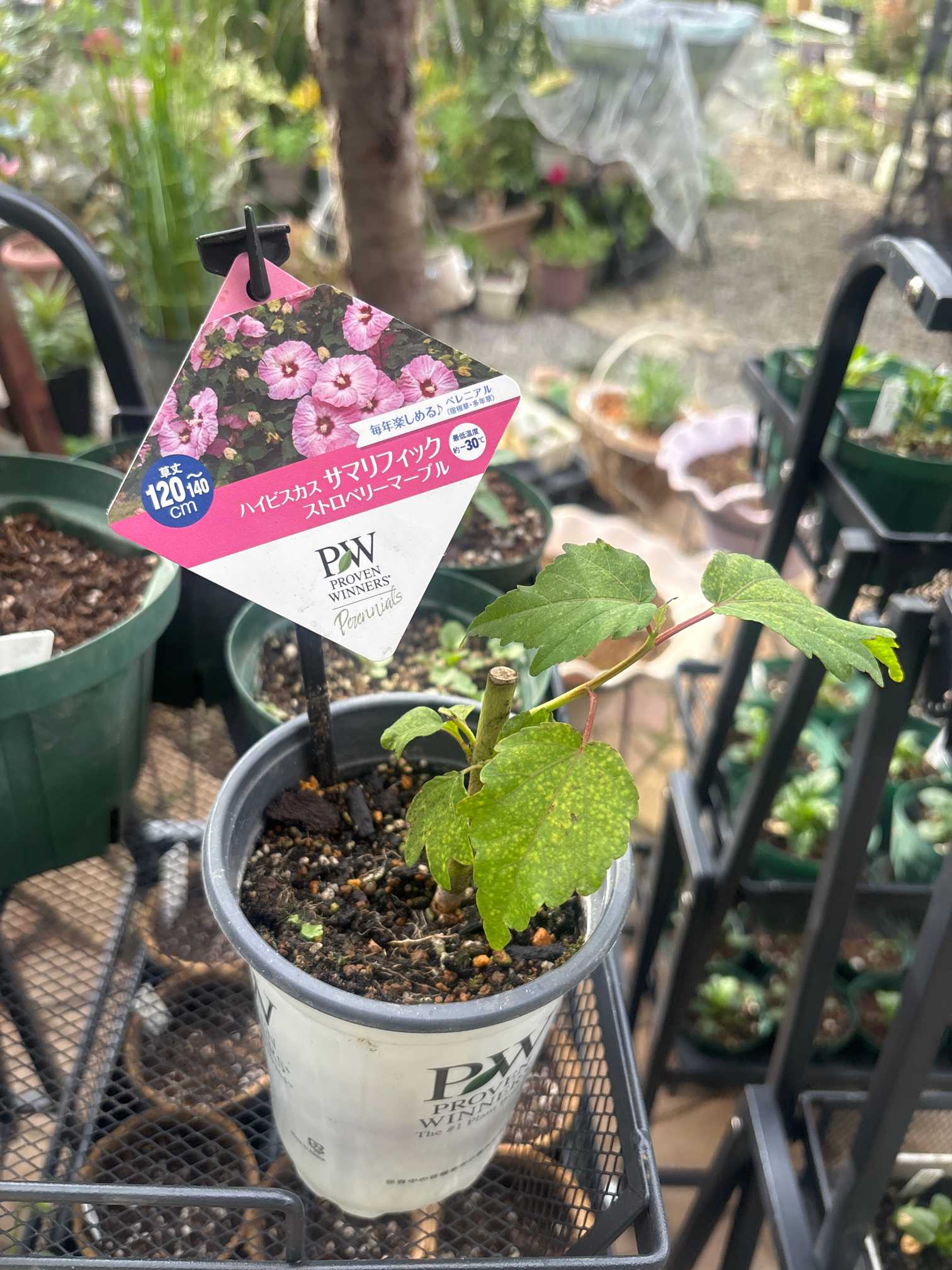 一般的なハイビスカスは、10°C以上を保つように短く剪定して、室内に入れなきゃならないんですが、サマリフィックは、最低温度ー30℃のビックリするような耐寒性で嬉しいですね。