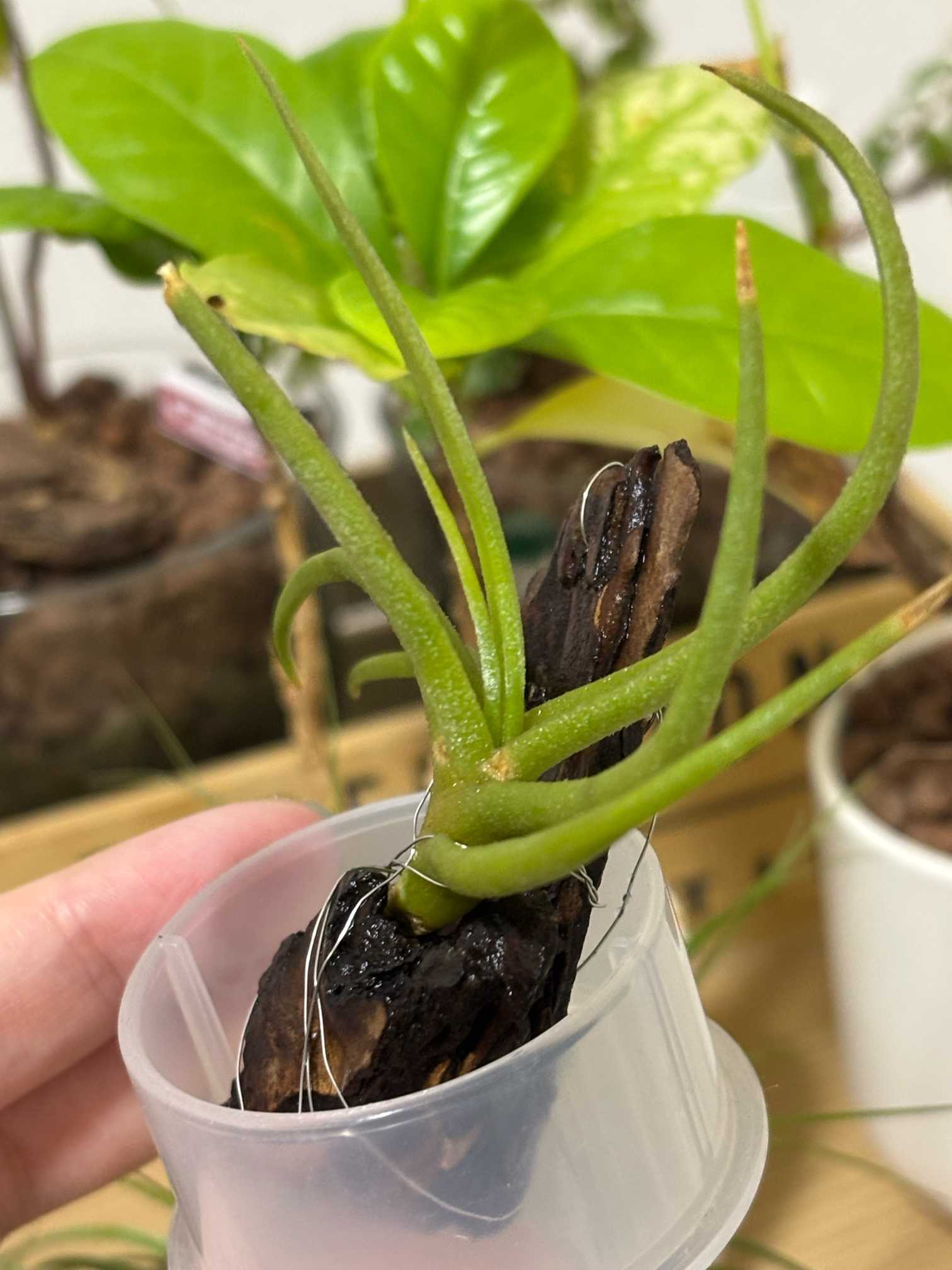 グラブリ(仮)はぶら下げるのやめて容器に水溜めるようにしたら、成長点モリモリ動き出したね……