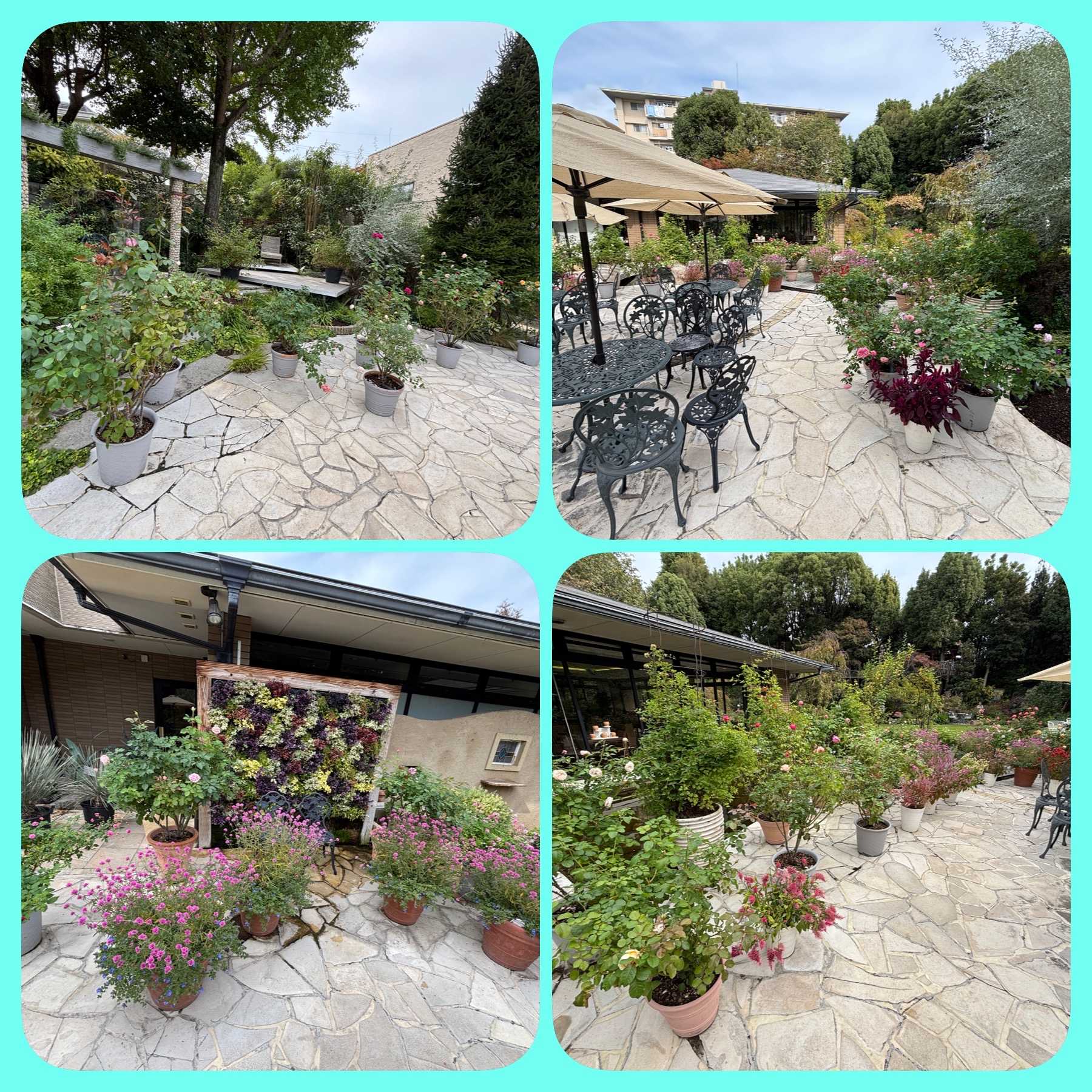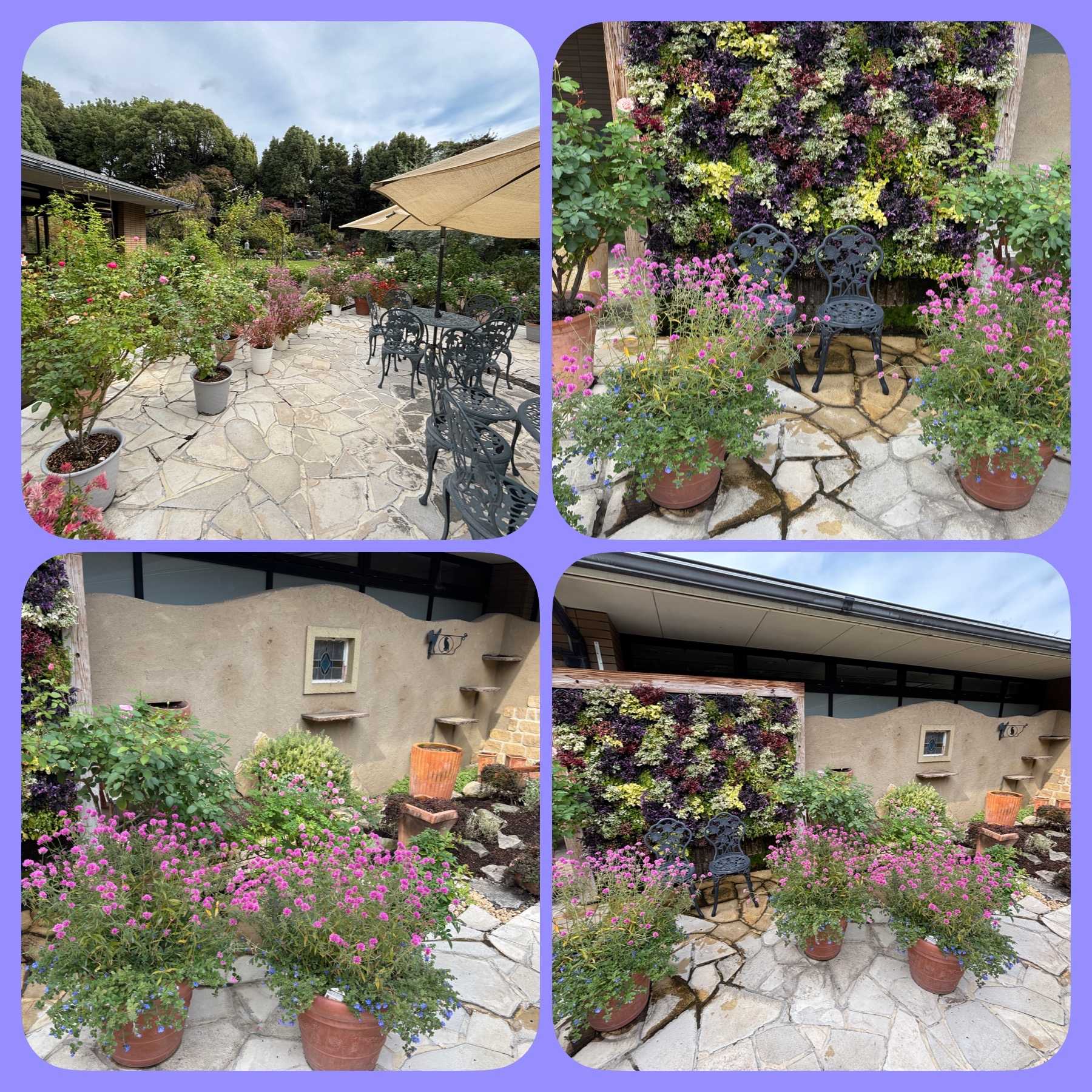 バラ鉢がたくさん、ゴンフレナラブラブラブお花がいっぱいです。
