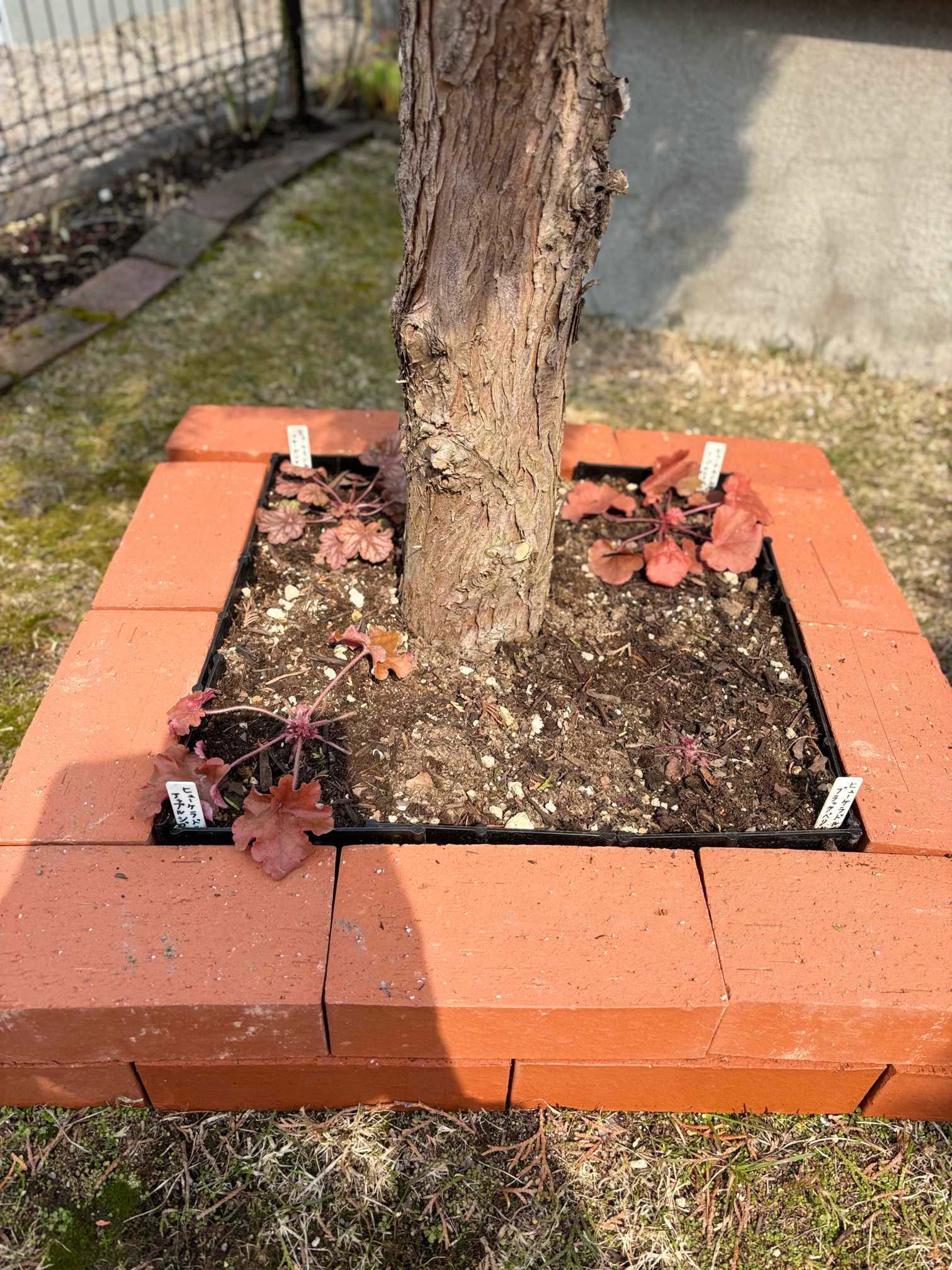 PWアンバサダーで選んだヒューケラ4株はレンガ🧱2段で積むだけの簡単な花壇にしようかな〜妄想中🤭9/24撮影