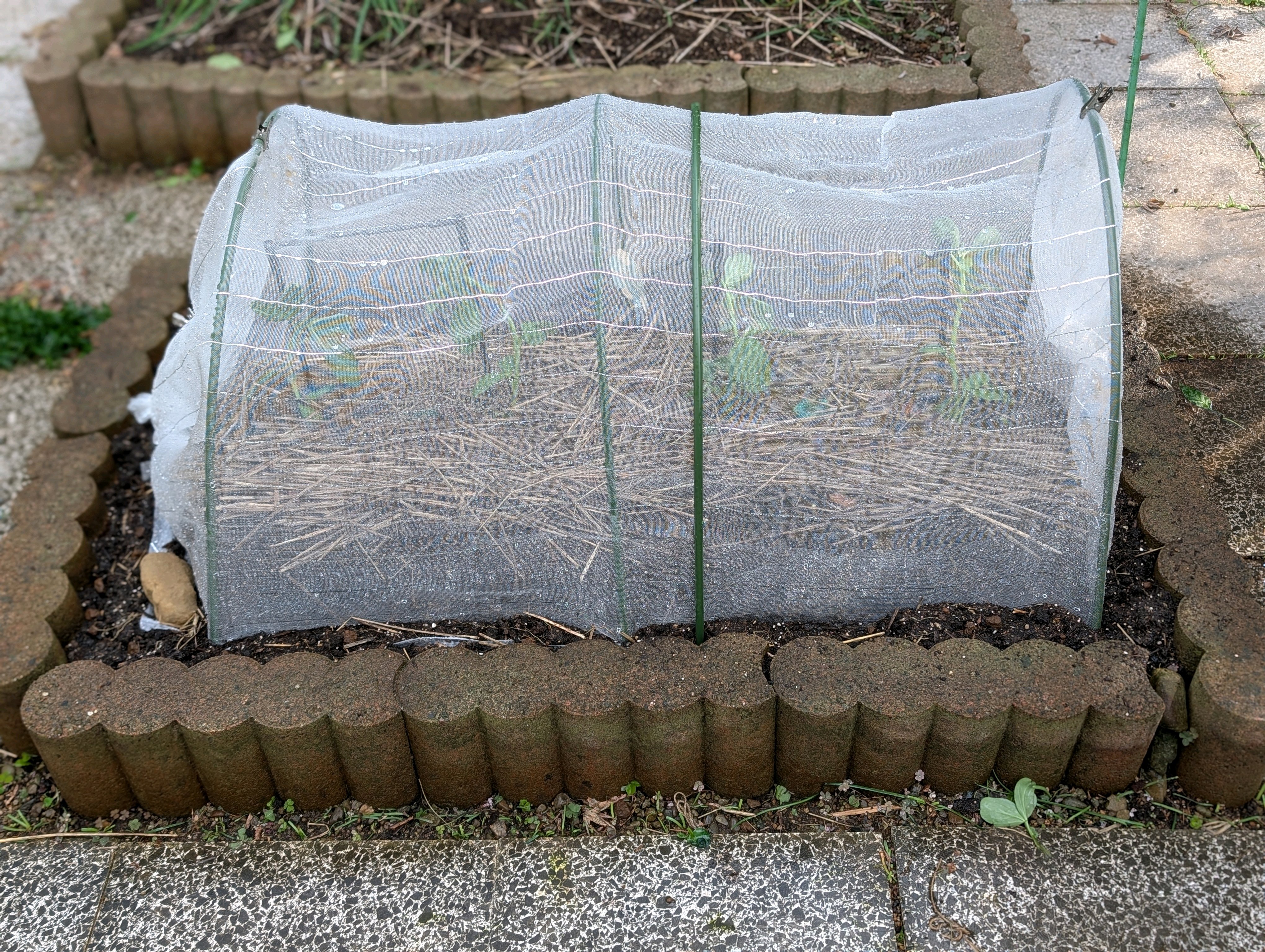 空豆🫛の苗を庭の花壇畑に植え付ける。