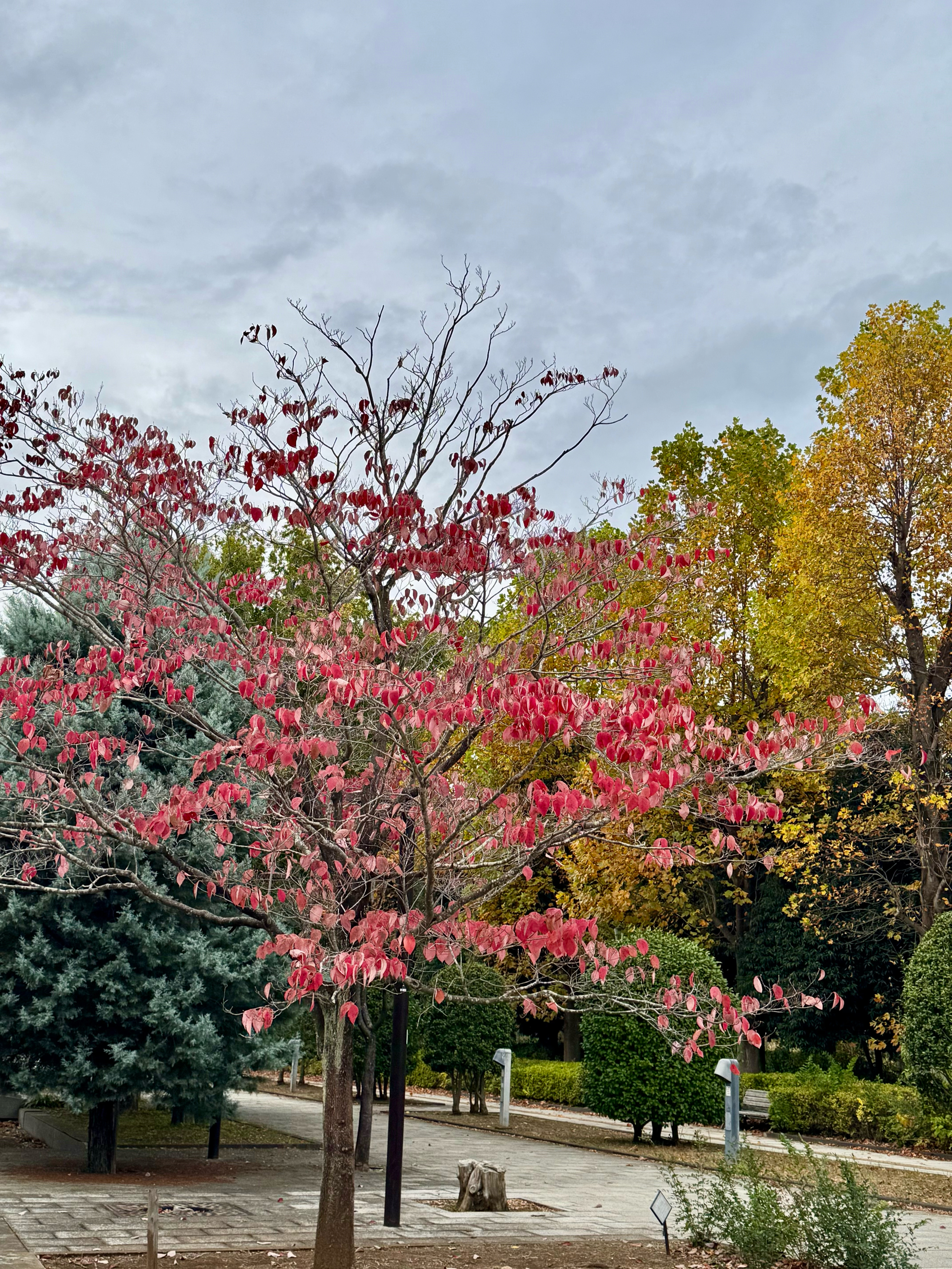 お目当てのモミジバフウの通りはここ数年見られないのが残念です。ラクウショウの紅葉🍁は早かったです。