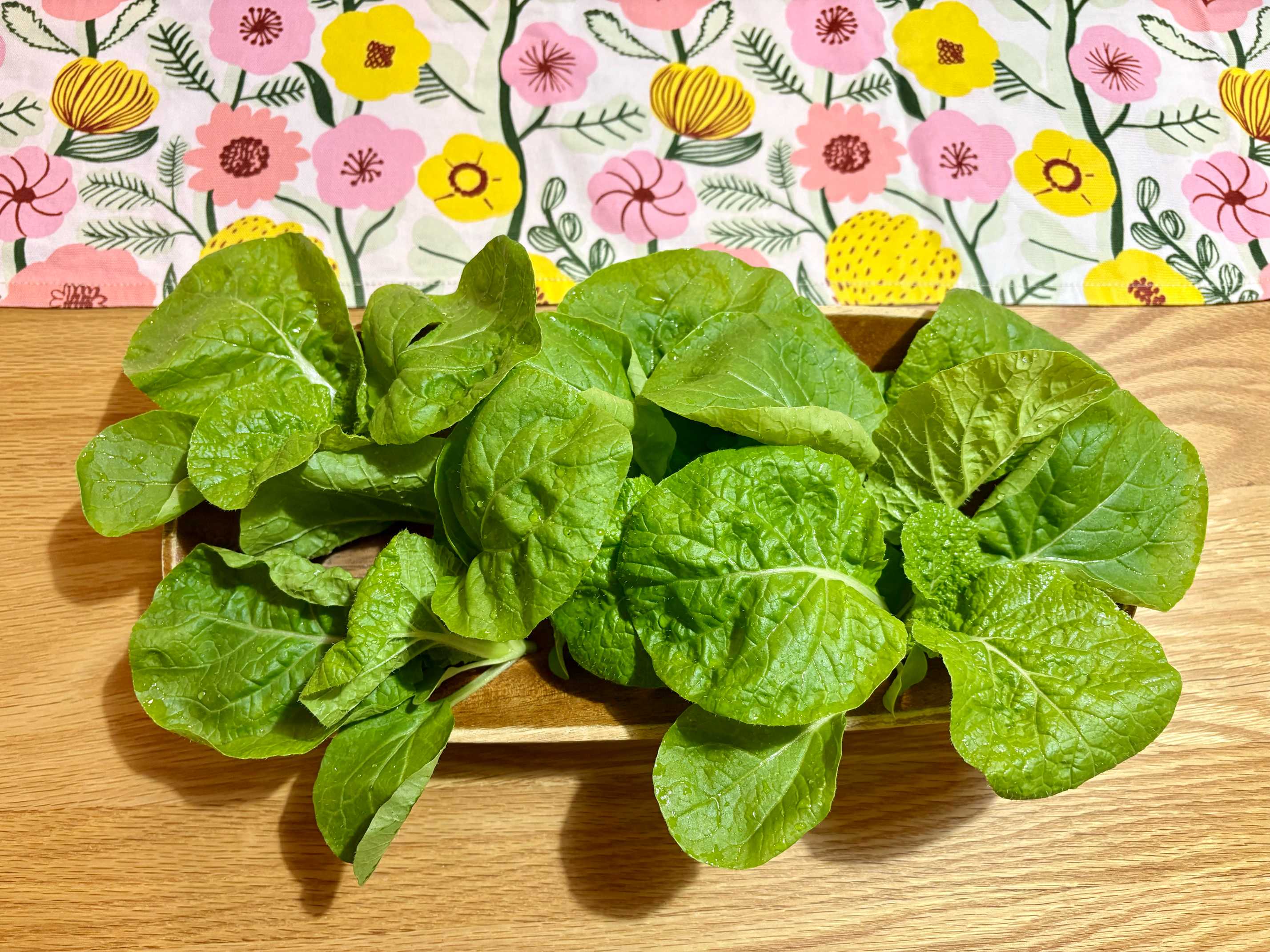 間引き菜は、中華スープにのせていただきました!柔らかくて美味しかったです♪