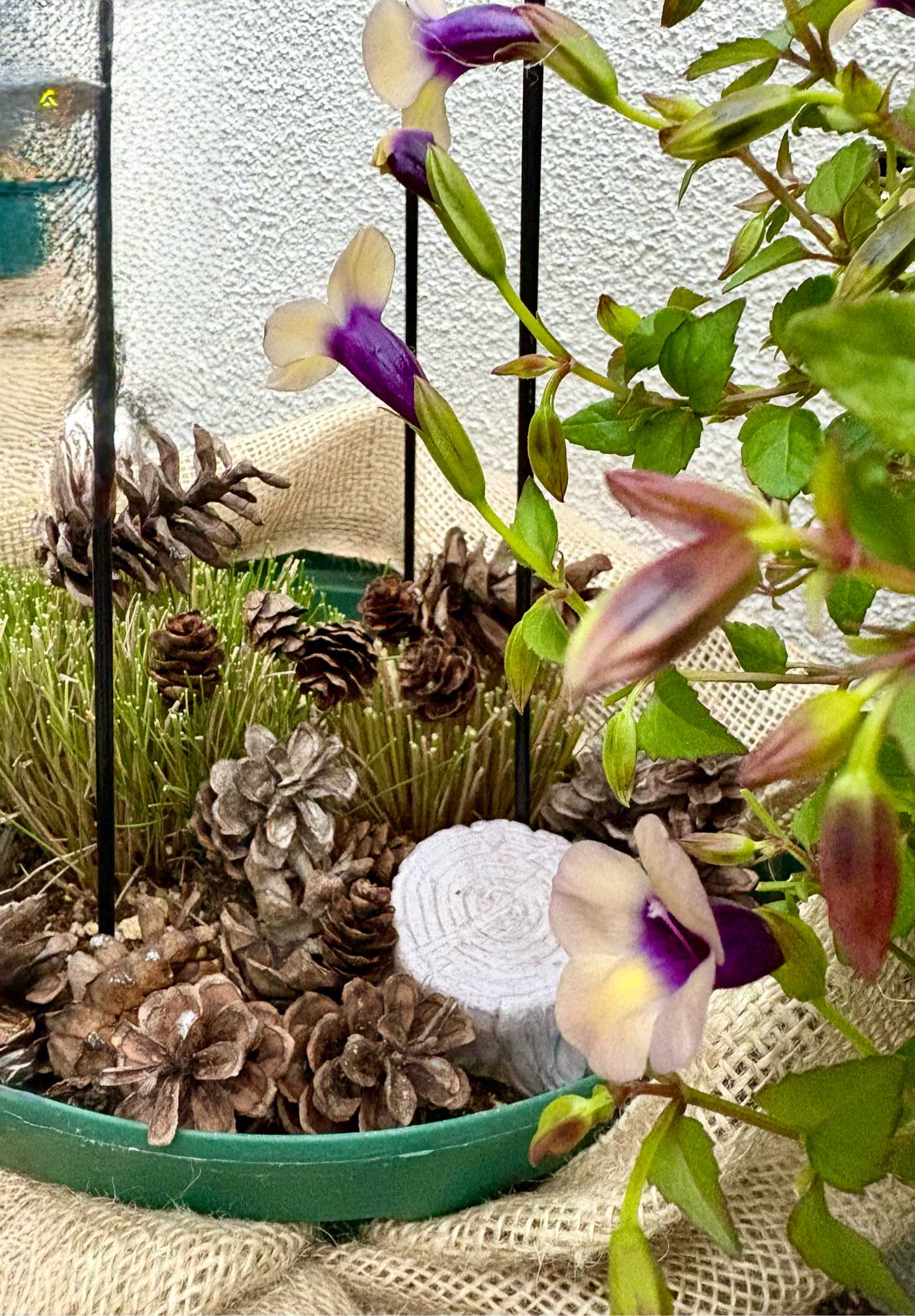 鉢の中には松ぼっくりを入れてデコレーション♪