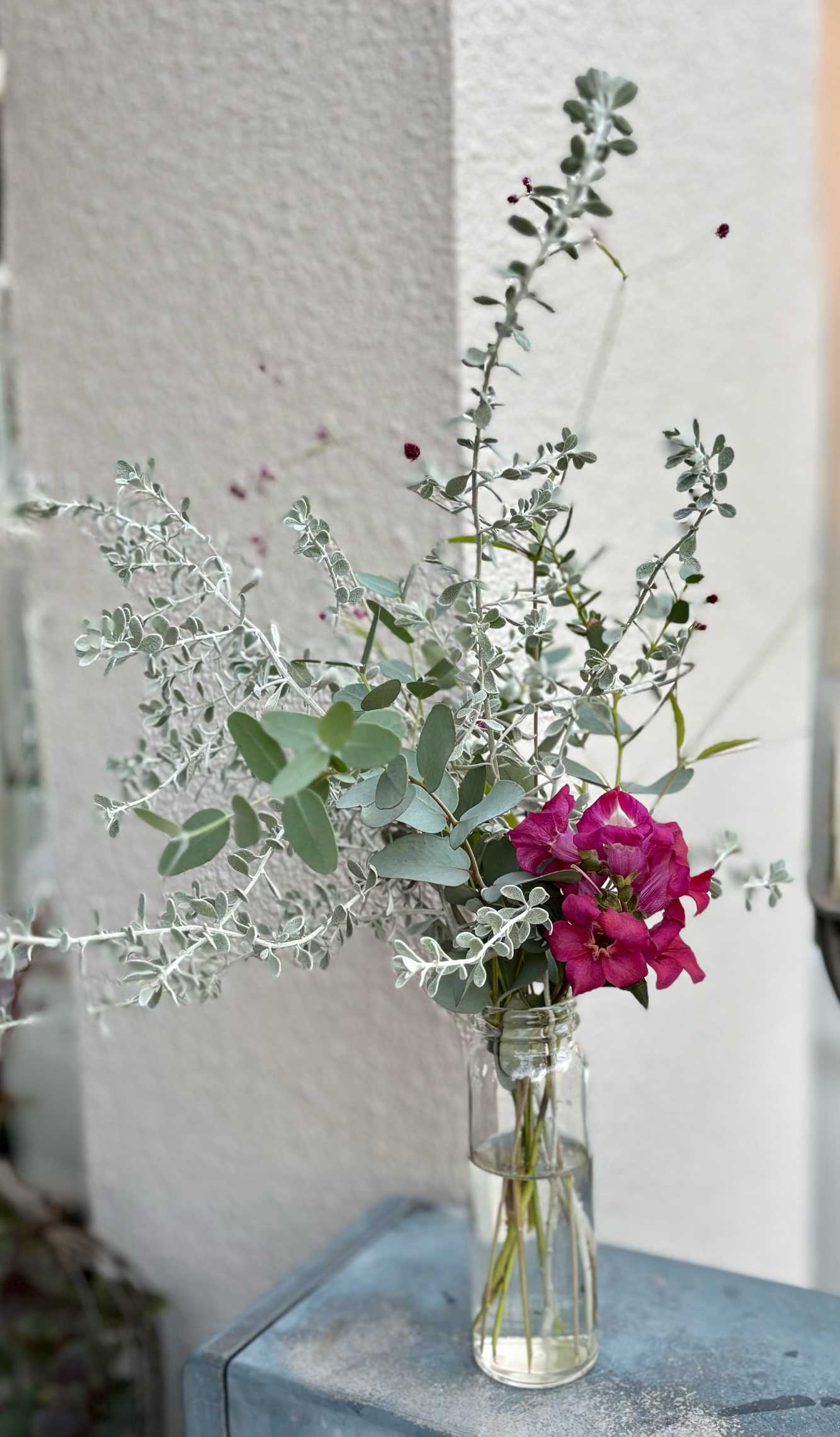 ちょっと早いけれど、クリスマスを意識したボルドー✖️シルバーのアレンジメント。