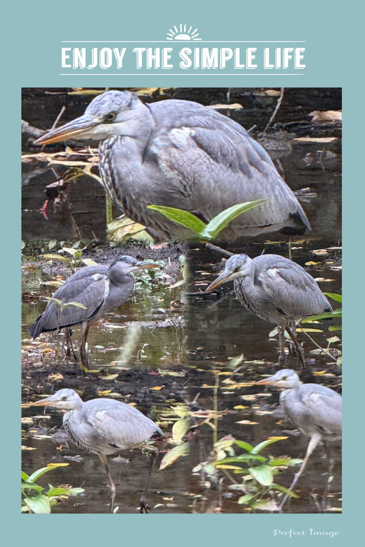 池にアオサギ幼鳥のようです