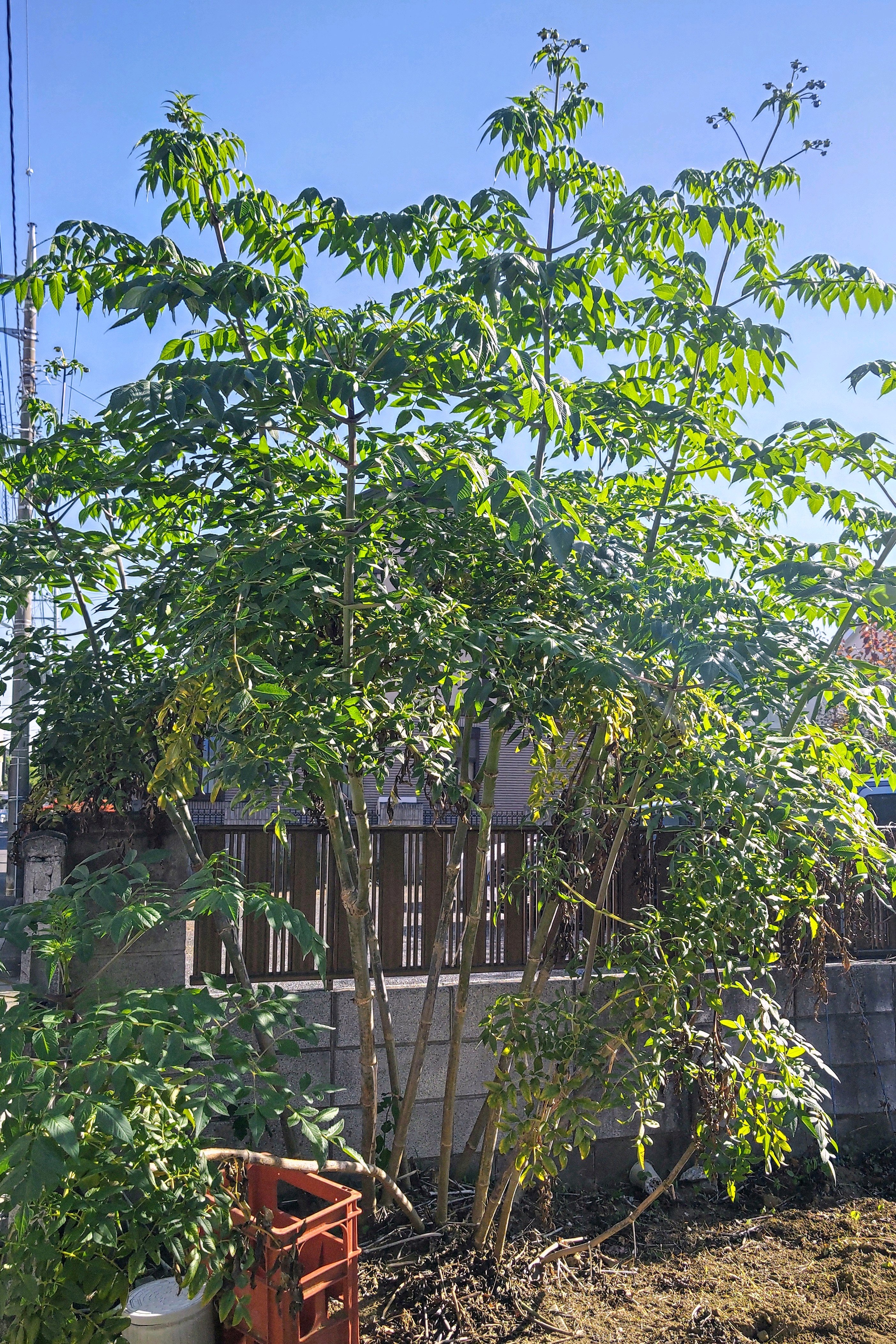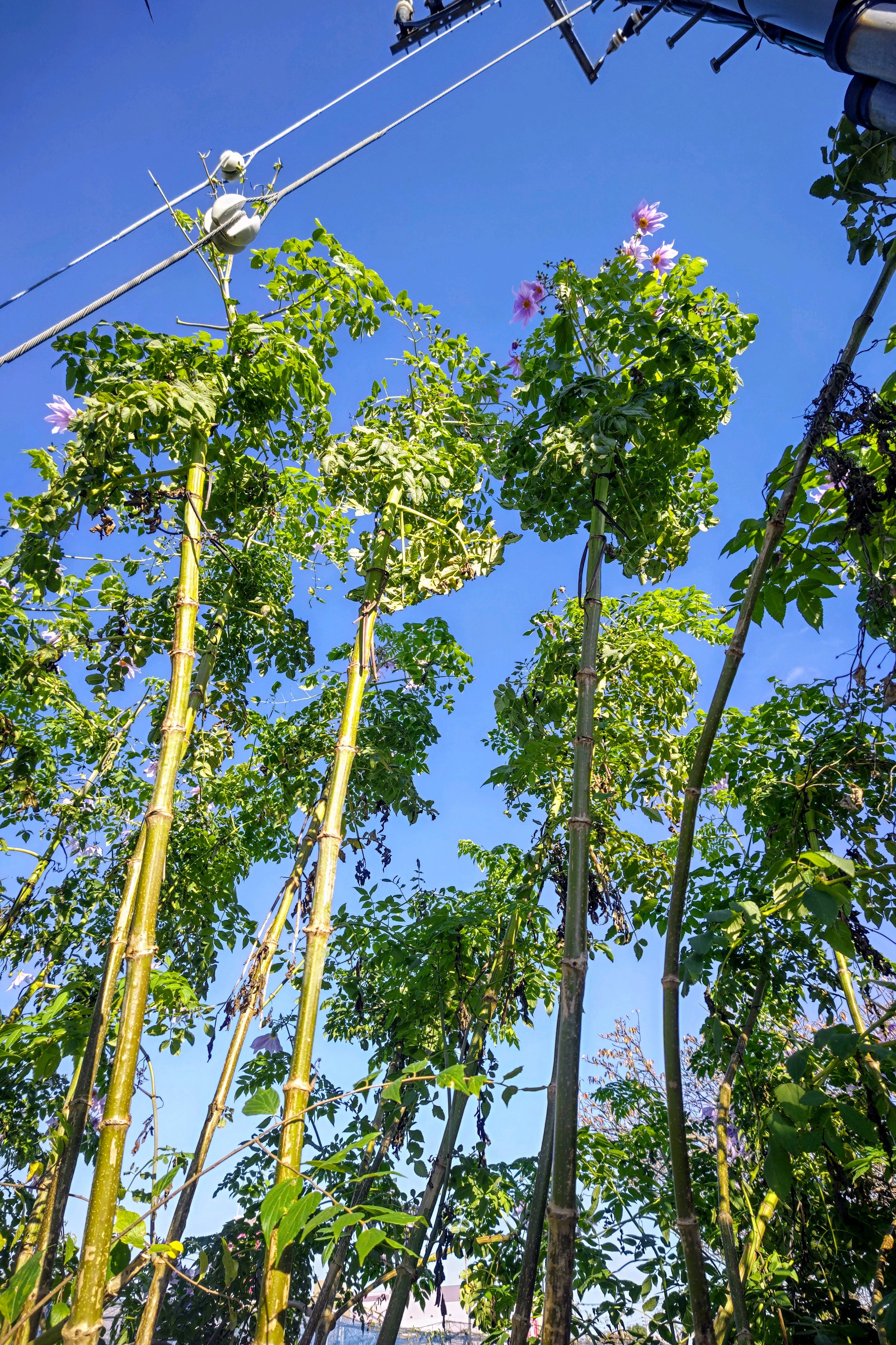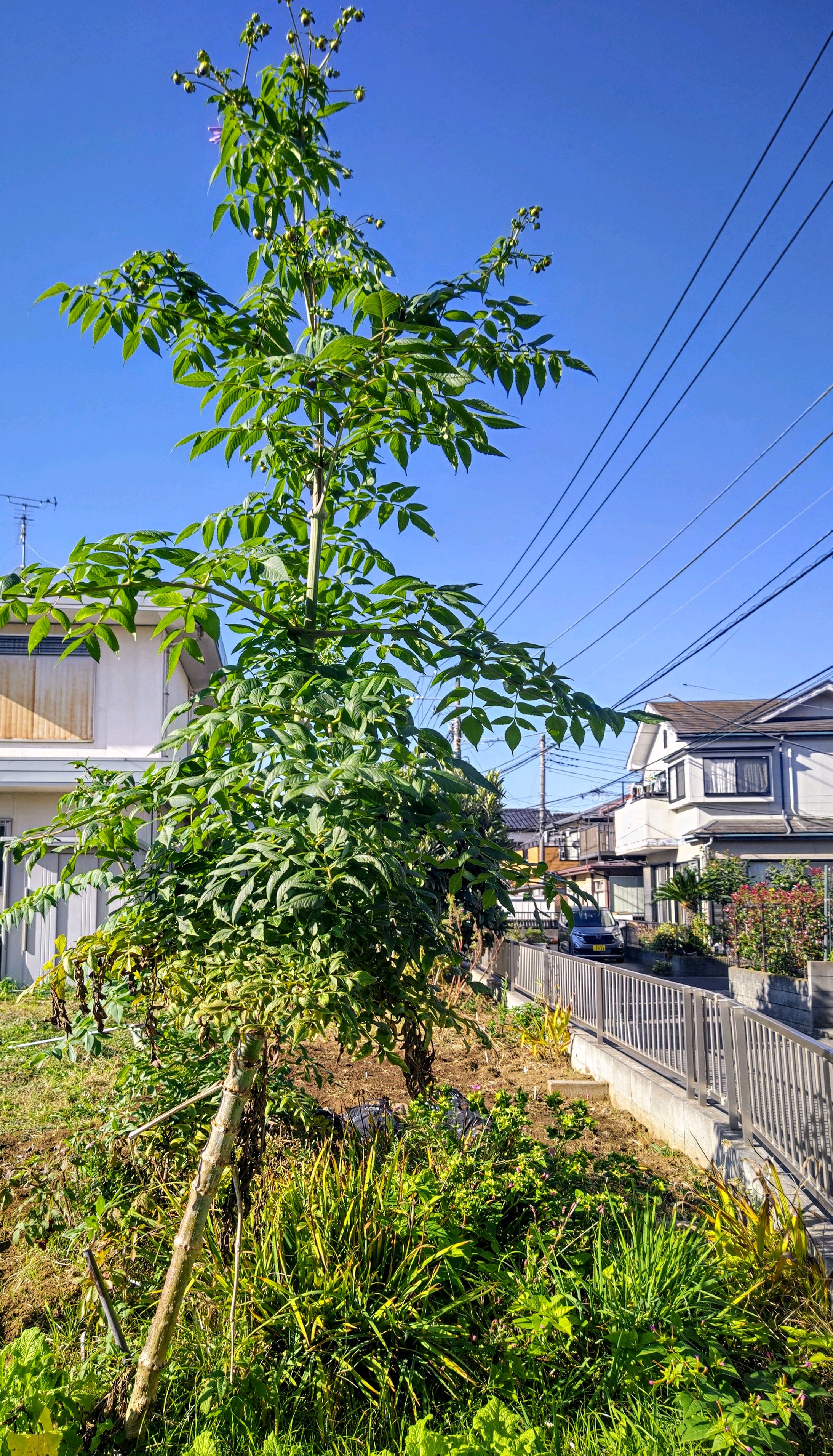 今年は途中で枝が折れたとかで、何時もより伸びてない。2メートル強