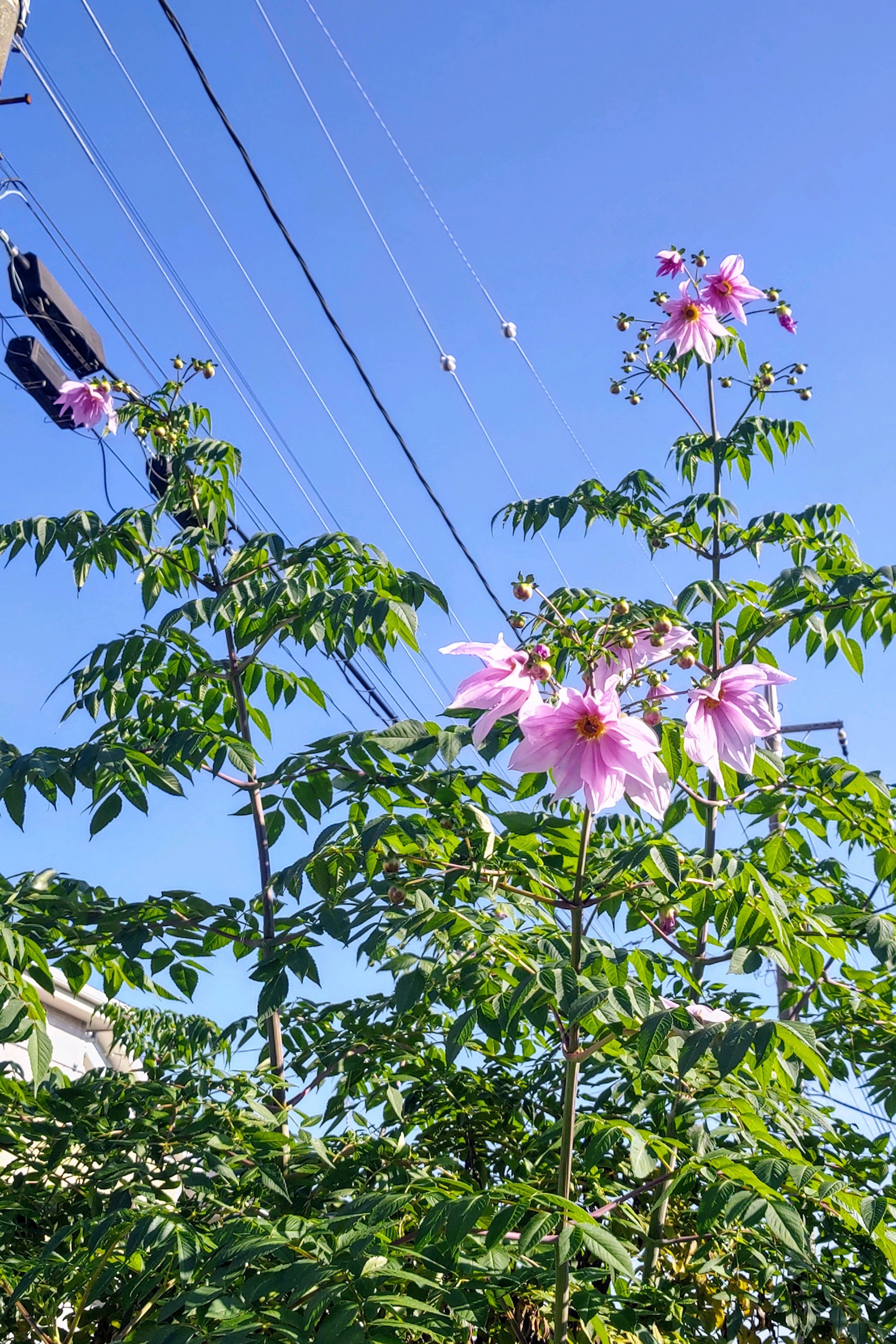 晩秋の空に咲く花、皇帝ダリア。今年の皇帝ダリアを記録したいな。