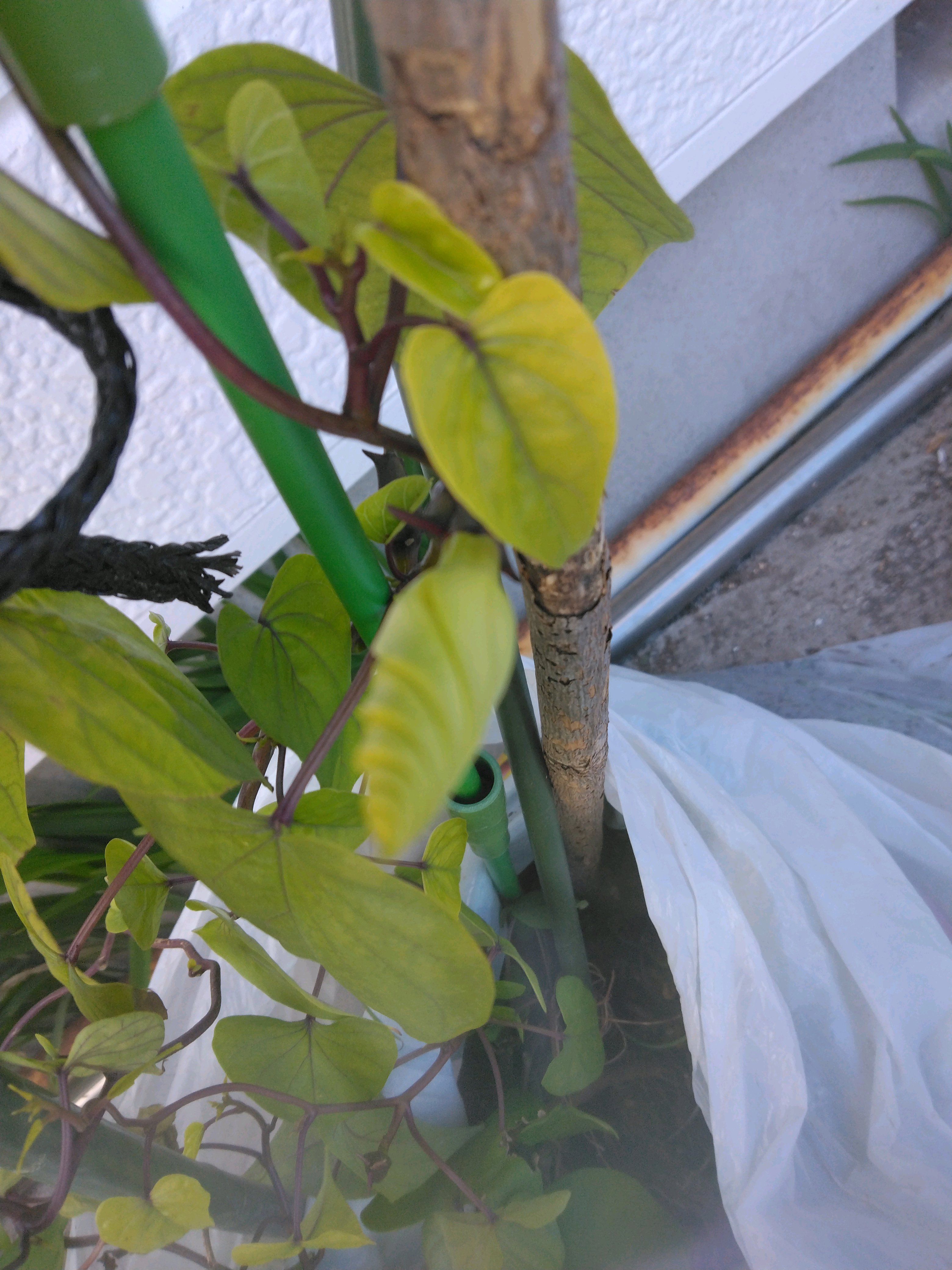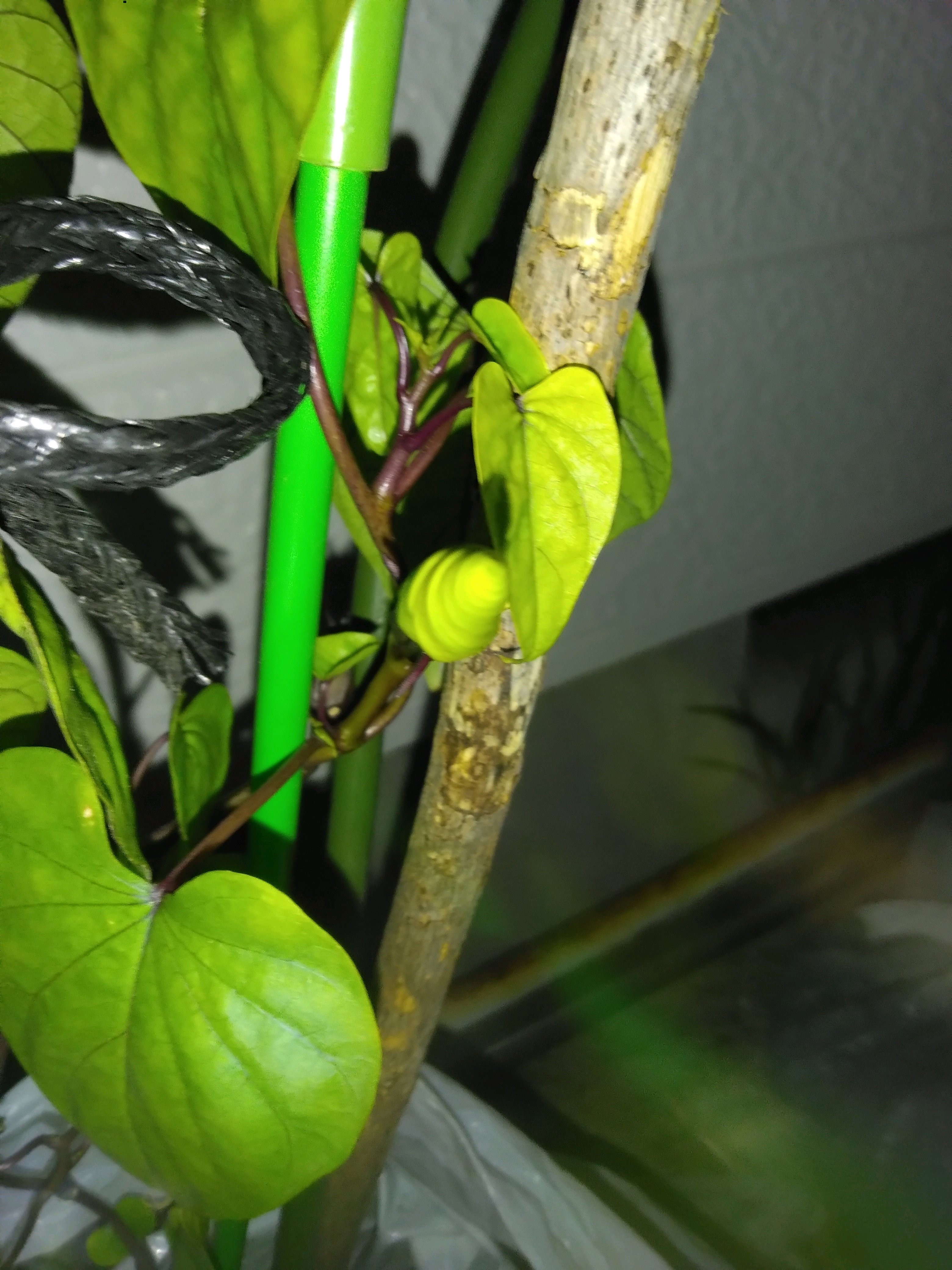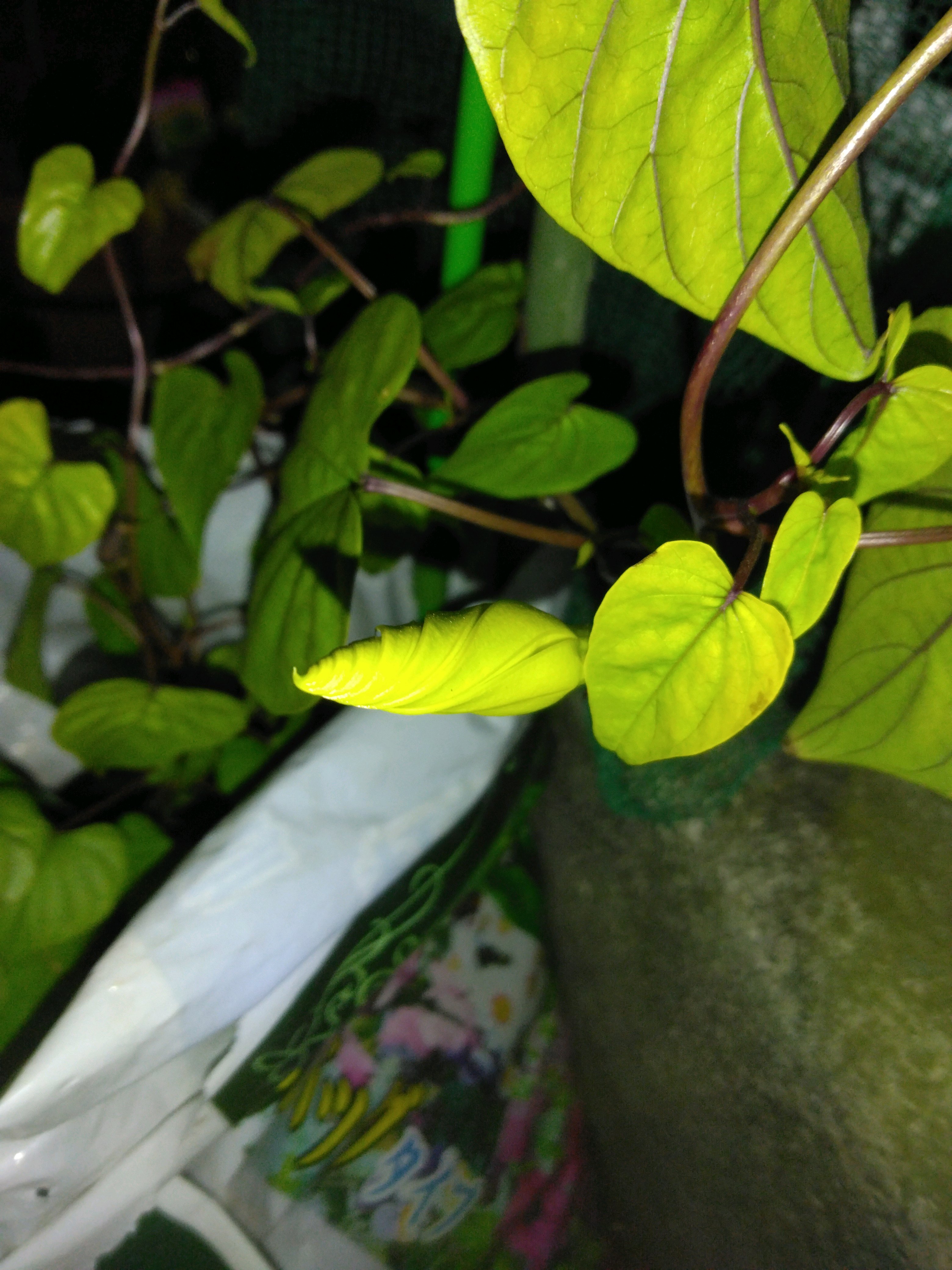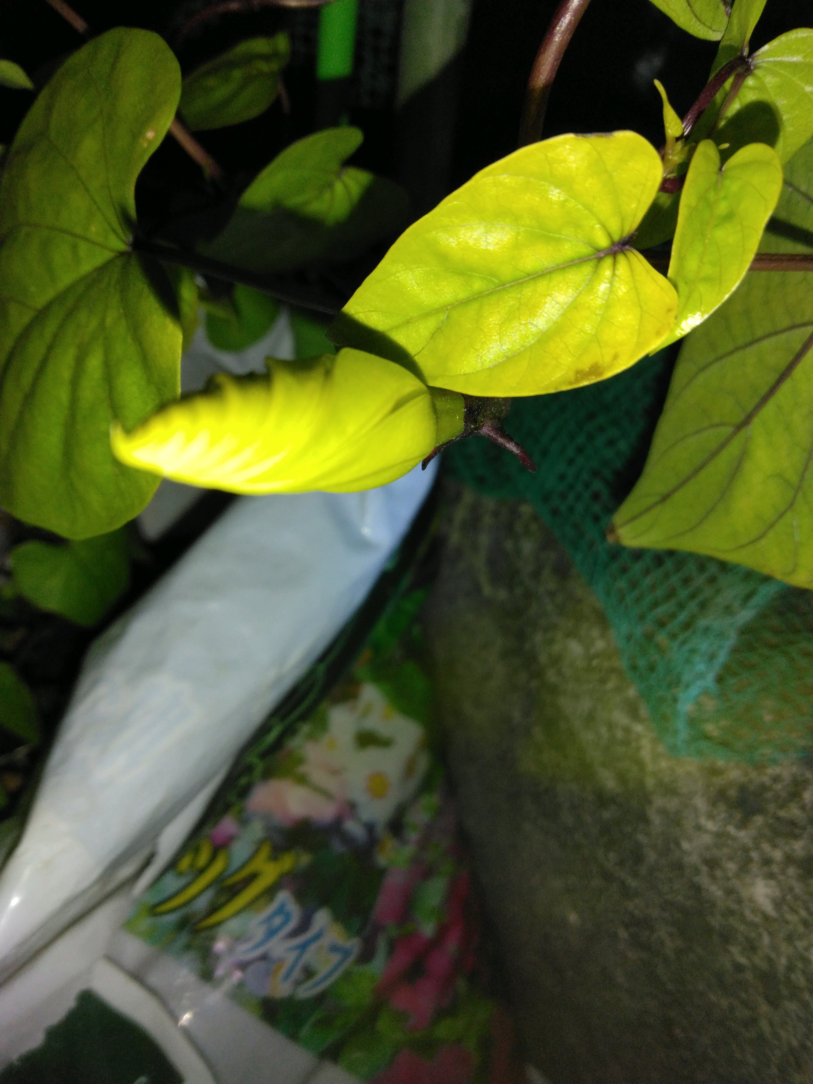少しだけ玄関から近い場所の陽当たりは抜群東南西と当たり、夜間は街灯と室内灯りからは逃れないけど 沖縄スズメウリのお隣に移した。
