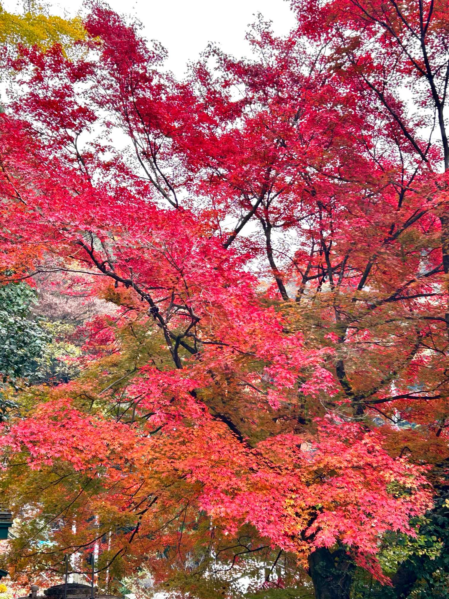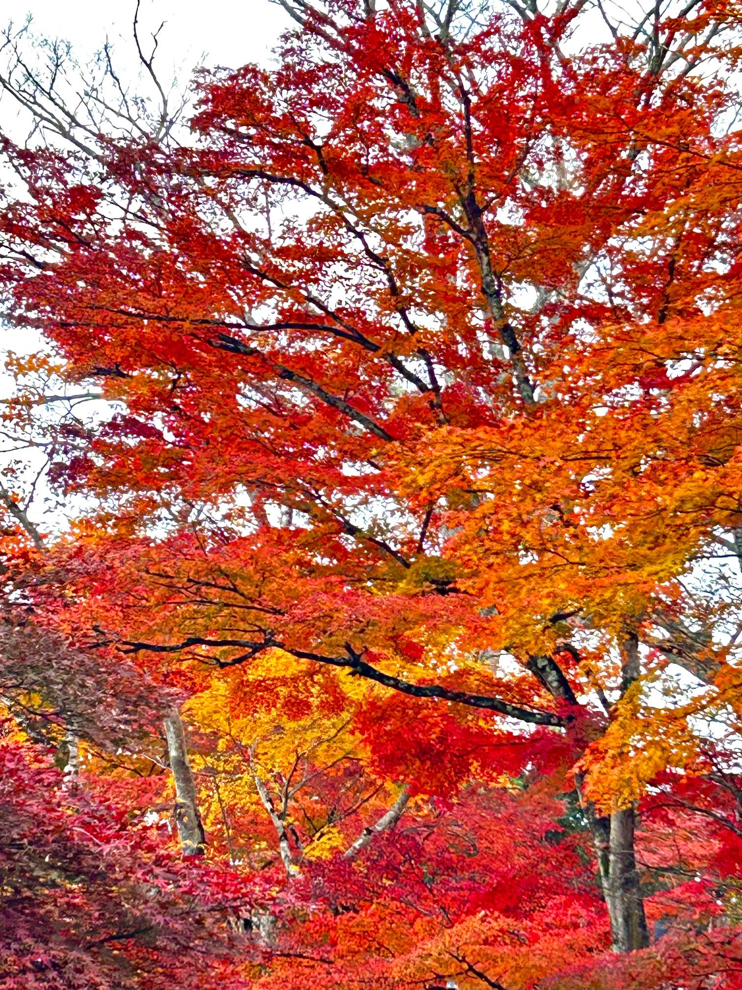 曇り空と紅葉初めでこれからがもっと綺麗な彩りになりそう💛🧡❤️💚🩵💙