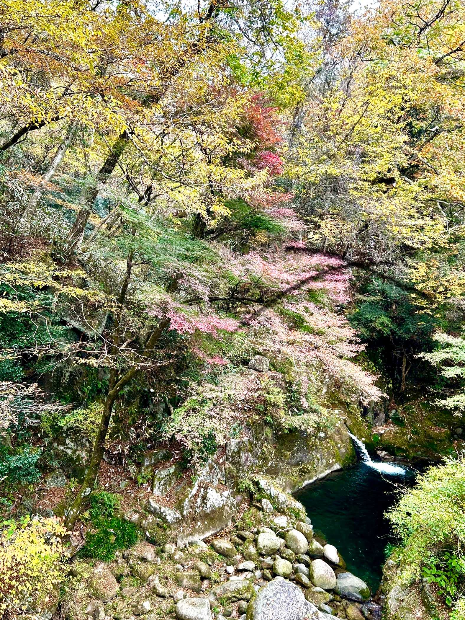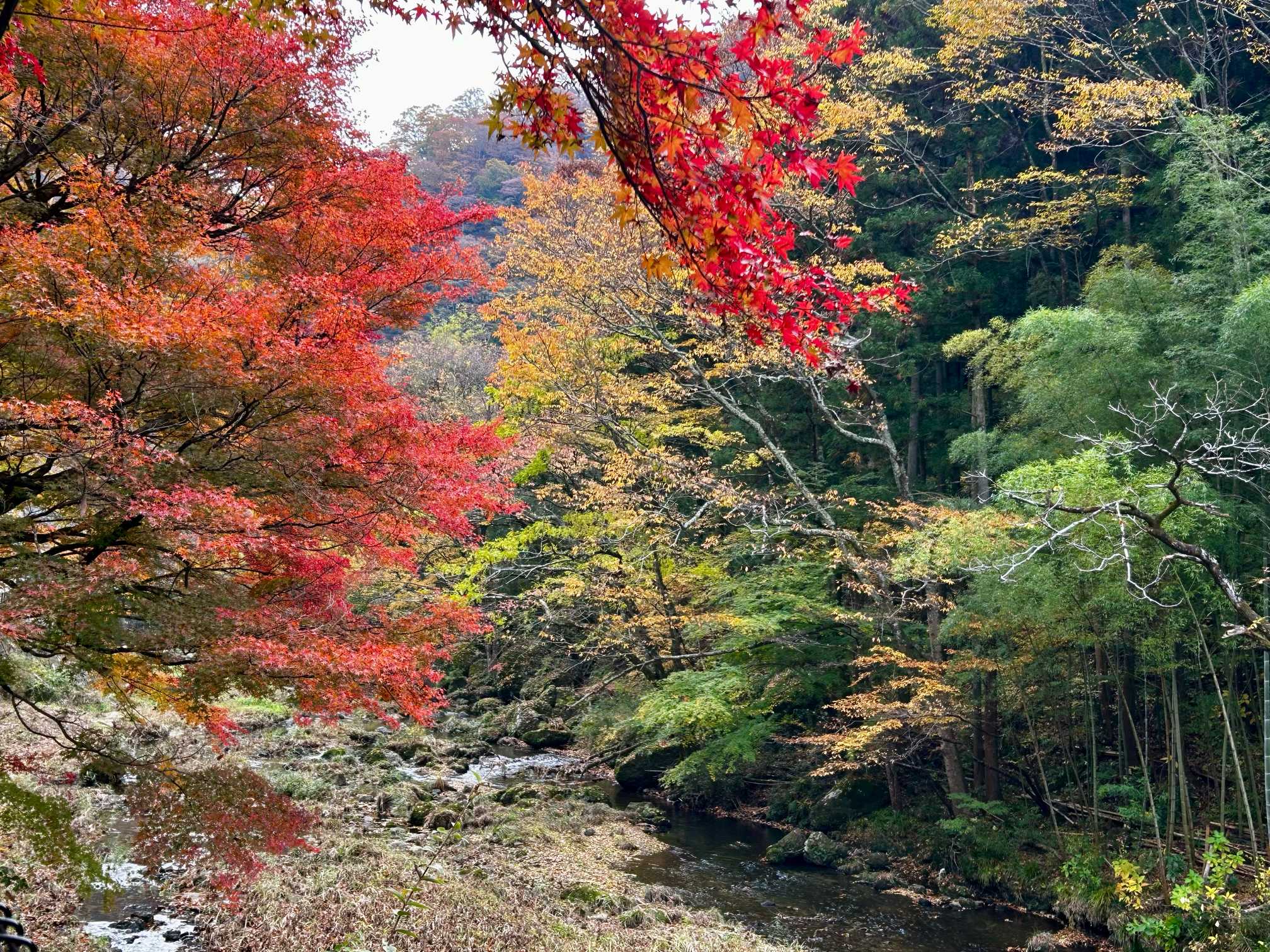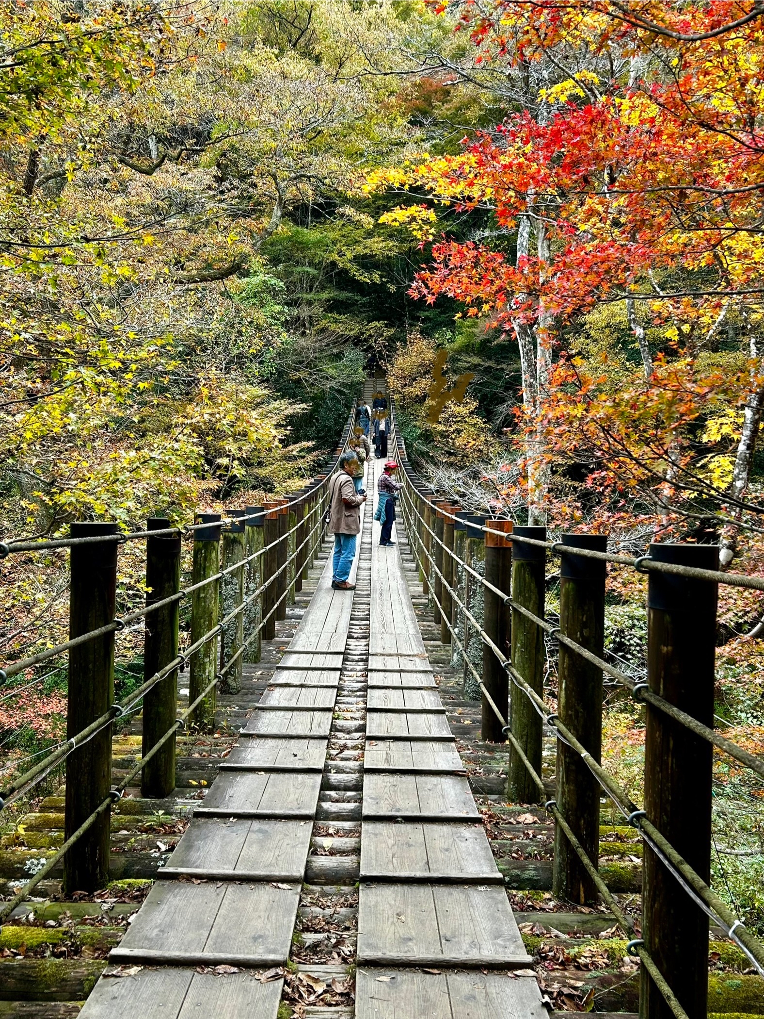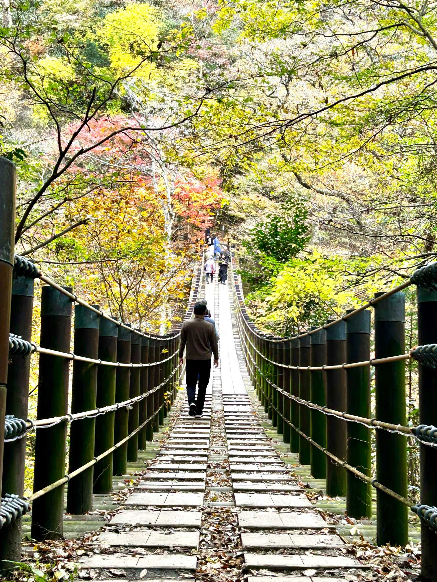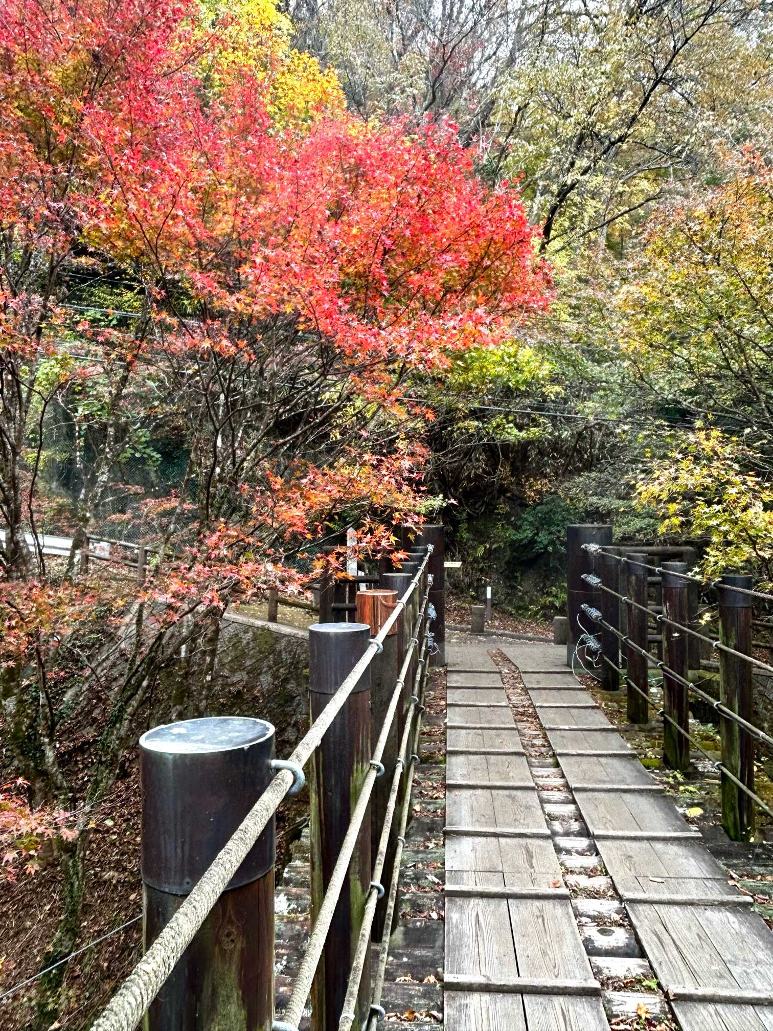 花貫渓谷吊橋はやっと紅葉🍁始まりこれからが見頃