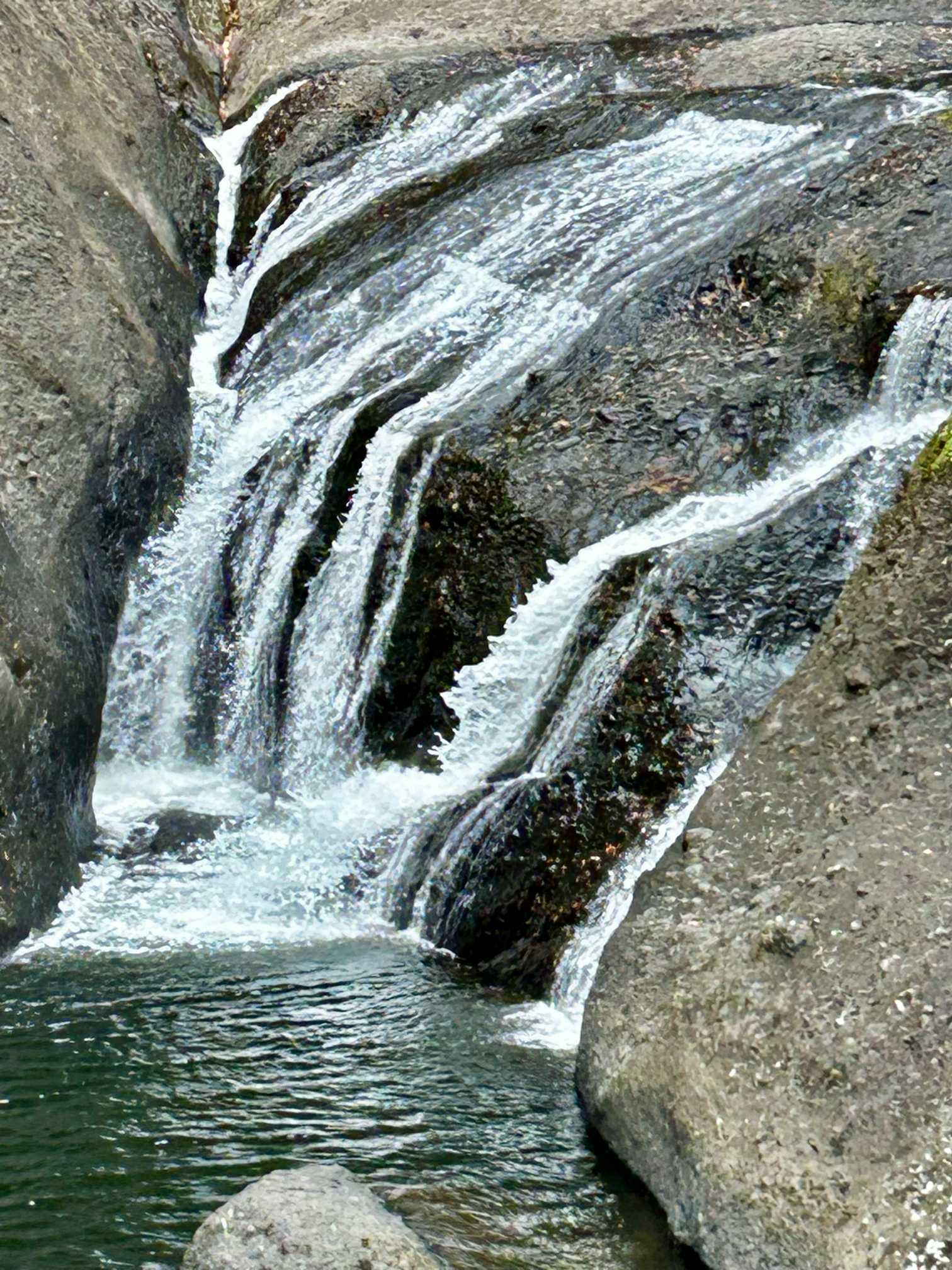 長〜い楽しいトンネルの途中恋人の聖地のブランコやオシドリモニュメント見ながらを通り抜けると二度目の袋田の滝と遭遇
