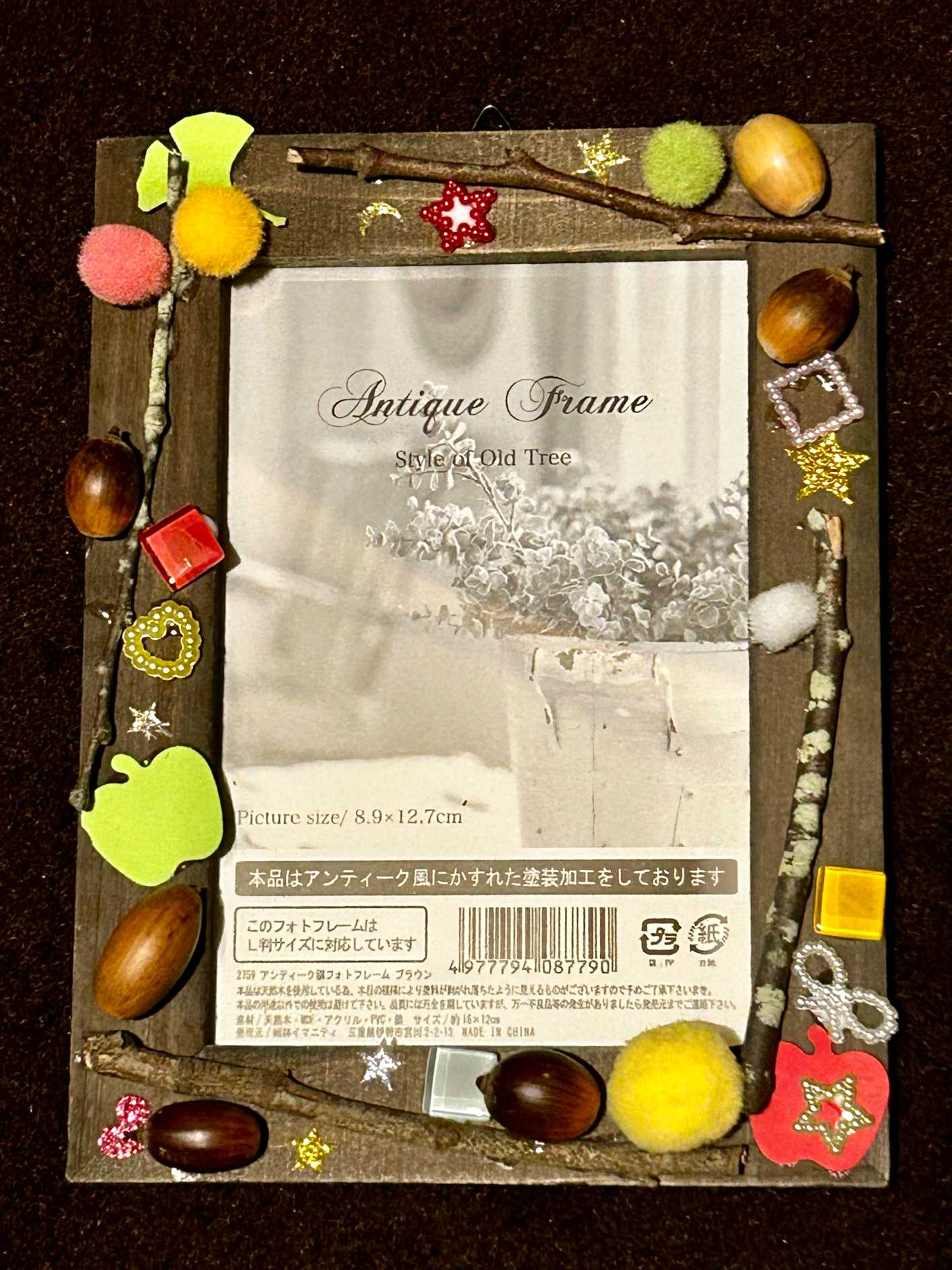 宿の無料のクラフトコーナーで手作り写真立てを記念に作って来ました🥰