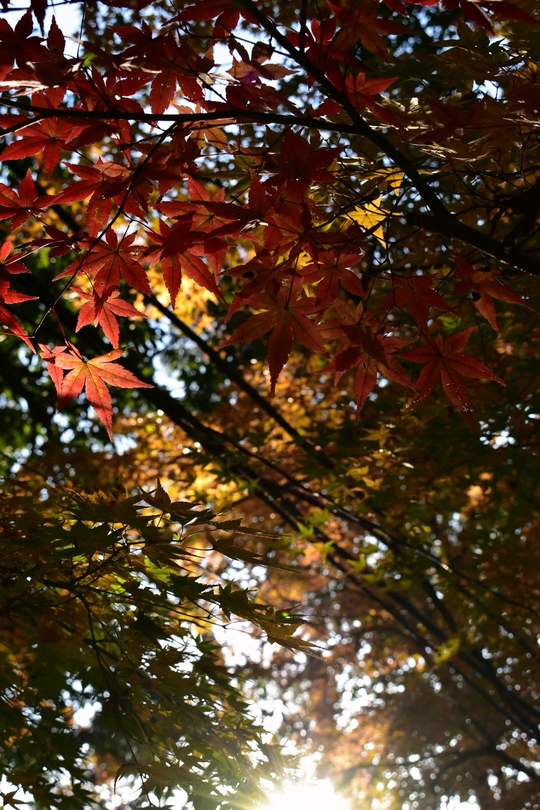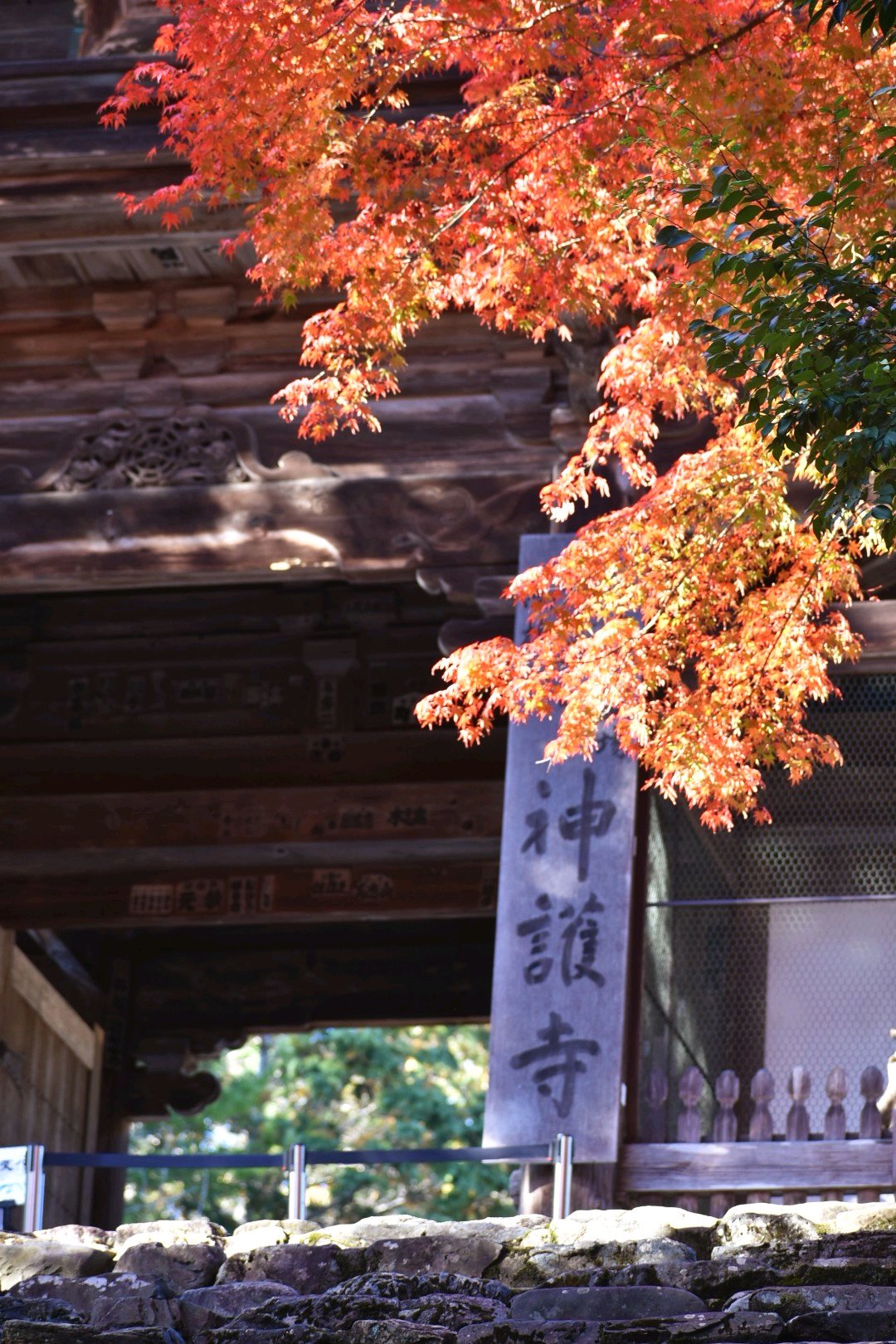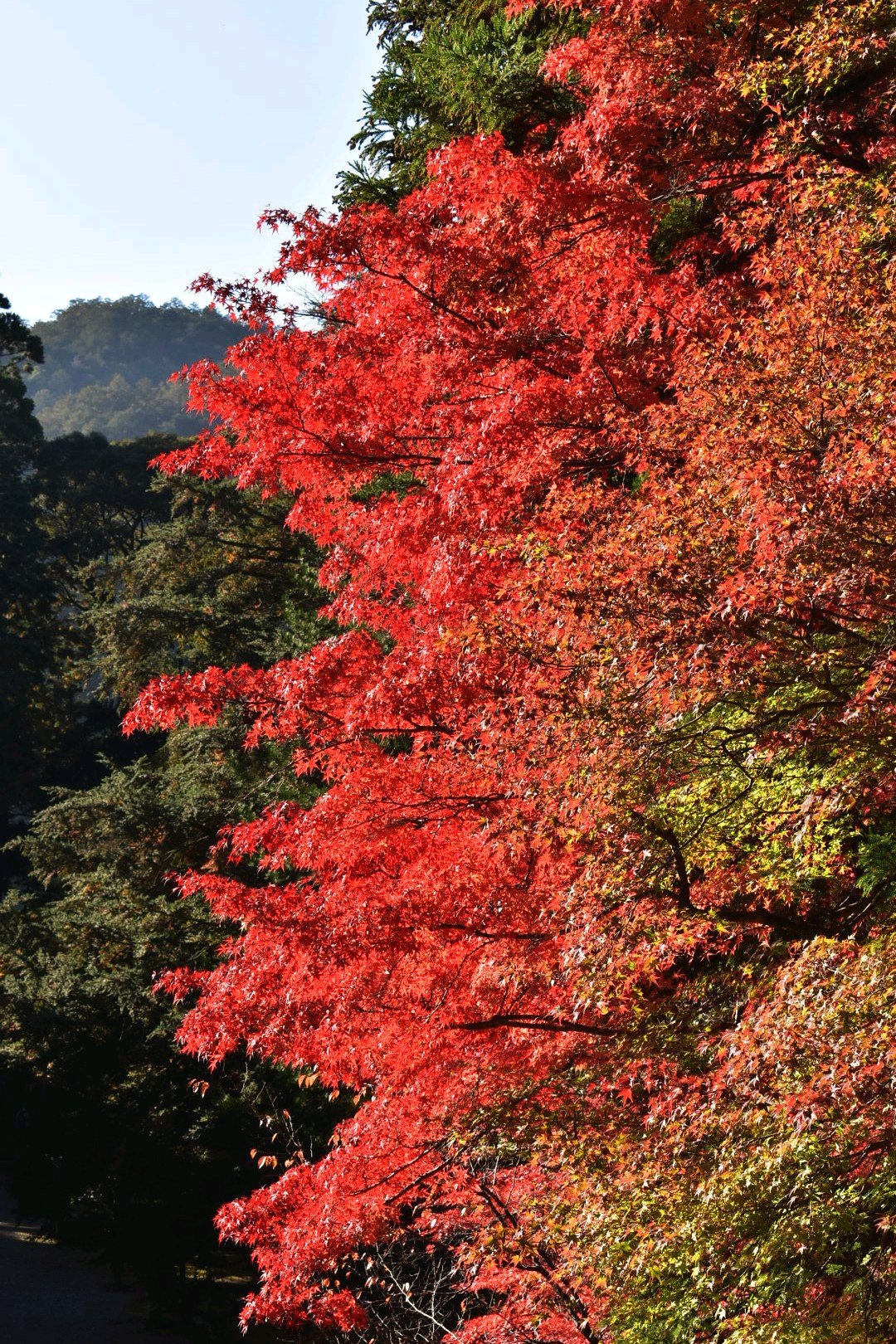 神護寺まで登る中、木々の間からの木漏れ日で紅葉🍁がスポットライトを浴びてました✨✨