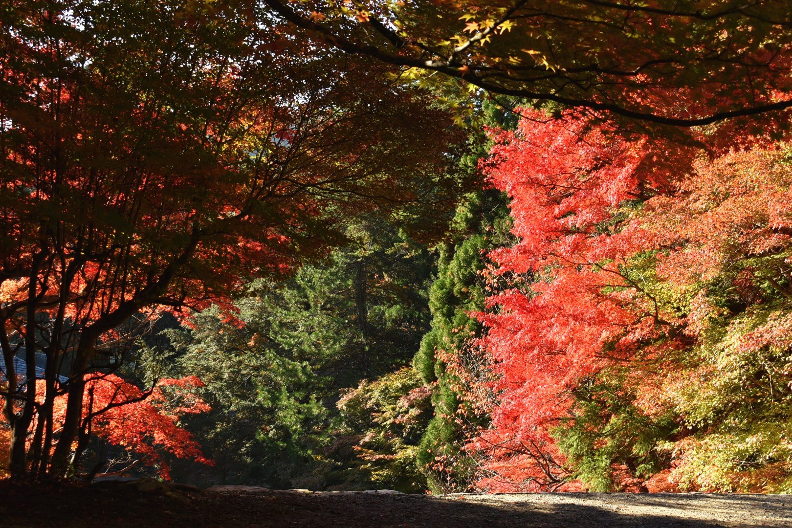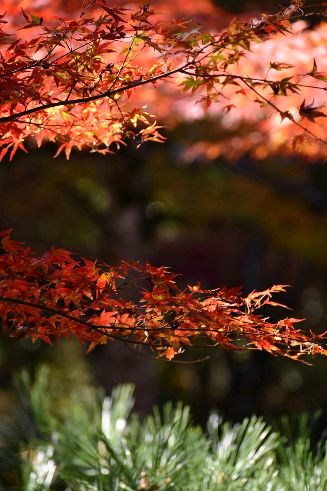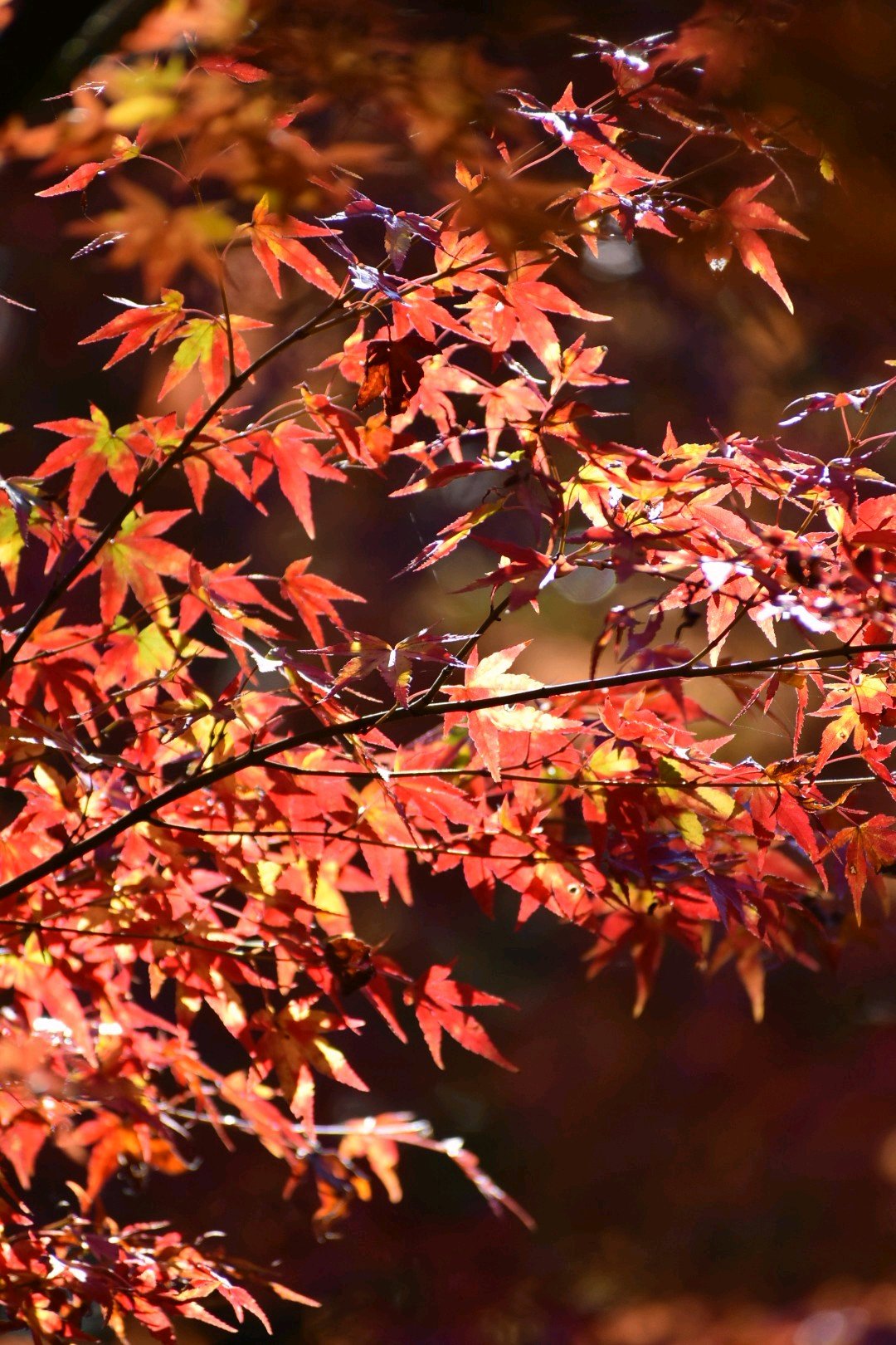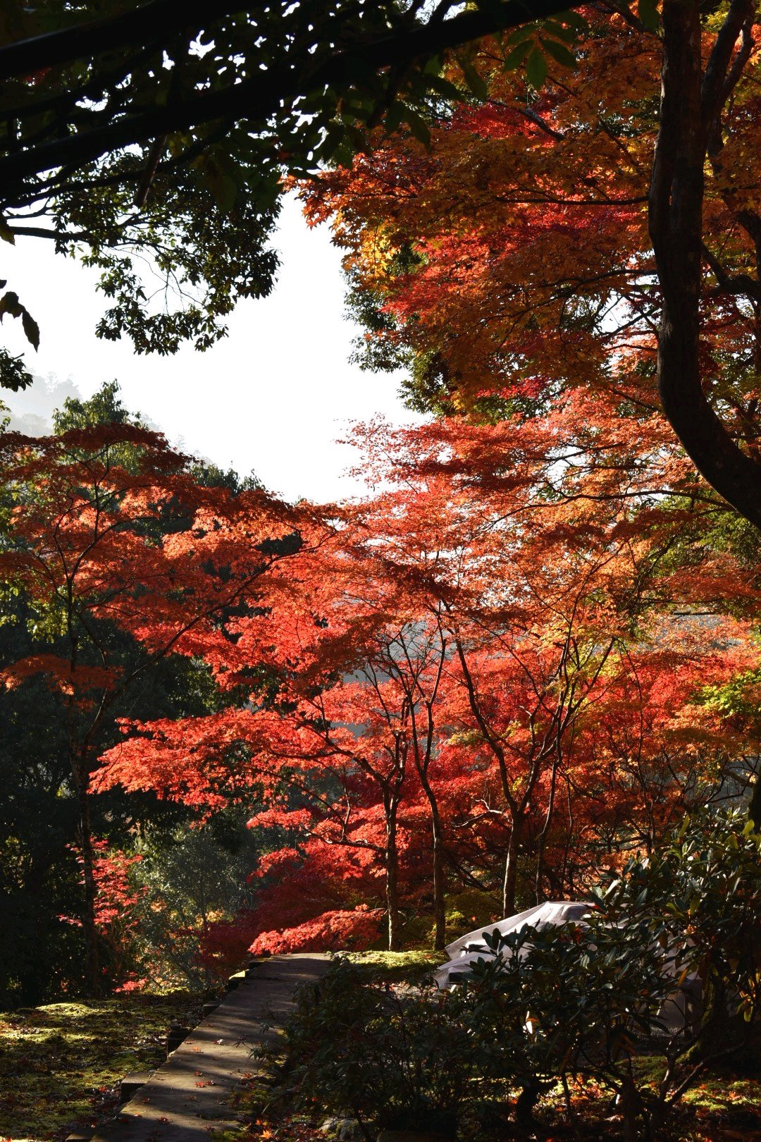 神護寺まで登る中、木々の間からの木漏れ日で紅葉🍁がスポットライトを浴びてました✨✨