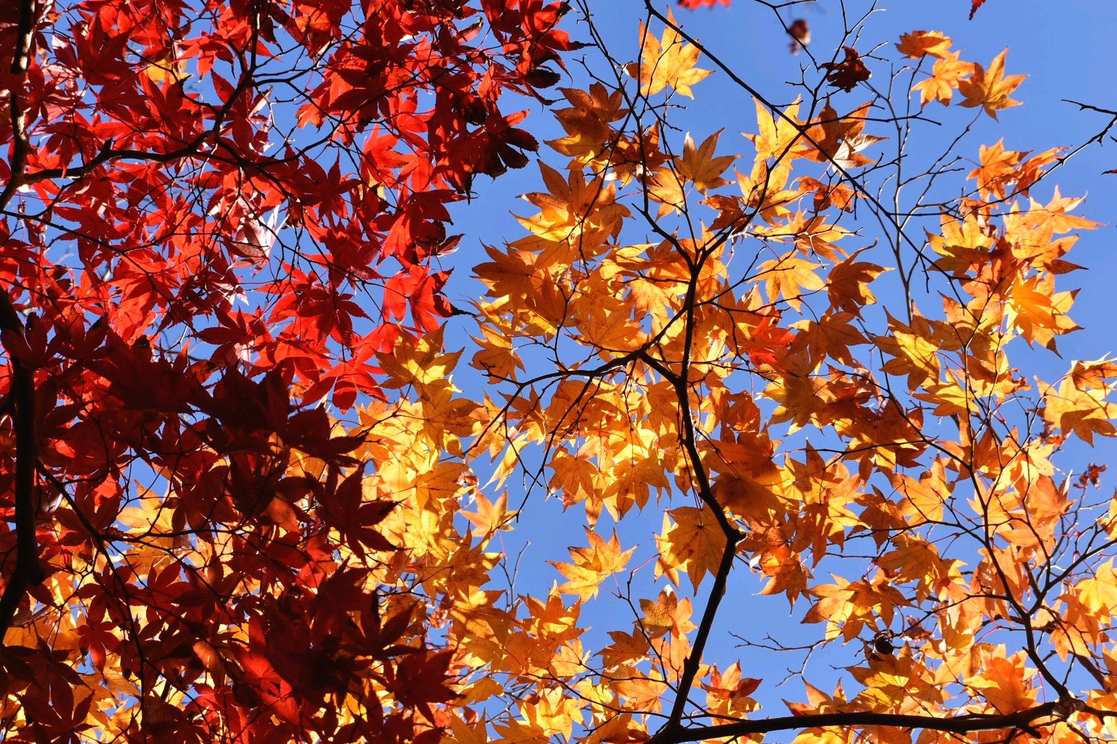 青空と紅葉と黃葉のコラボ✨❤️💛❤️💛
