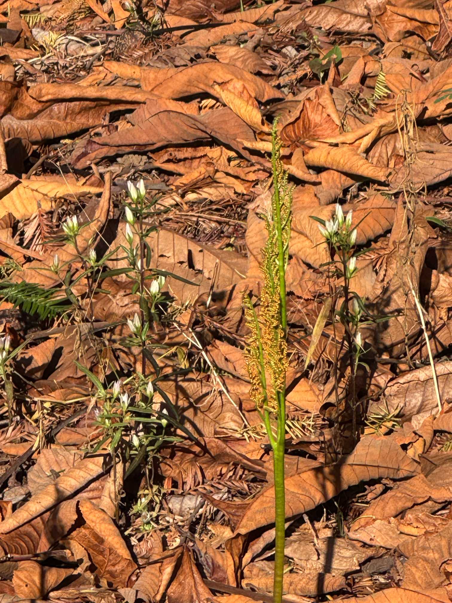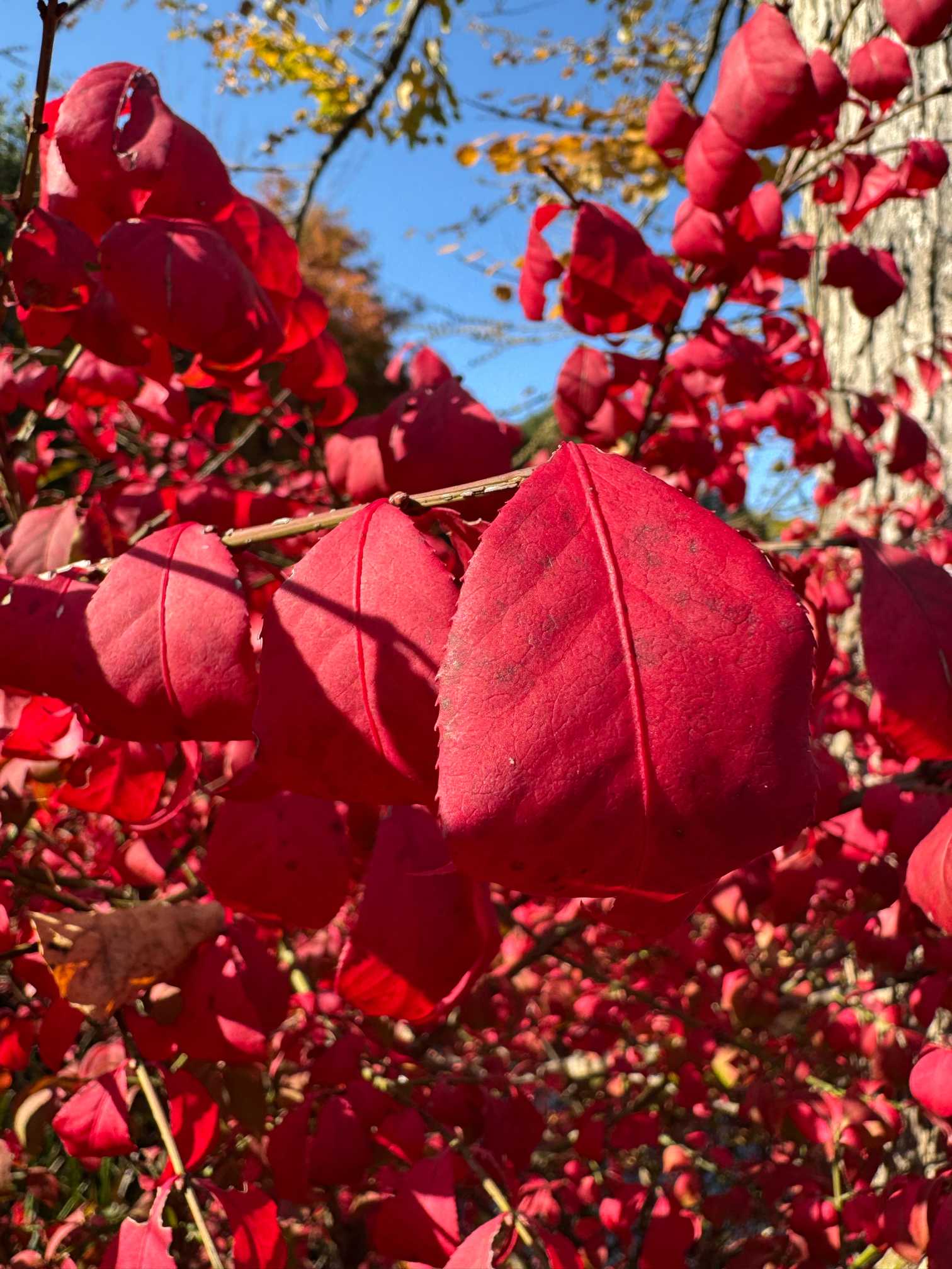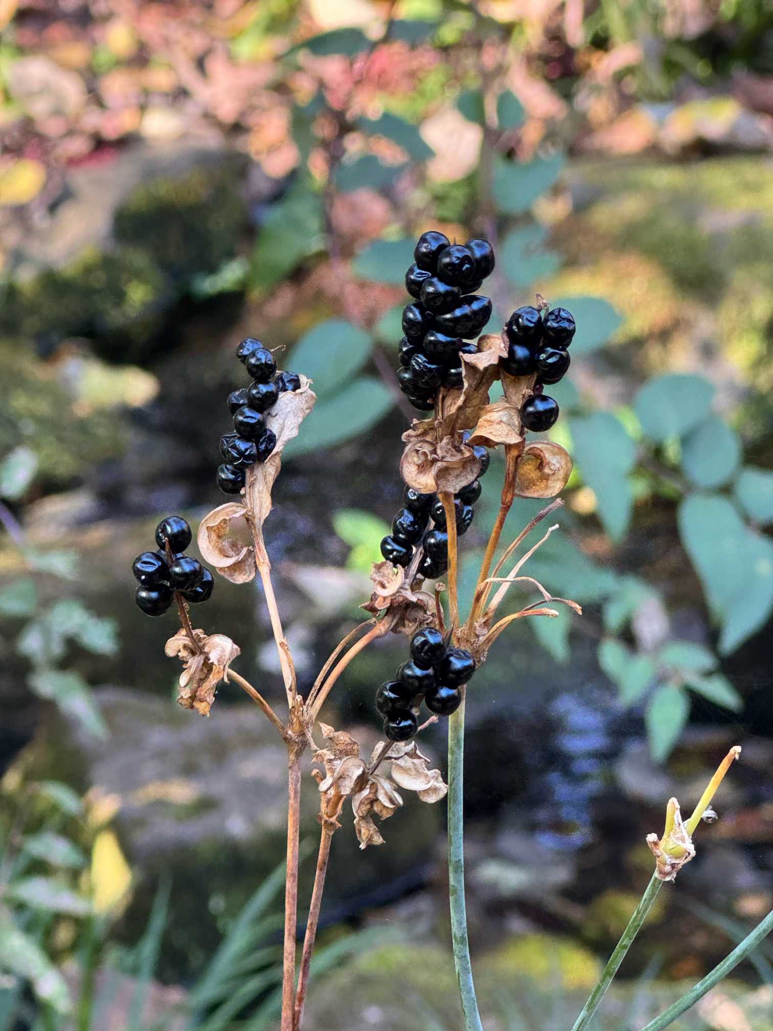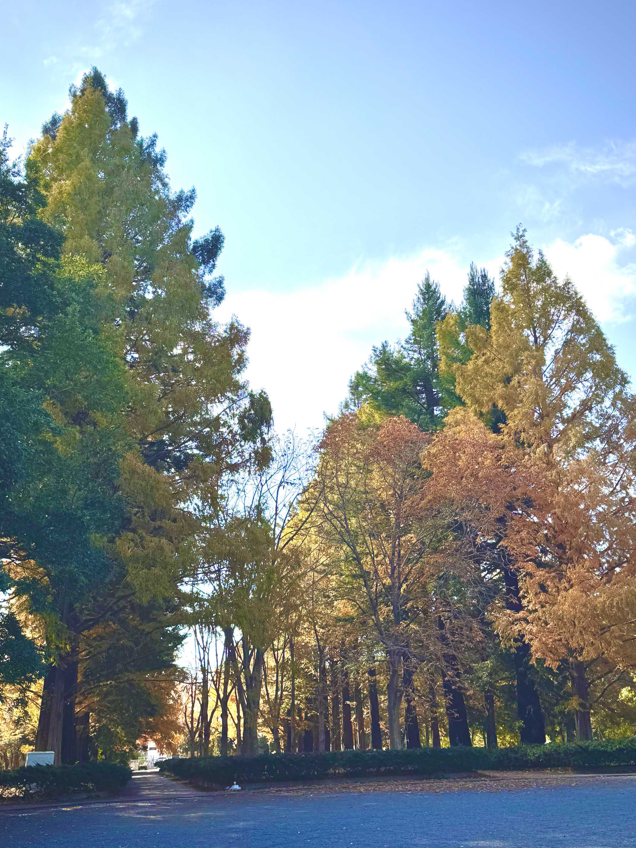 紅葉が進む樹木が、自分のカラー見せてくれます。メタセコイア、イロハモミジは、これからがもっときれいになるでしょう。コマユミは真っ赤に色づき、とてもきれいでした。カツラの木は、落ち葉が甘い香りを漂わせ散策を楽しくさせてくれました。黄色のツワブキはあちらこちらで見られましたが、場所によっては蕾のところも。珍しいキクの種類の多さには驚かされます。花が少なくなってきた時期ですが、ゆるり散策して楽しめる場所です。