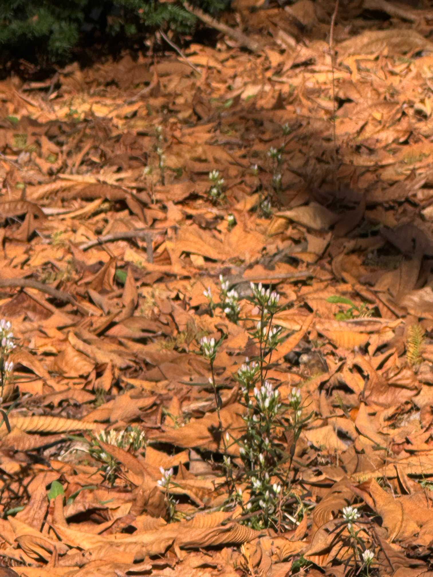 役目を終え、茶色くなった葉っぱとマツボックリが落ちてきています
