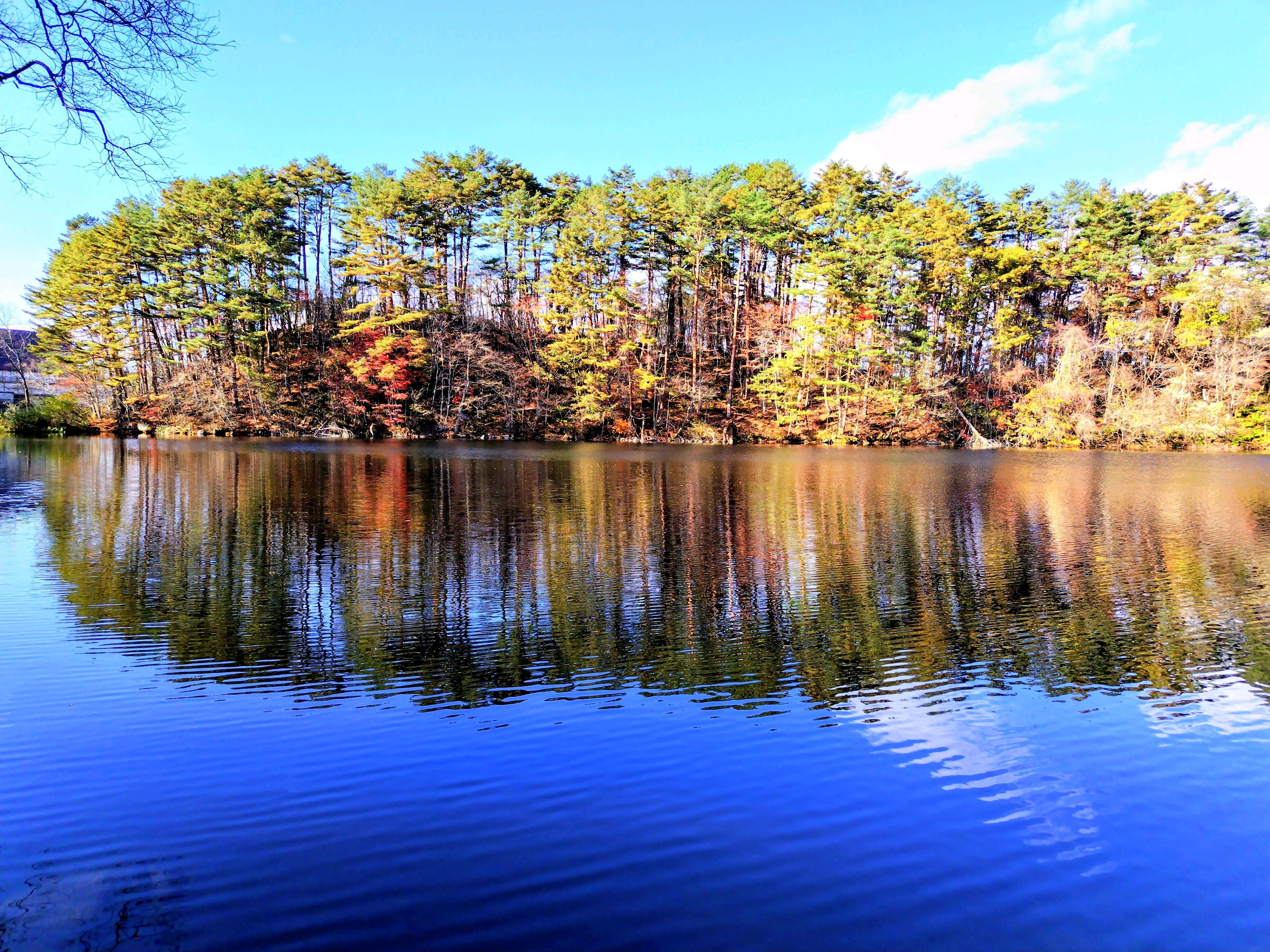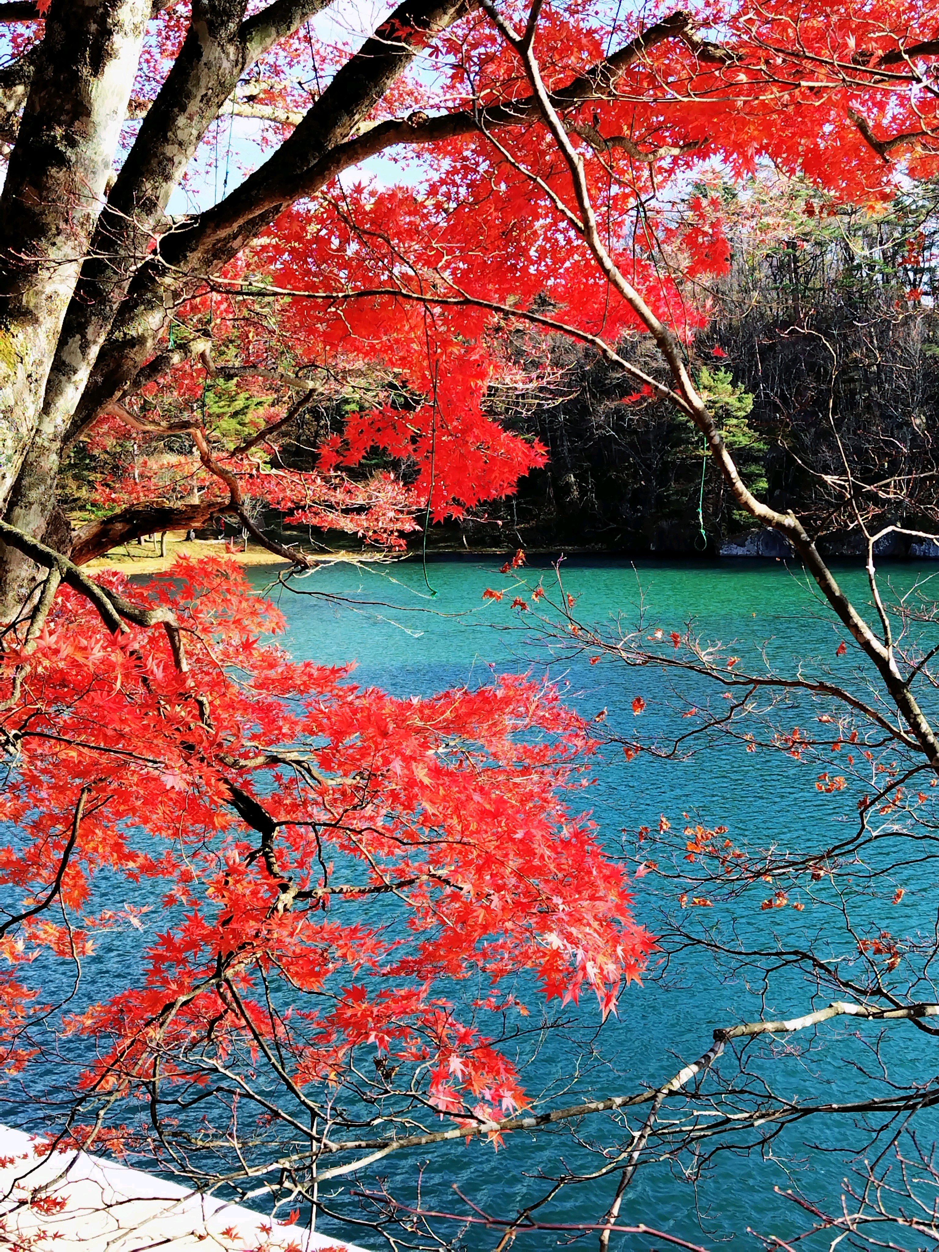 紅葉と湖面のコントラストが想像以上です