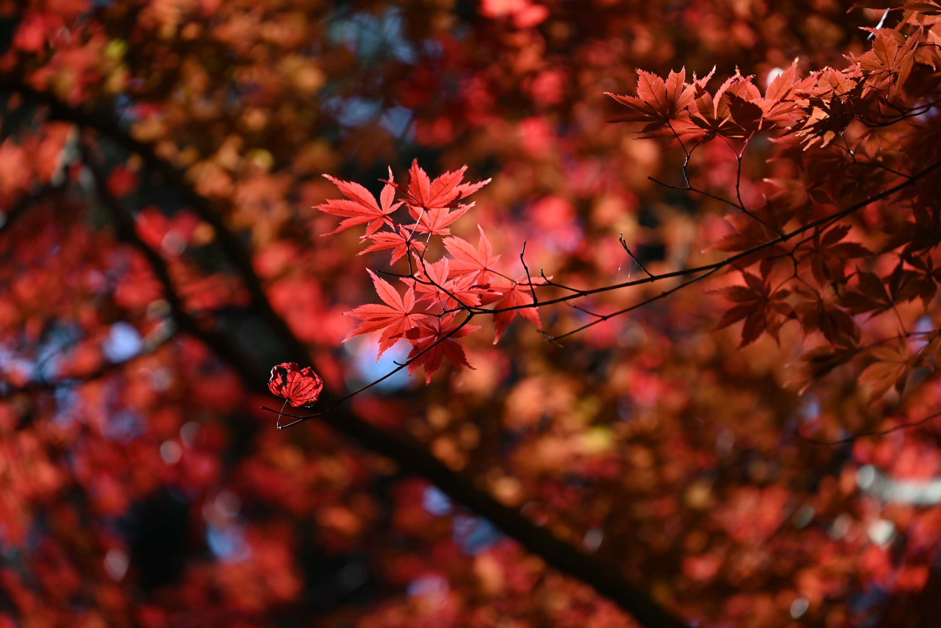 天を仰ぐと水墨画のような小さな紅葉が青空に映えます🍁
