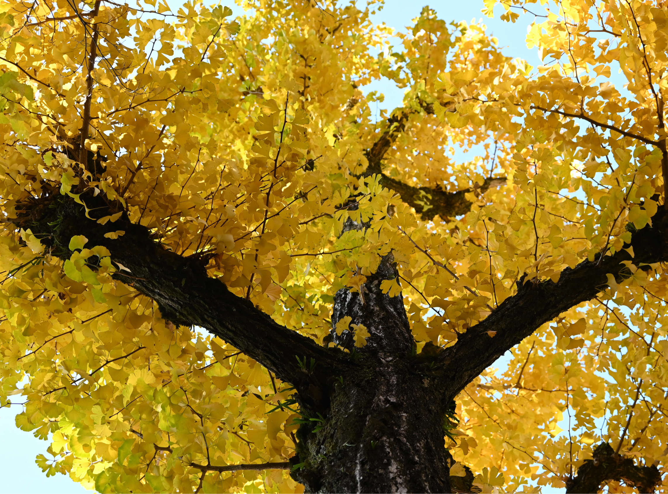イチョウの木✨️✨️ちょうど黄色く色づいて葉が一枚、もう一枚と少しずつ舞い降りていました♪