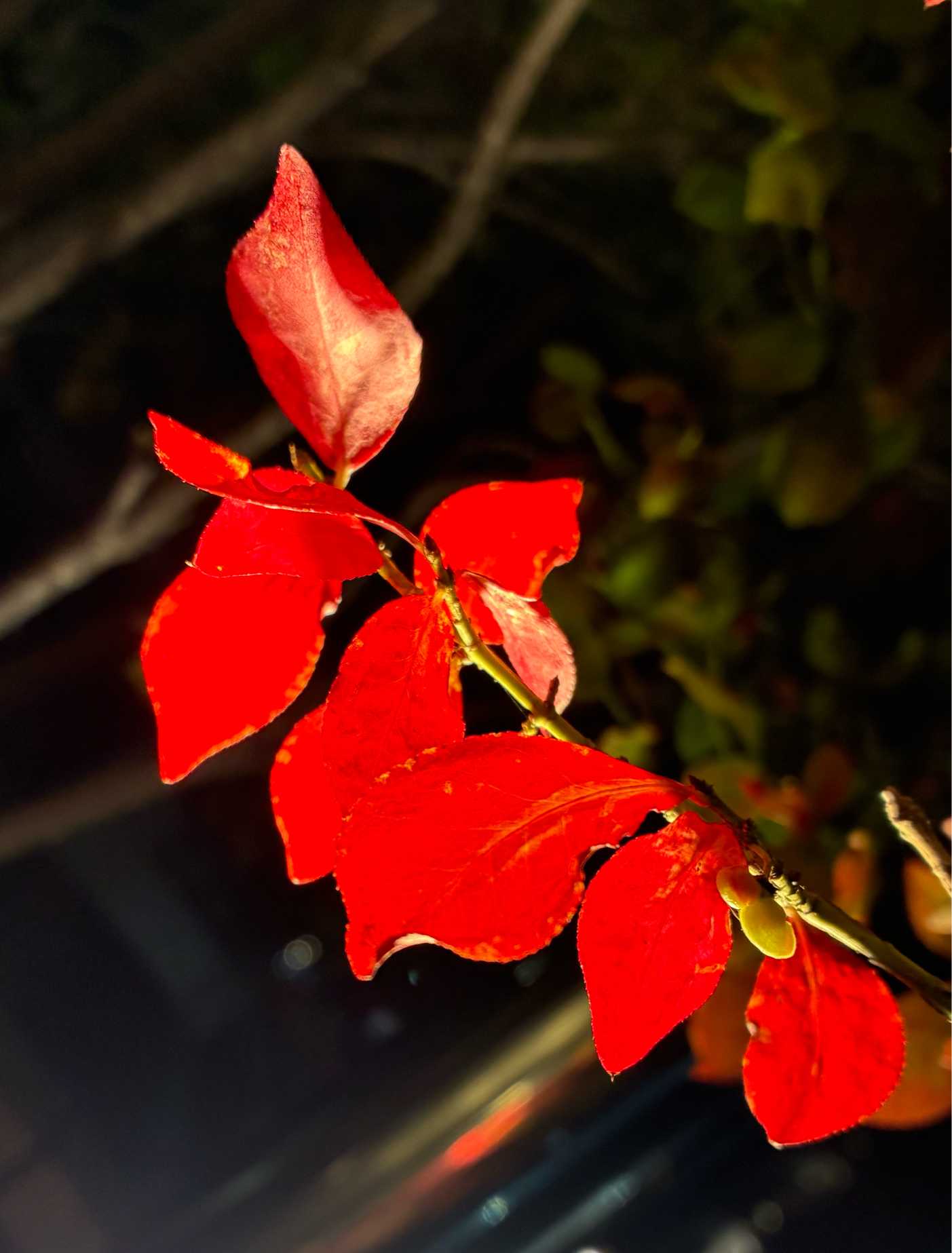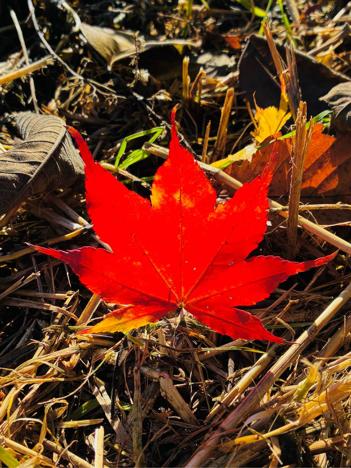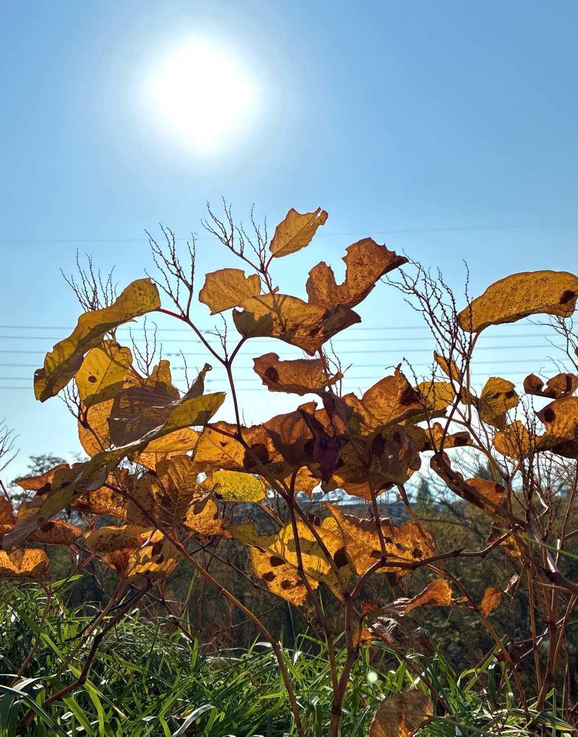 枯葉に落ちた真っ赤なオオモミジにドキッとし、プラタナスは雨の歩道の車のライトに照らされた一瞬を捉え、イタドリにも愛情を注ぎ💓