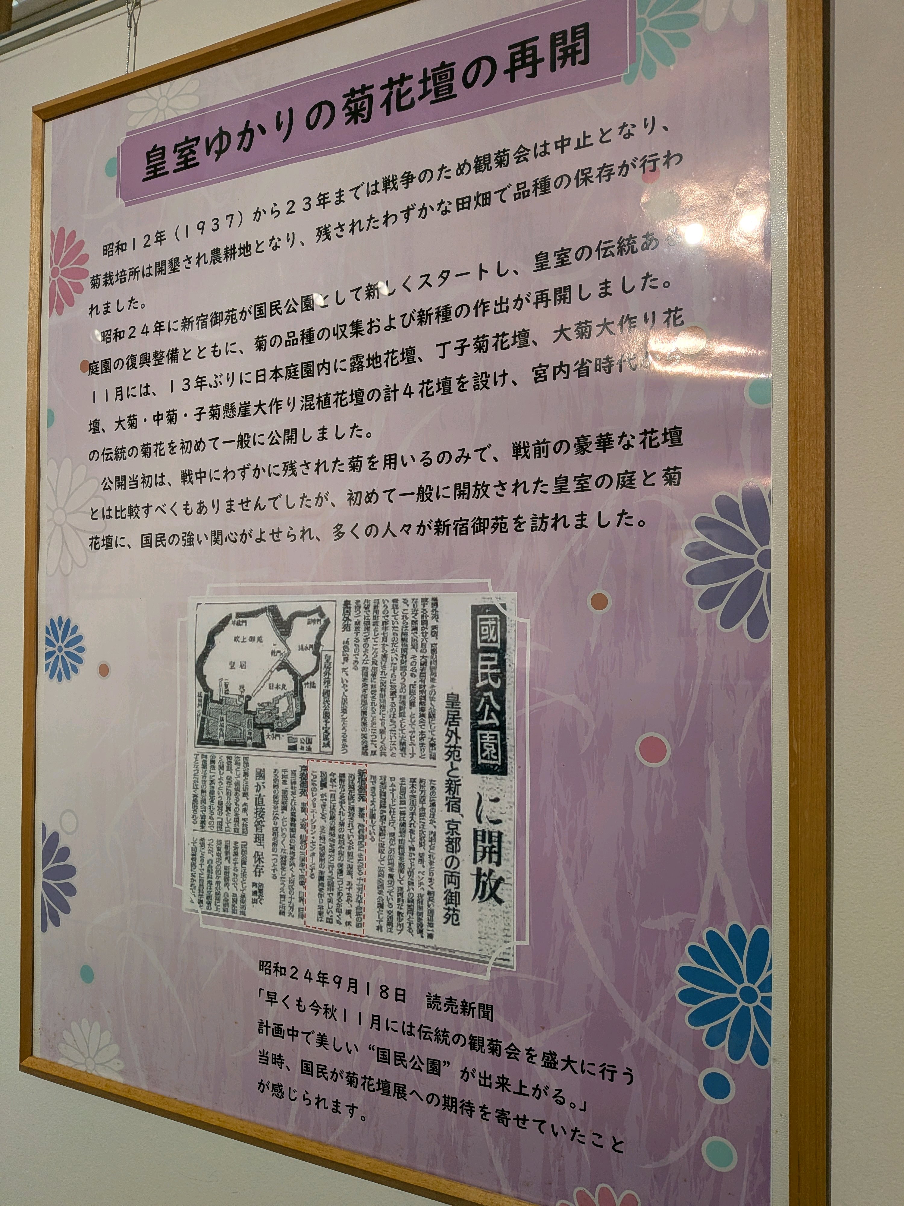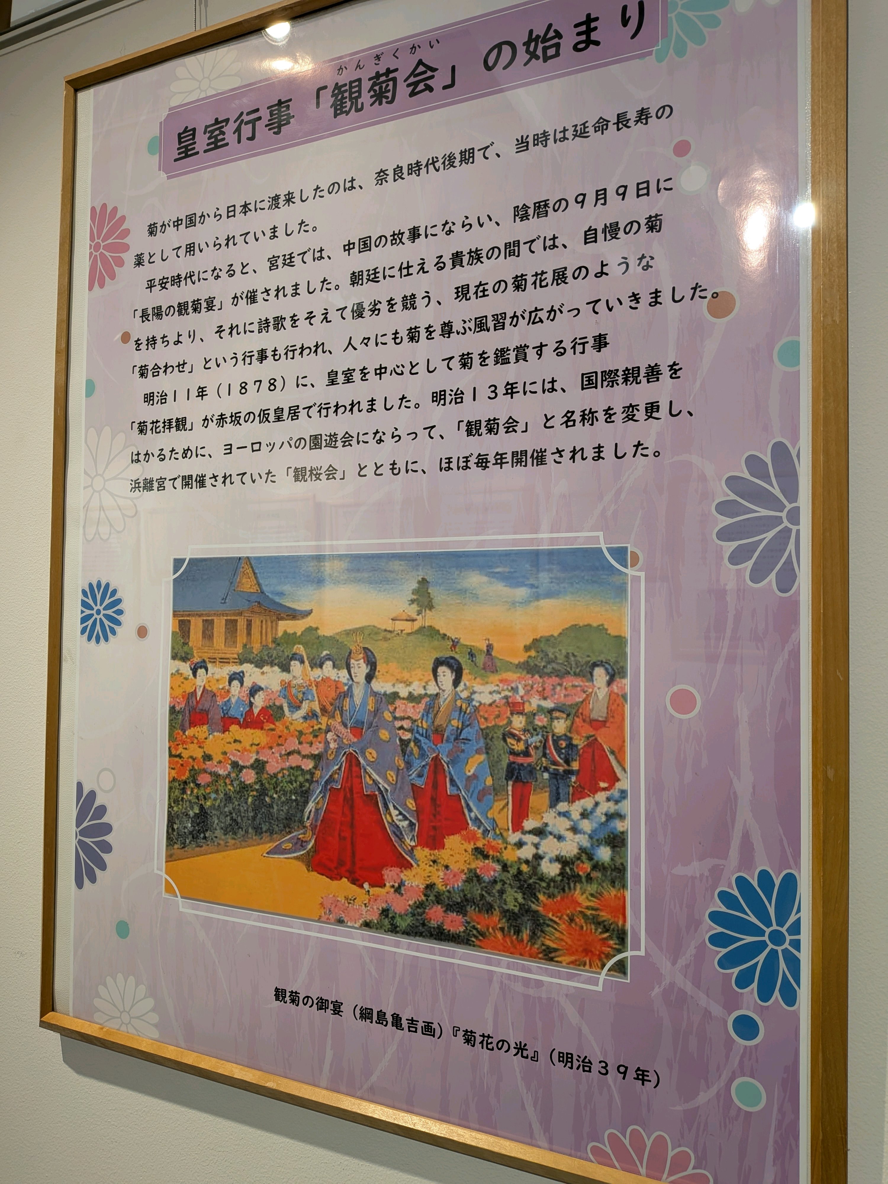 でもこの菊花壇展は技術的にも本当に素晴らしいので、これからも開き続けるべき。菊花壇展のパネル展を見ると、菊花壇展が国民のために開かれるという事が、当時の人々には非常に大きなことだったのがわかるのも良い。