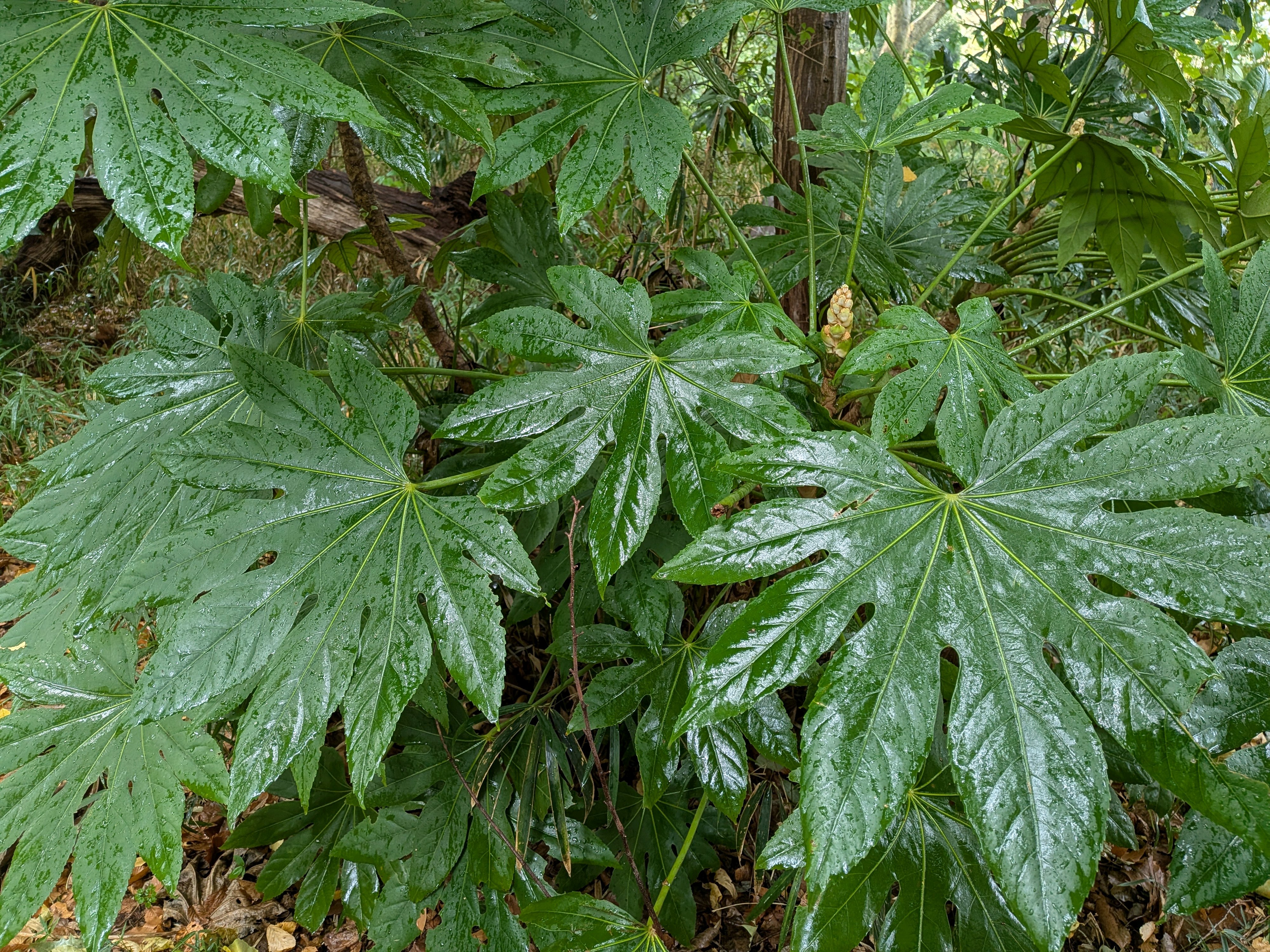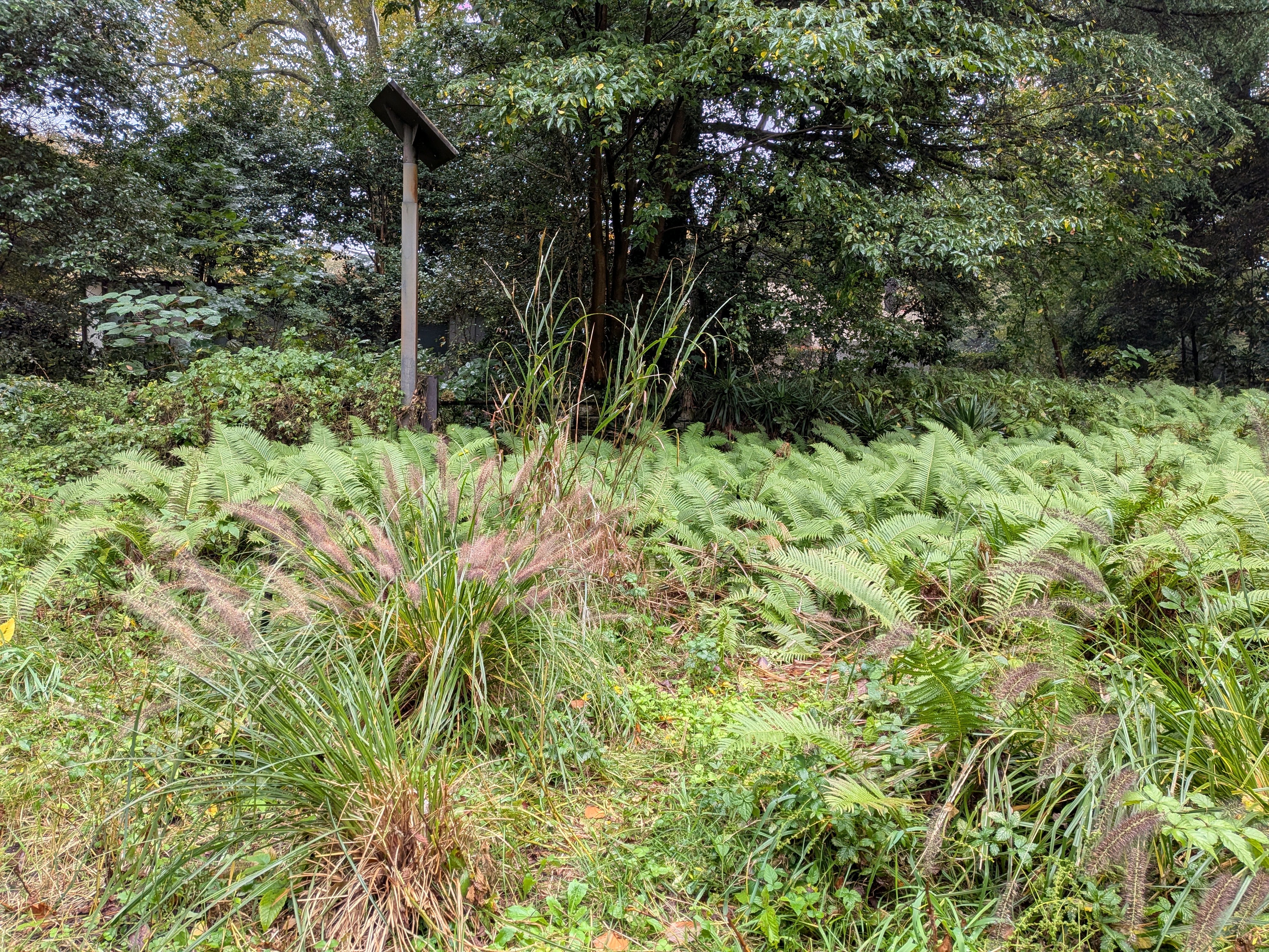 以前はシダ一色だったけど、最近はススキ科の植物がいくつか加えられた。