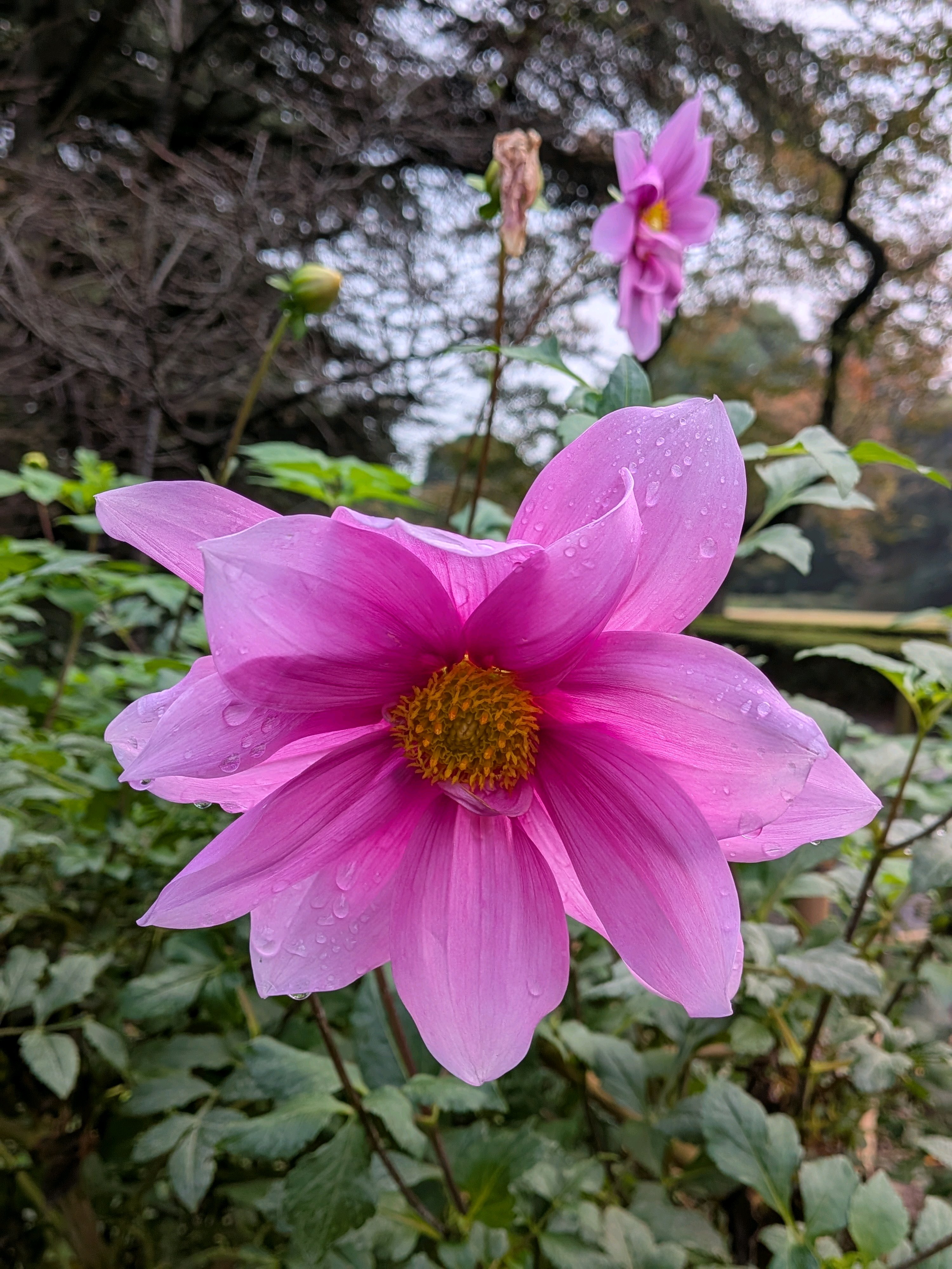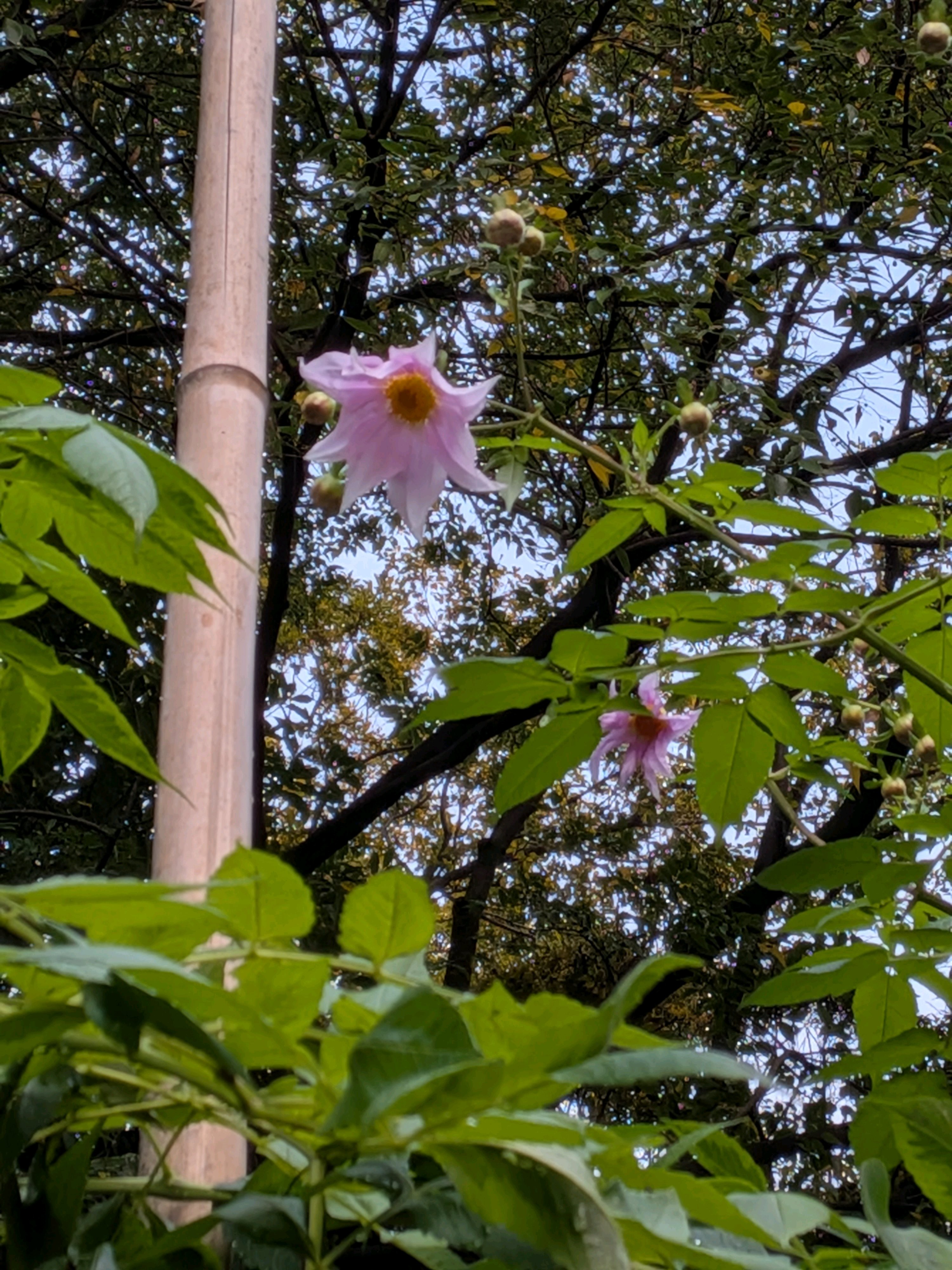 皇帝ダリアの花。今年は低めに仕立てられているので、花が見える。