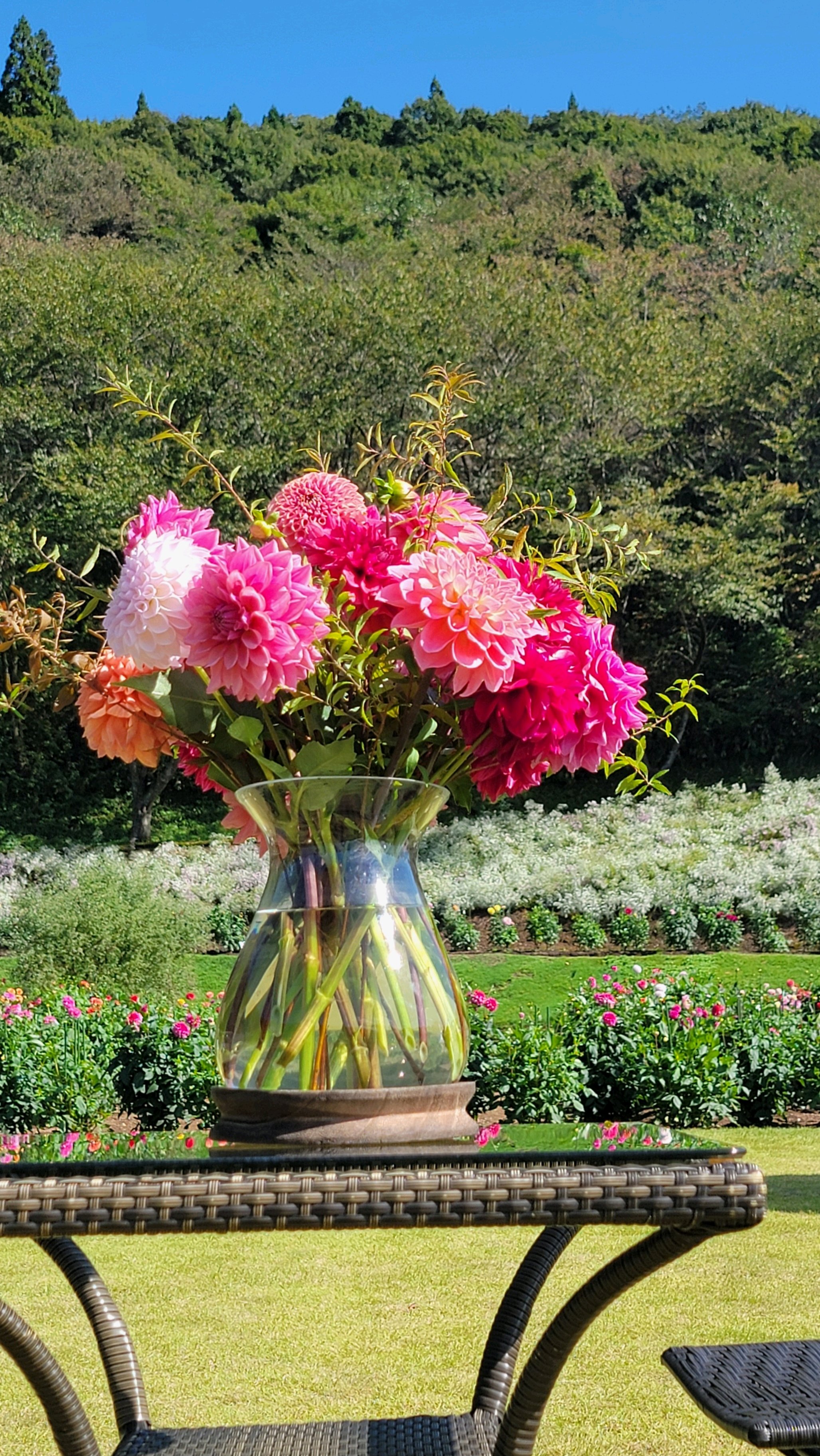 テーブルフラワーと山と青空