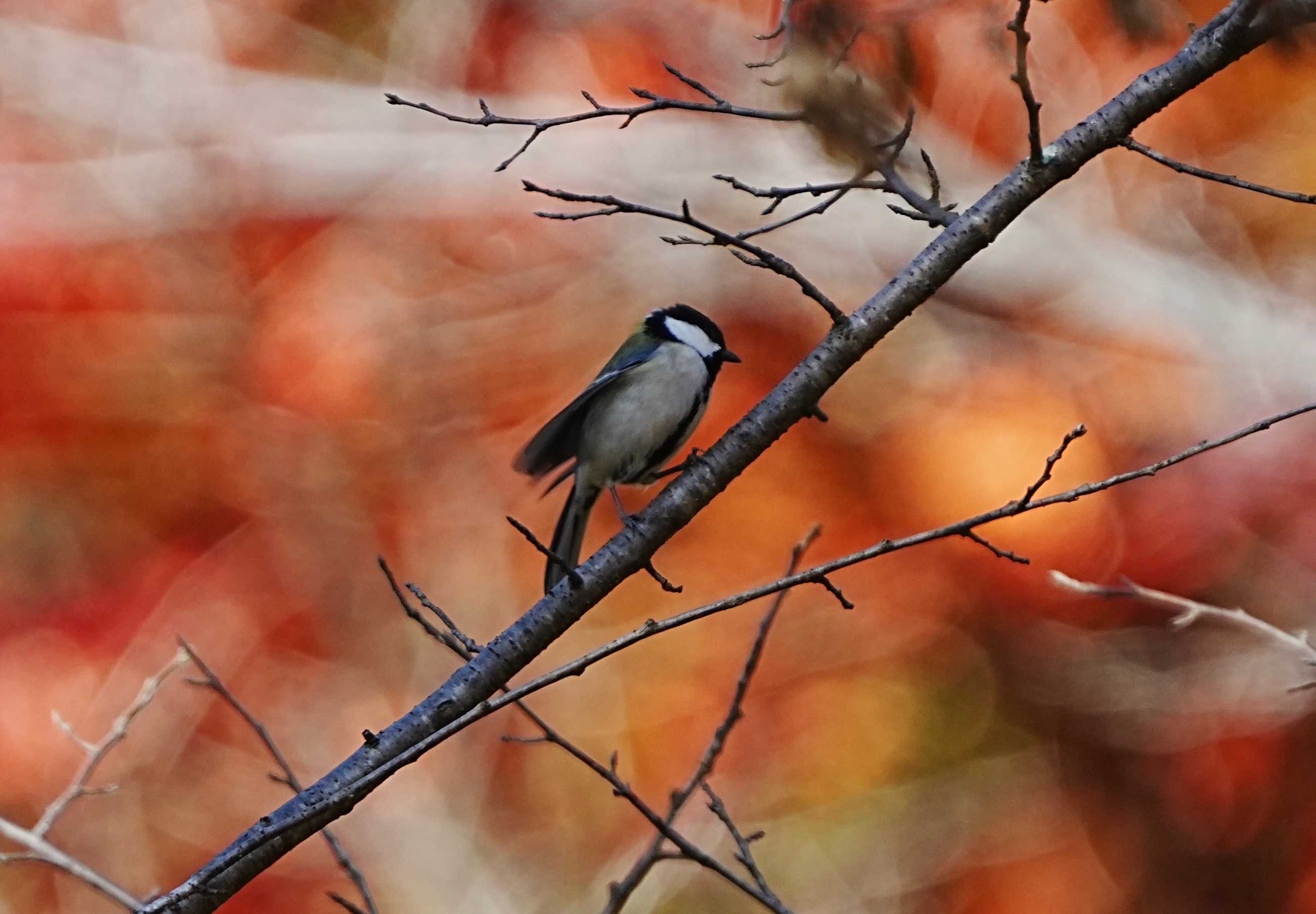 なんとか紅葉をバックに「エナガ」を撮ろうと頑張りましたが、なぜか?「シジュウカラ」さんにチェンジしてしまいます😂