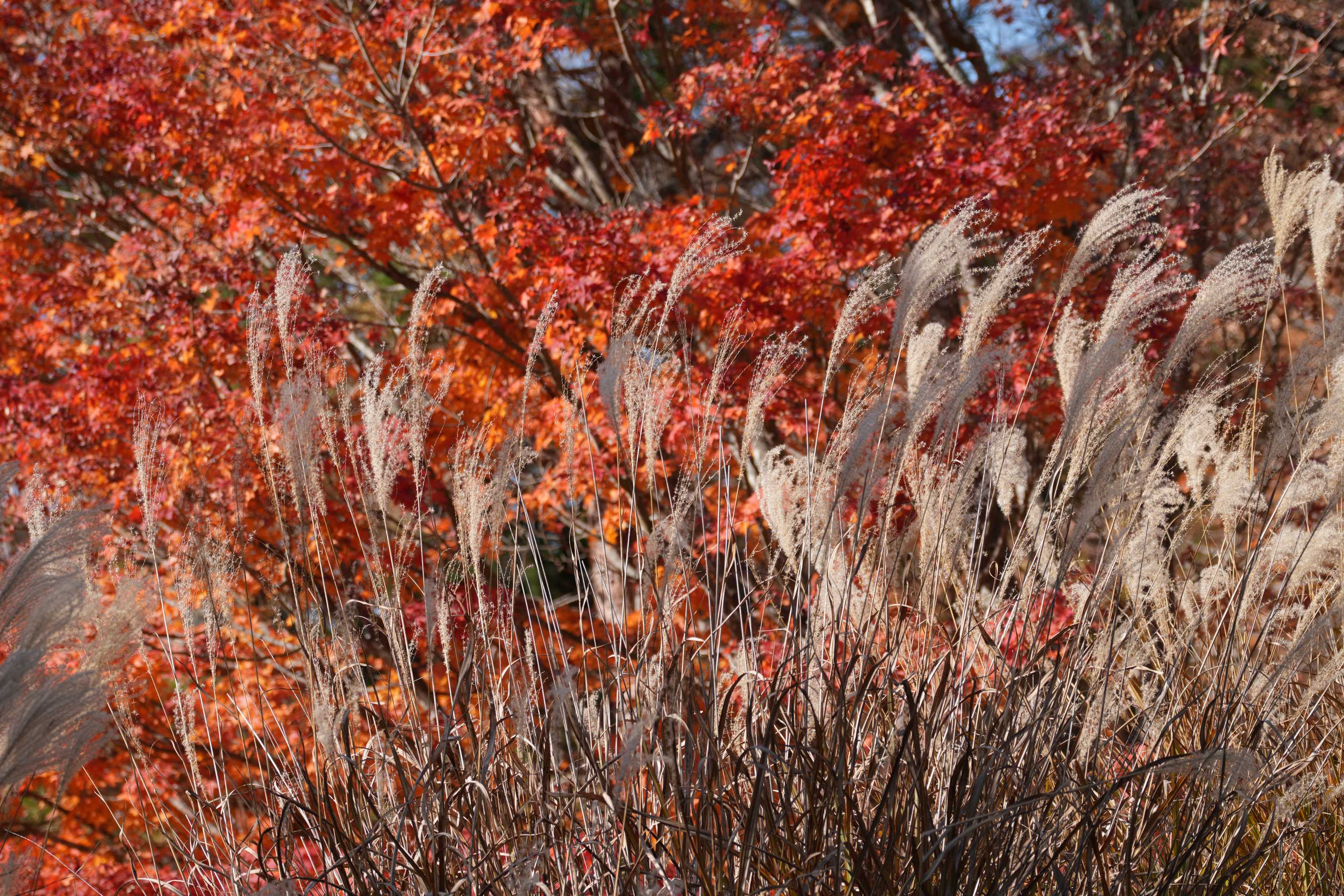 ここで紅葉をバックに「ススキ」をパチリ📷そうそうに引き上げます🥲