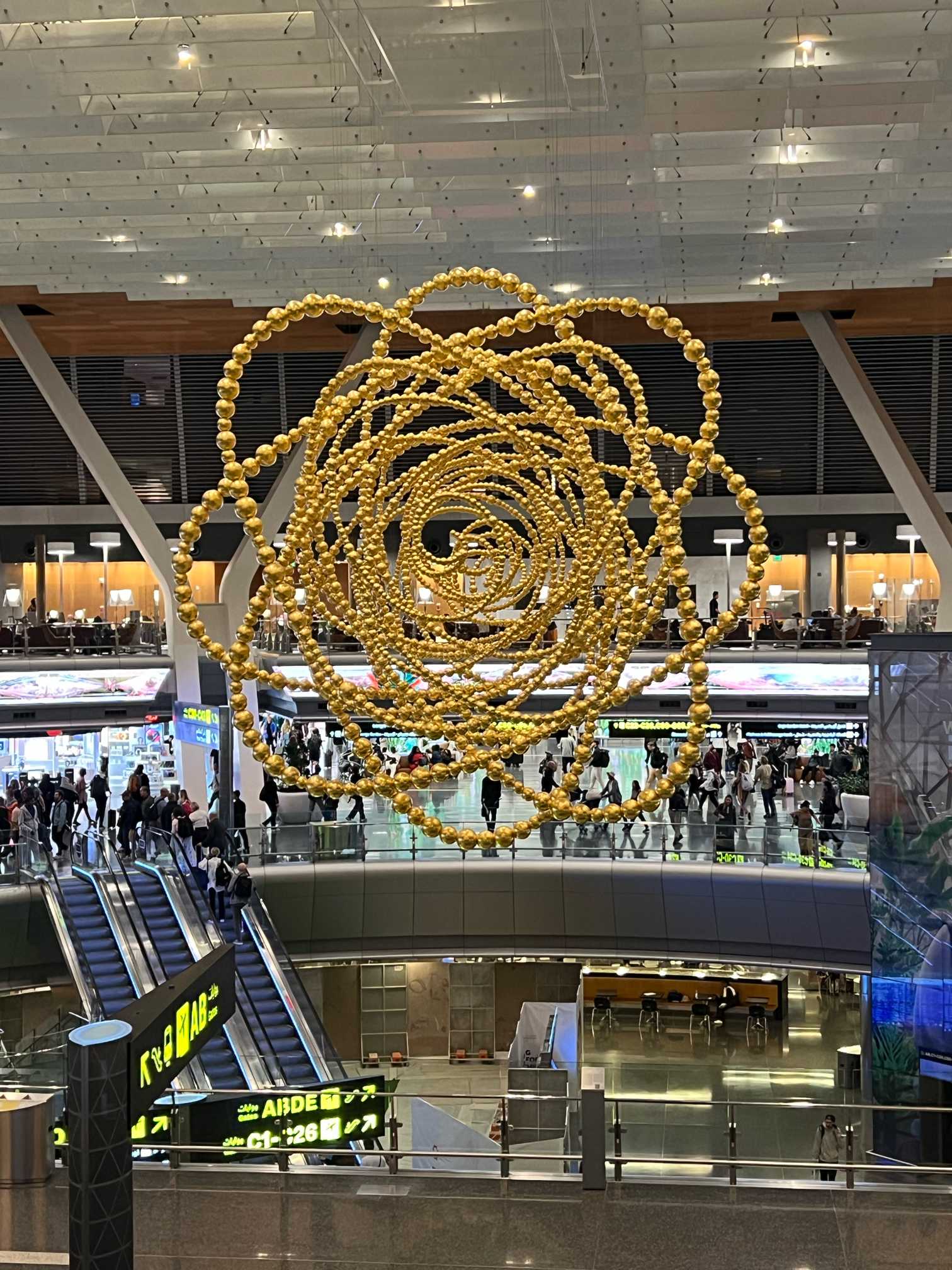 空港内に大きな真珠のオブジェがぶらさがっていました。中東は真珠の養殖も盛んなのだとか