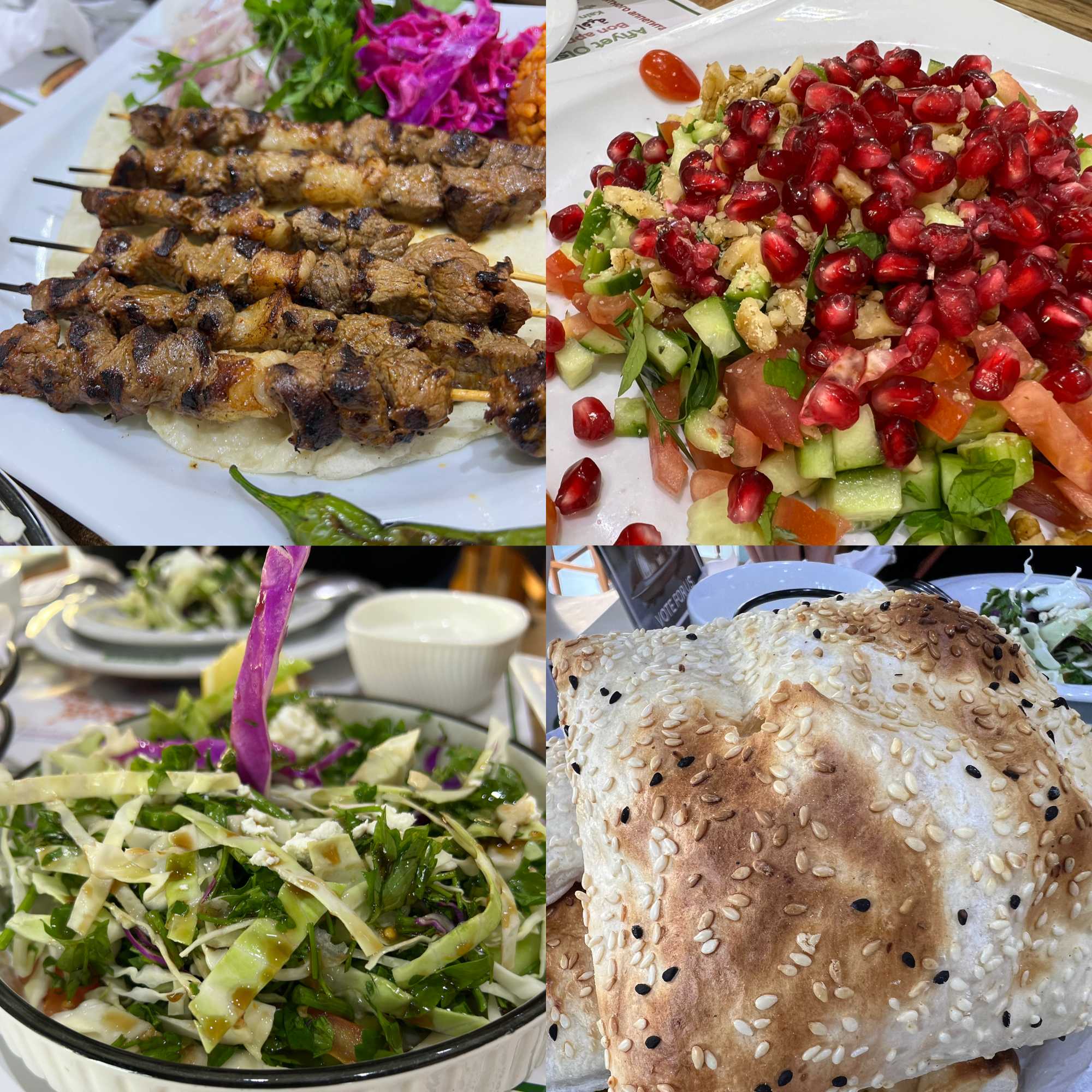 ザクロをまぶしたサラダが新鮮でした。ドレッシングはグレナデンシロップとバルサミコベースでどのお料理も薄味で美味しかった。