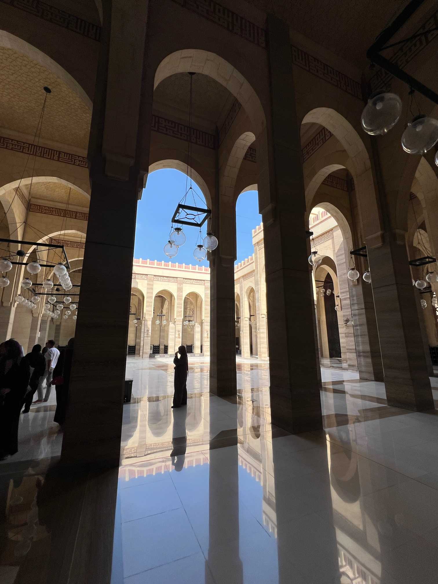 バーレーンは他国に比べると縛りが緩く、お酒も飲めて服装も自由度が高いそうですが、モスクに入るにあたり肌を隠すアバヤを借り髪は隠しました