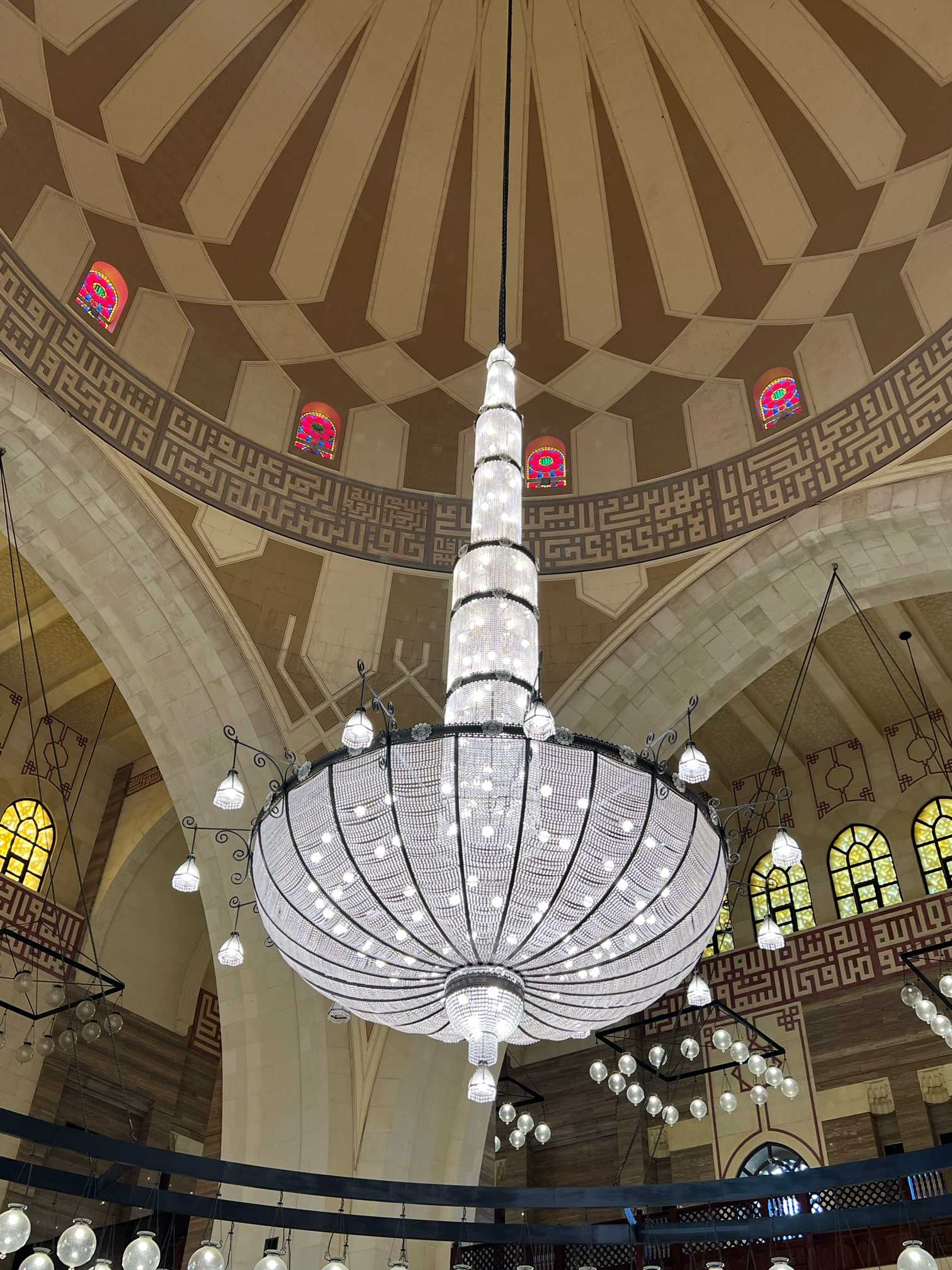 イタリアン大理石とオーストリア製シャンデリア。贅を凝らし中東で一番大きなモスクとガイドのおじさんが仰せでした
