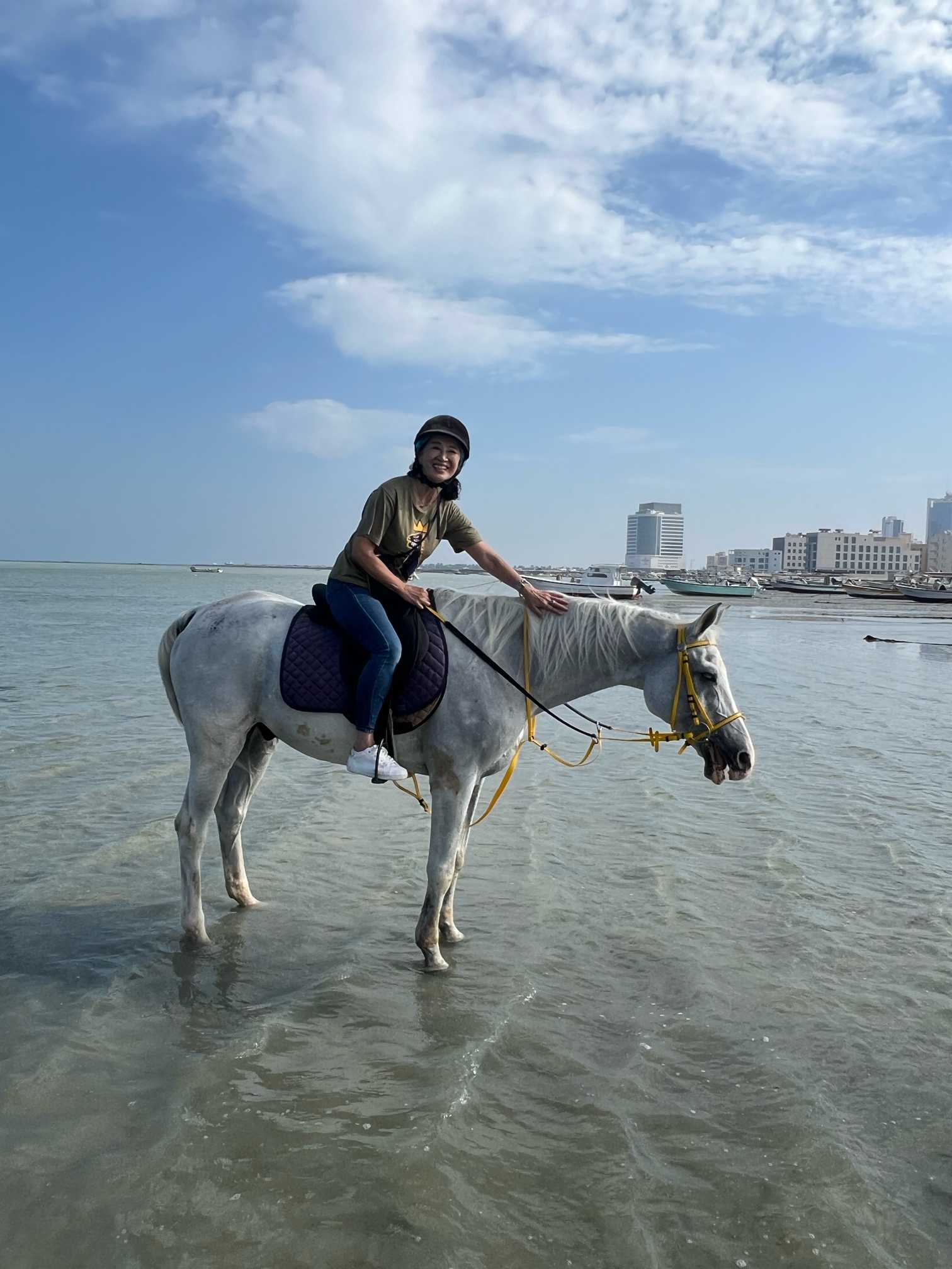 Baharがアラビア語で海。レーンは複数形を意味するとかのBaharain。中近東といえはアラビアンホース。到着ロビーで疾走していました
