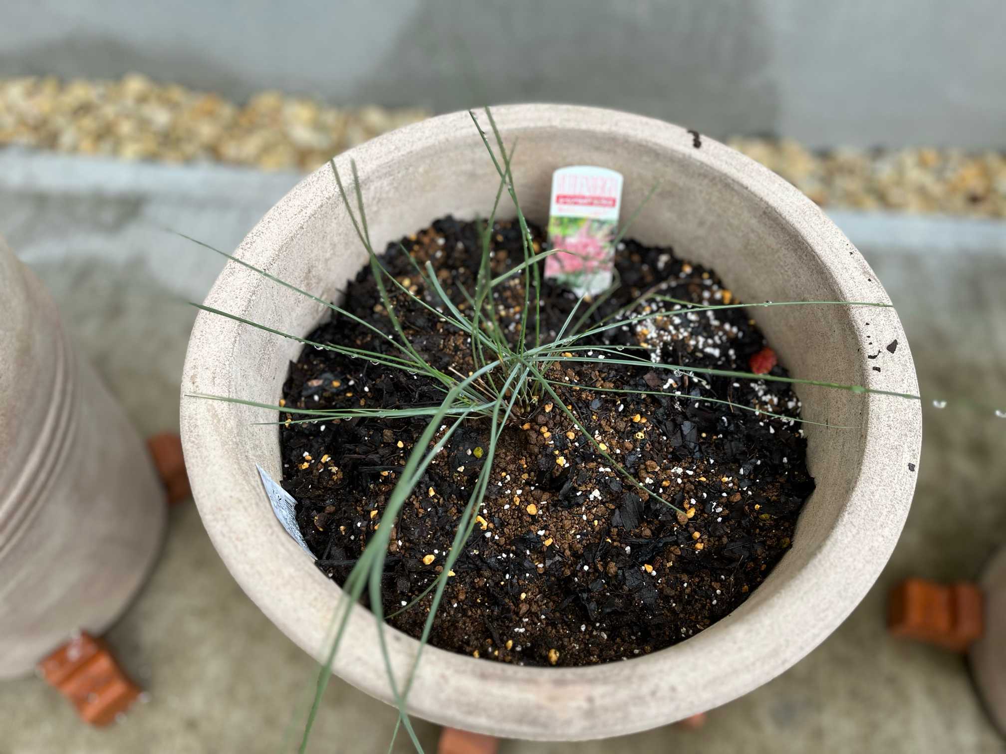 お昼を食べ土を買いにホームセンターへ。ミューレンベルギアは水捌けがよく栄養の豊富過ぎない土壌が良いのとひあたりを好みとあったため赤土と腐葉土メインに2割ほど薔薇の土を混ぜてみた。