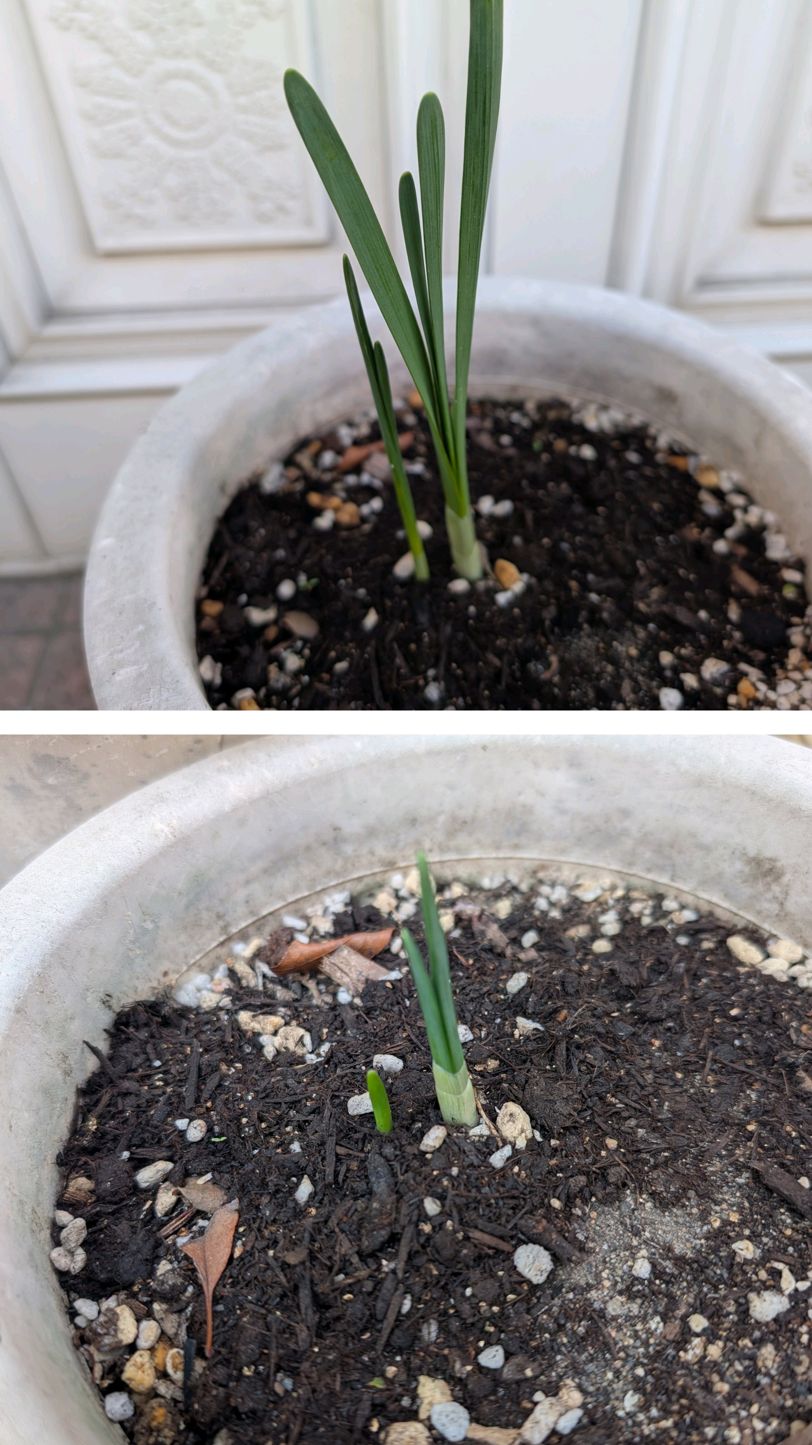 2025.11.30 プランターに植えた球根4個も全部発芽しました🌱🌱🌱🌱